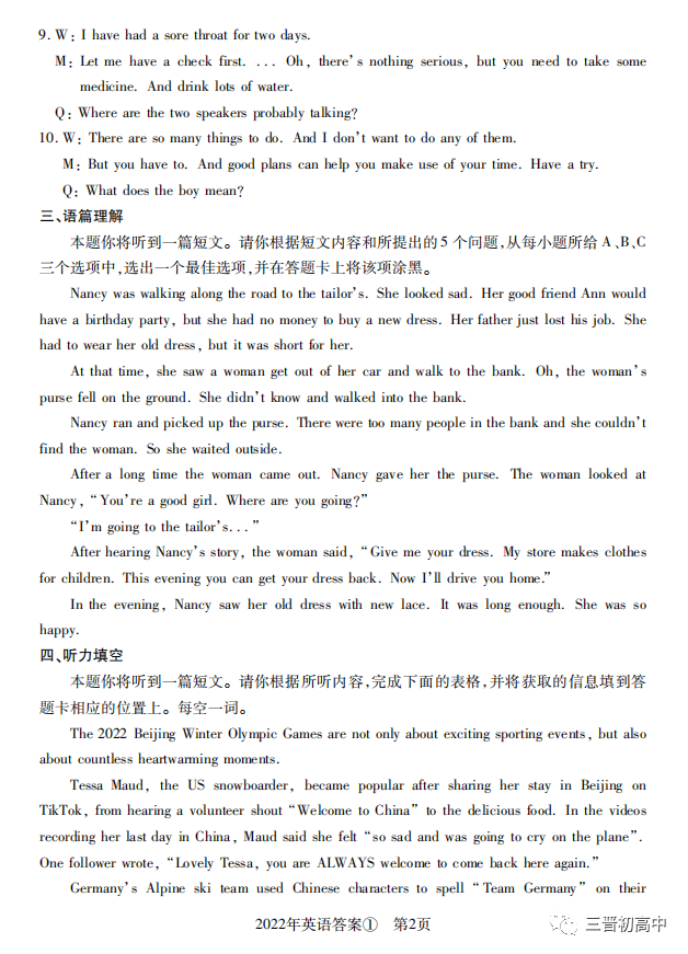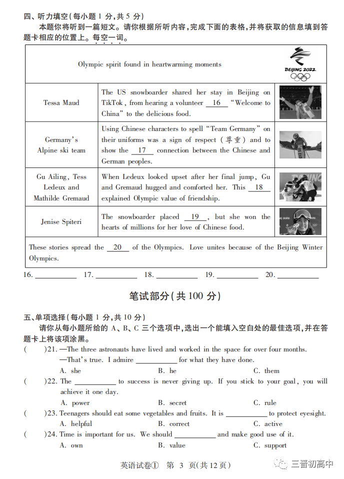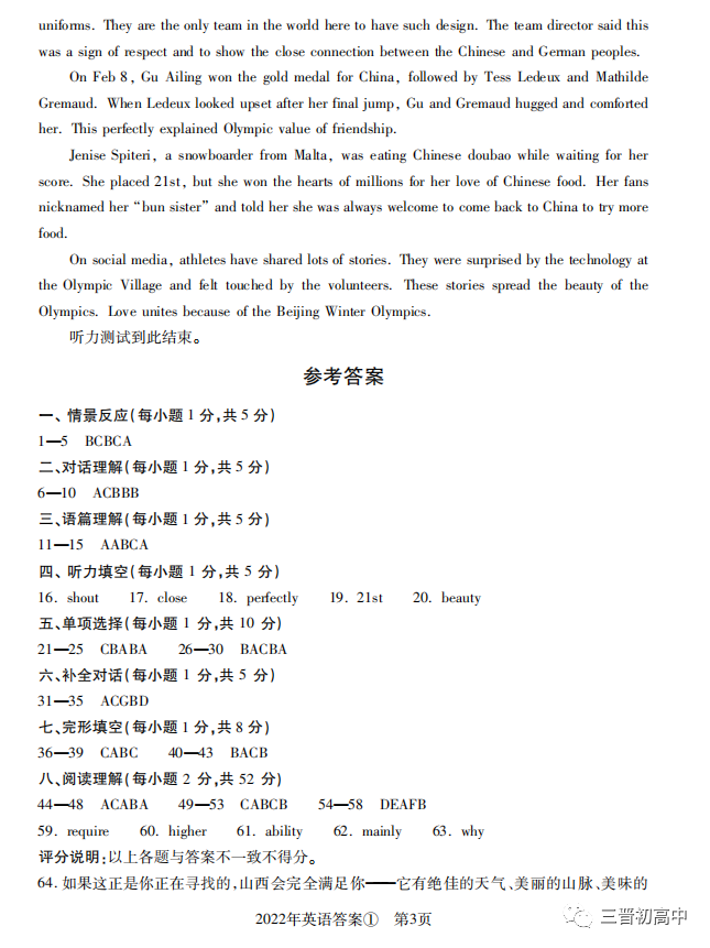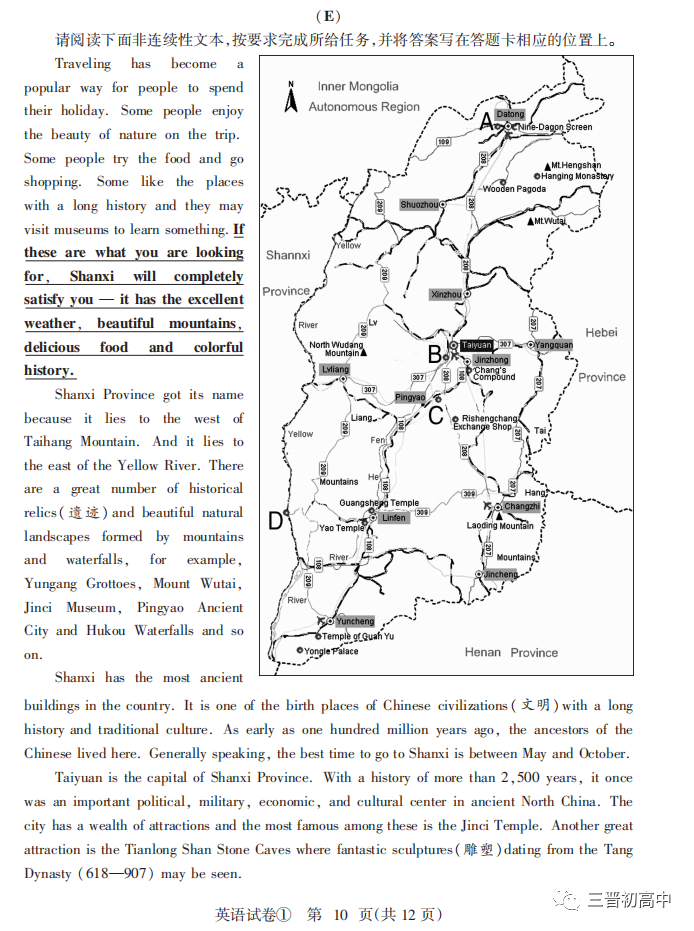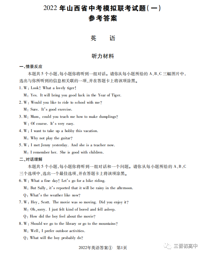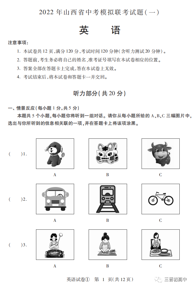 2021晋一中考《聚能卷 · A卷》试题及答案全汇总