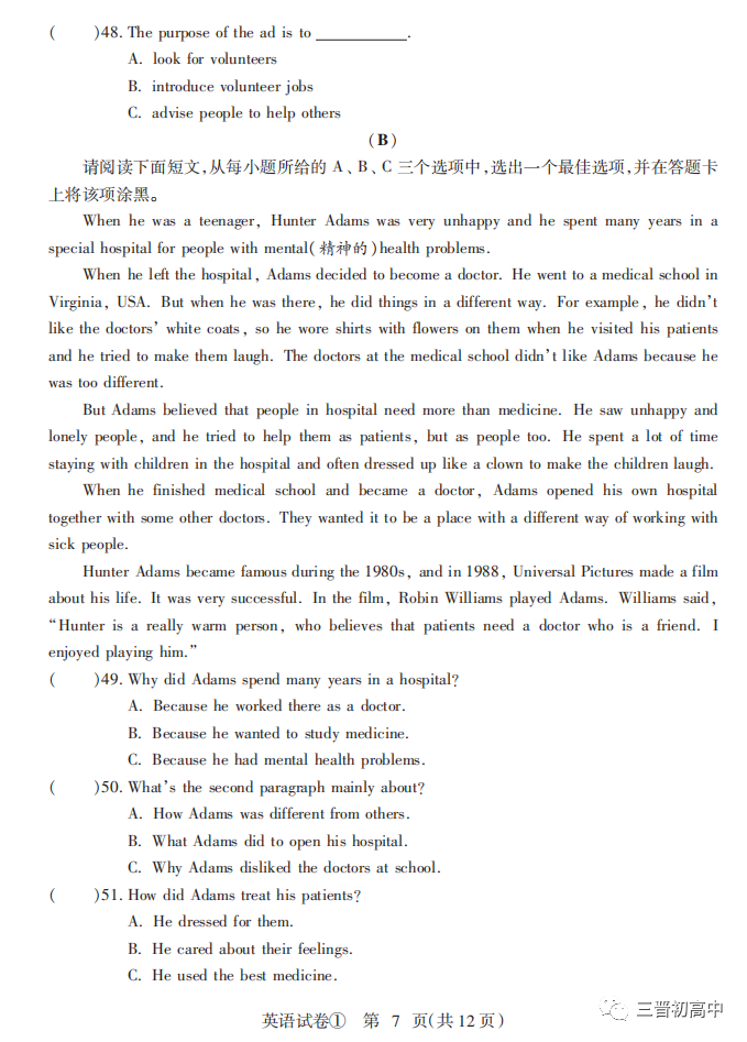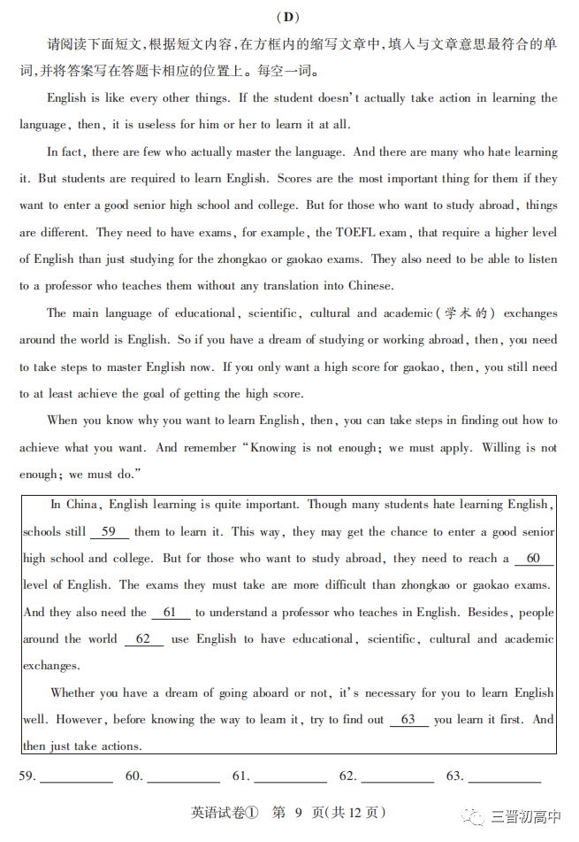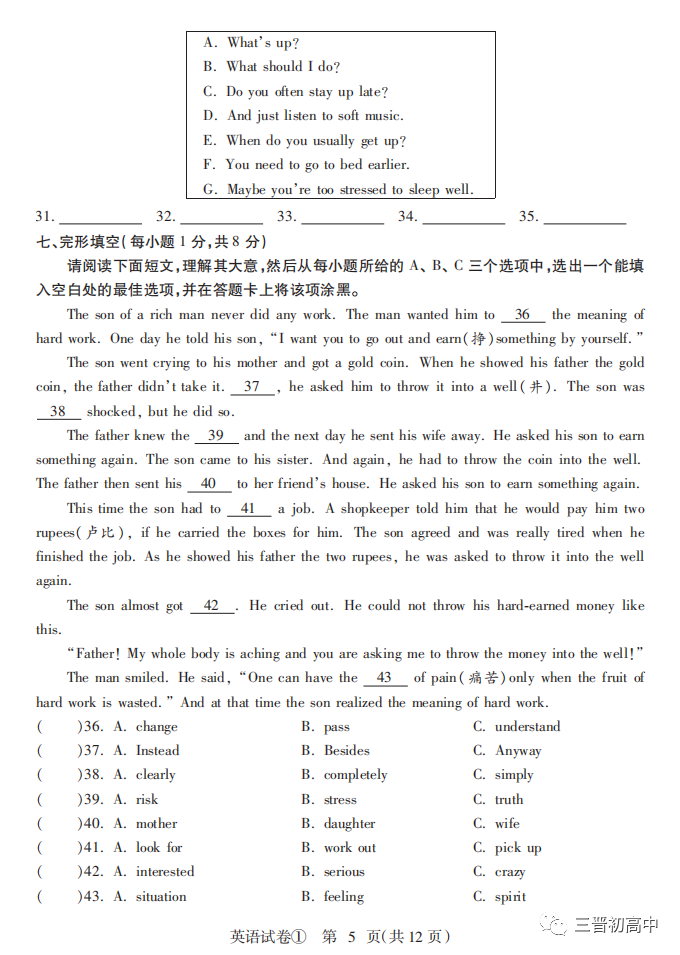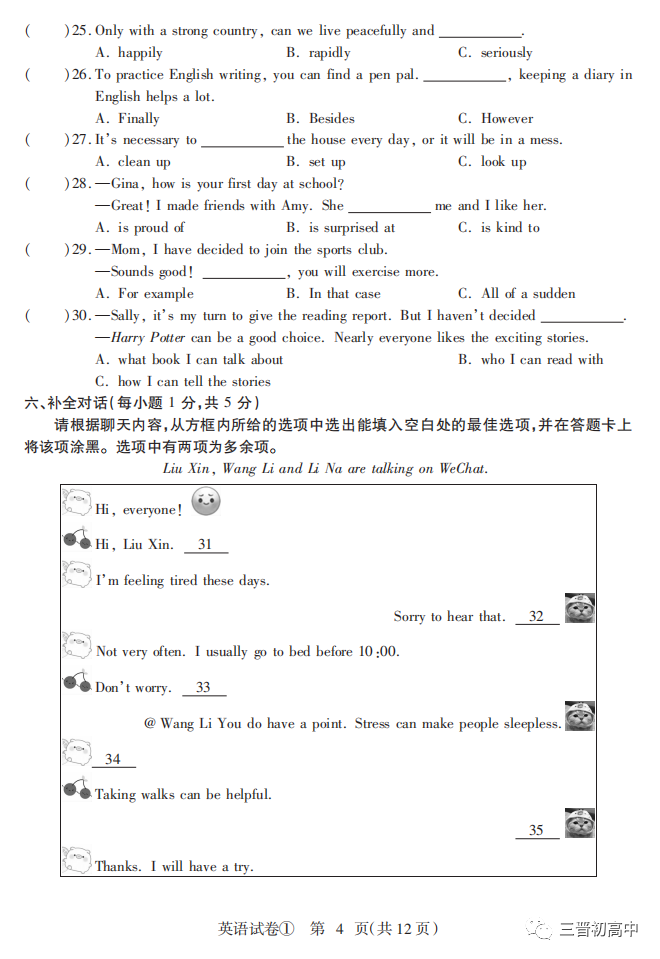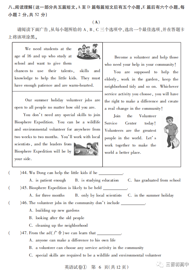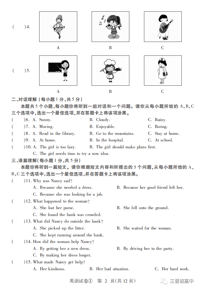 2021晋一中考《聚能卷 · A卷》试题及答案全汇总
