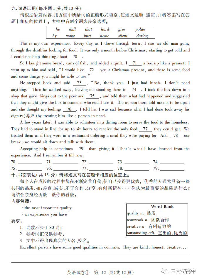 2011-2021年山西中考英语作文真题及范文汇总分享