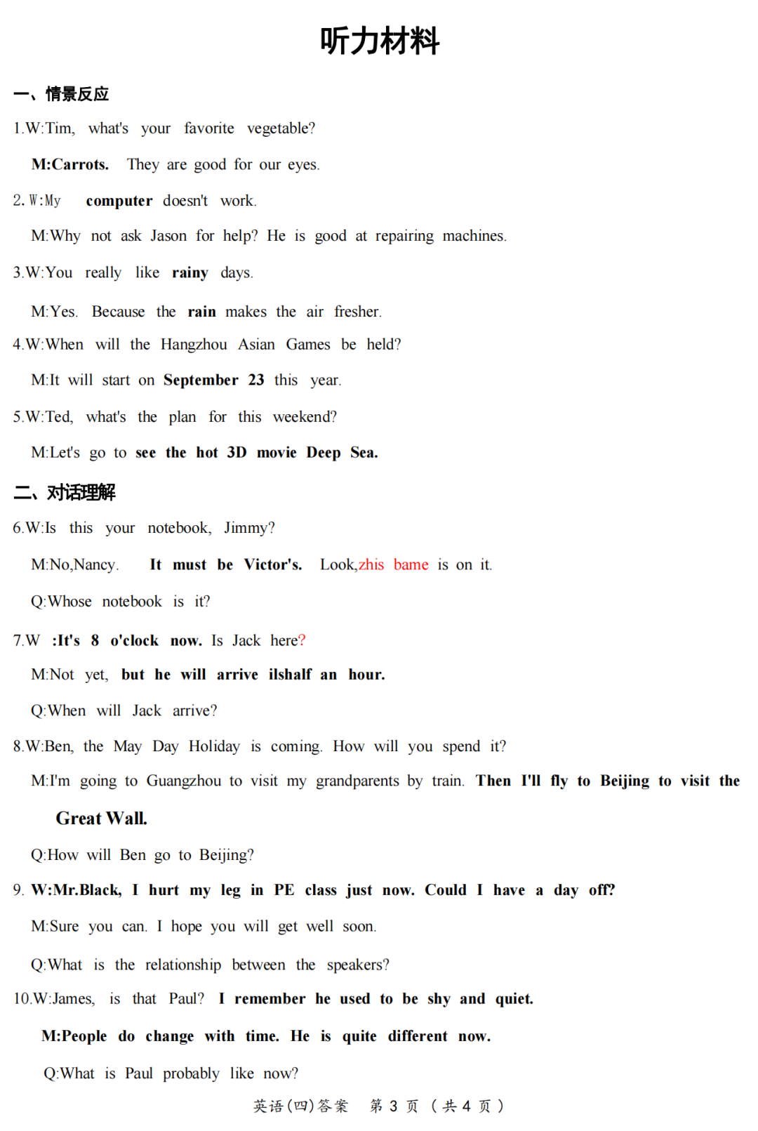 回复【中考听力】获近年山西中考英语听力试题及音频
