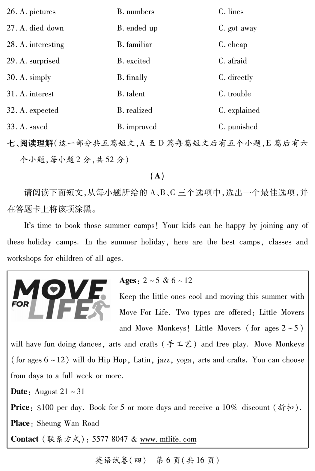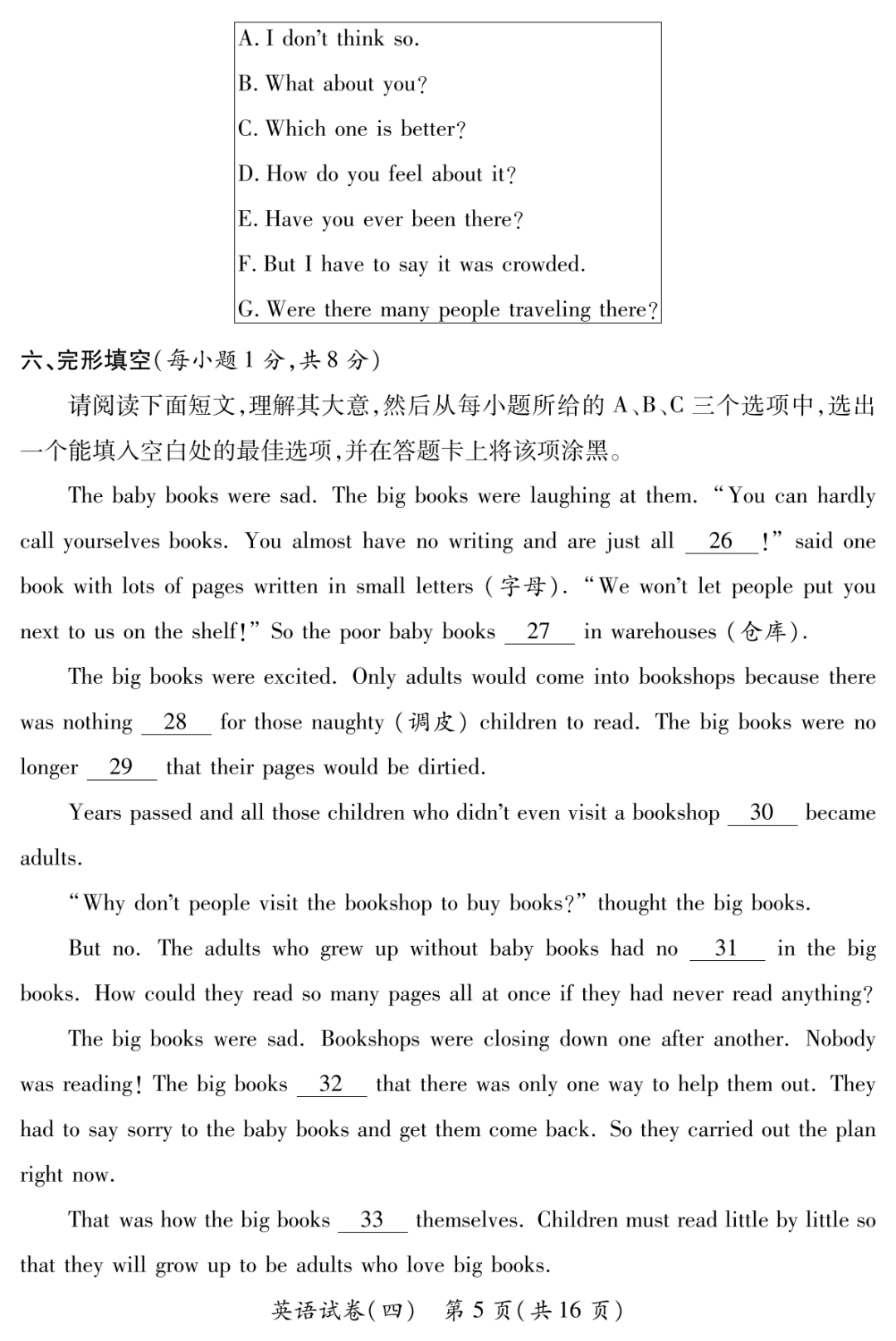 22-23学年中考学科素养自主测评卷六 试题及答案全 含听力
