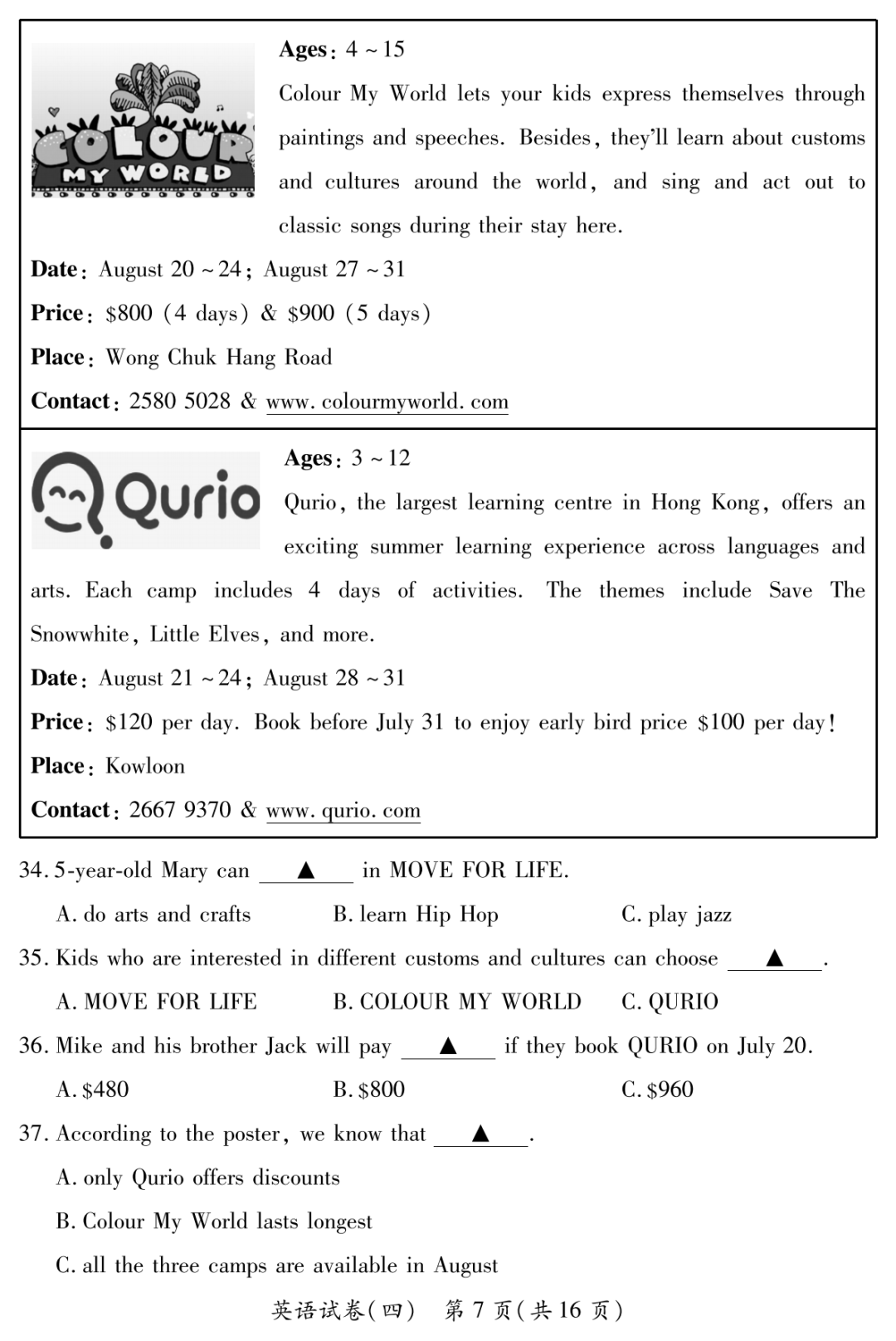 英语试题及答案(文末下载全科)