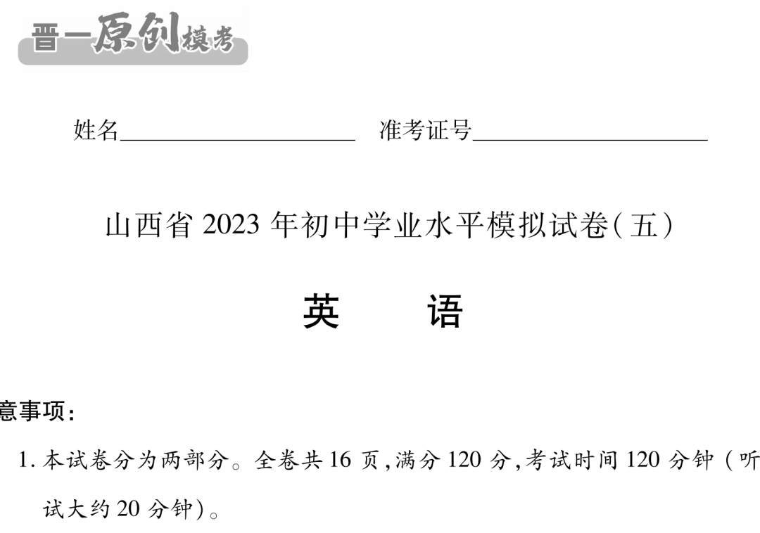 晋一原创测评三——山西2023初中学业水平考试全科