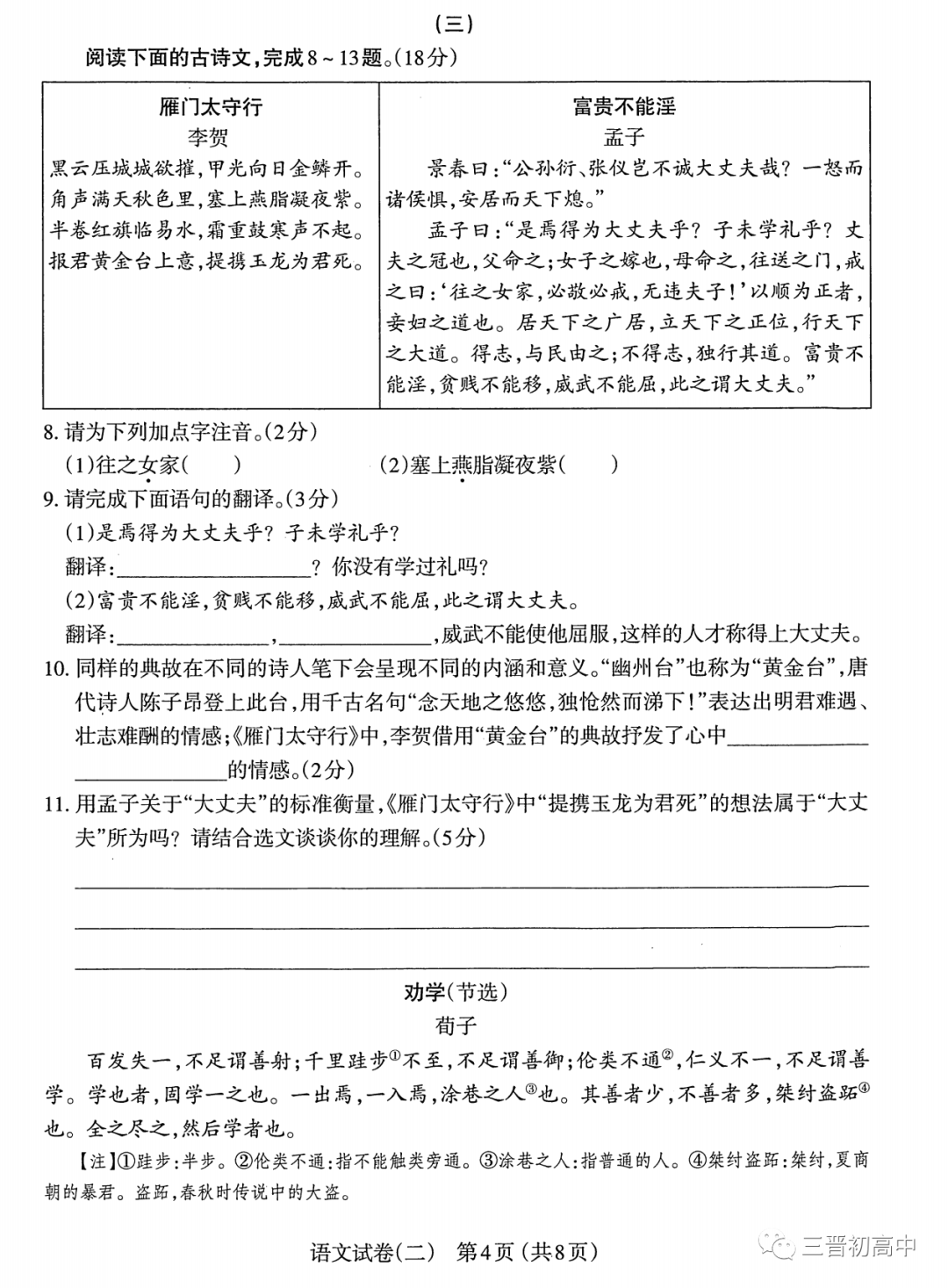【2023年山西中考】语文必考23篇文言文情境默写 附61篇古诗文电子版