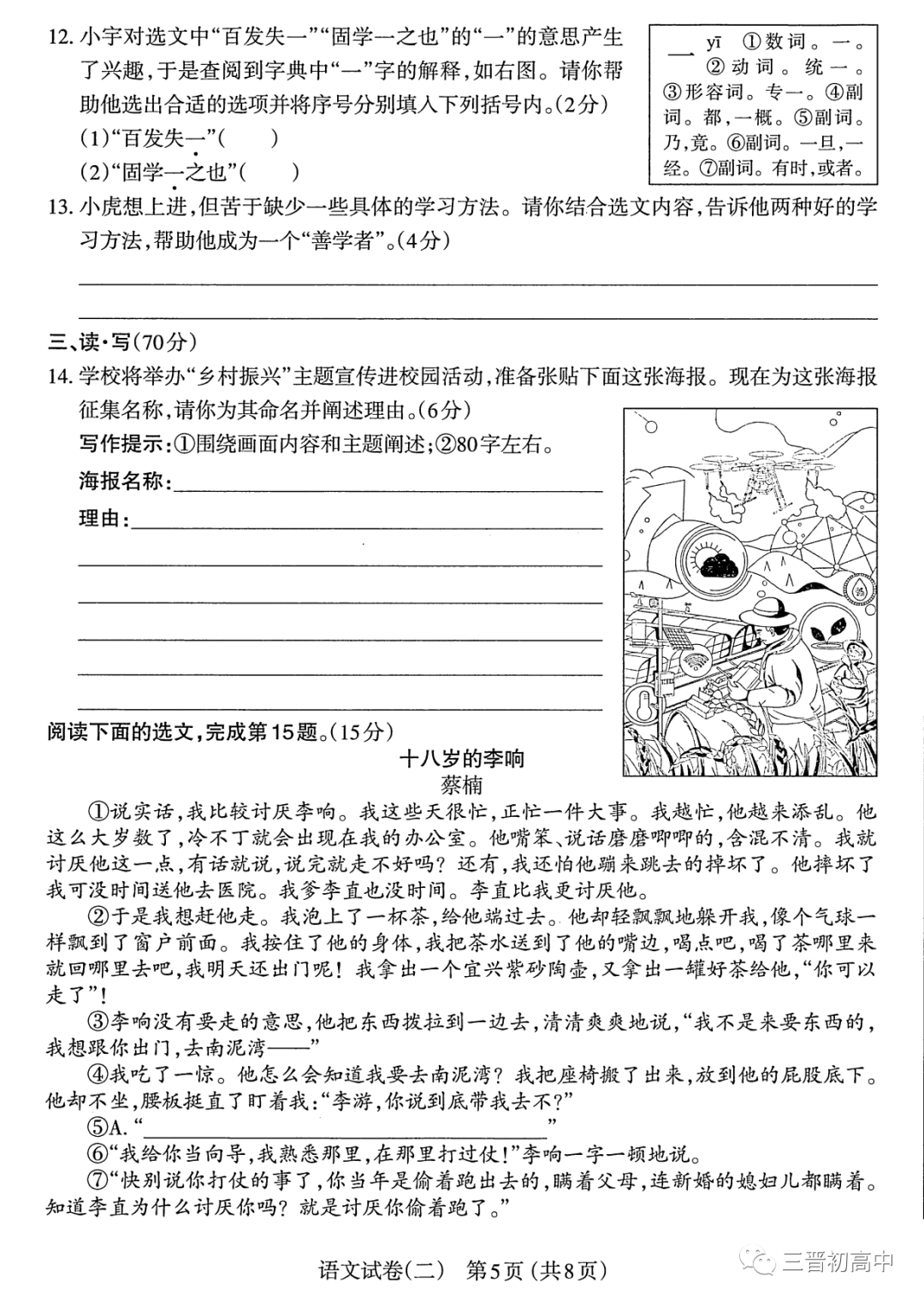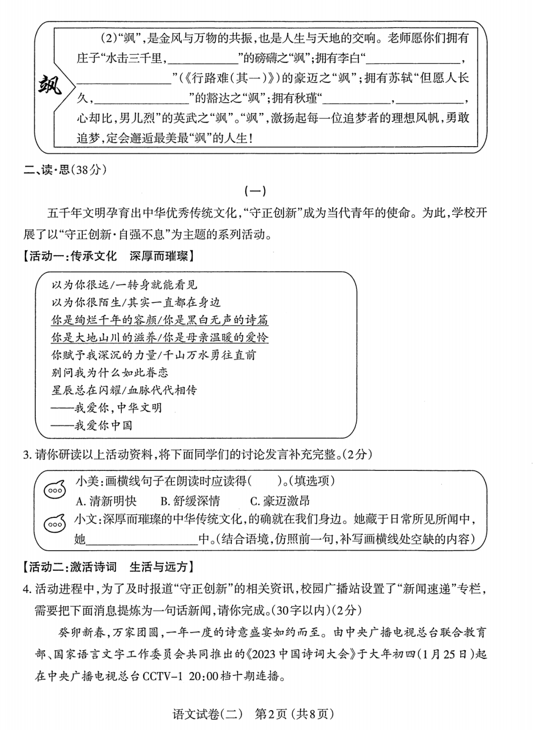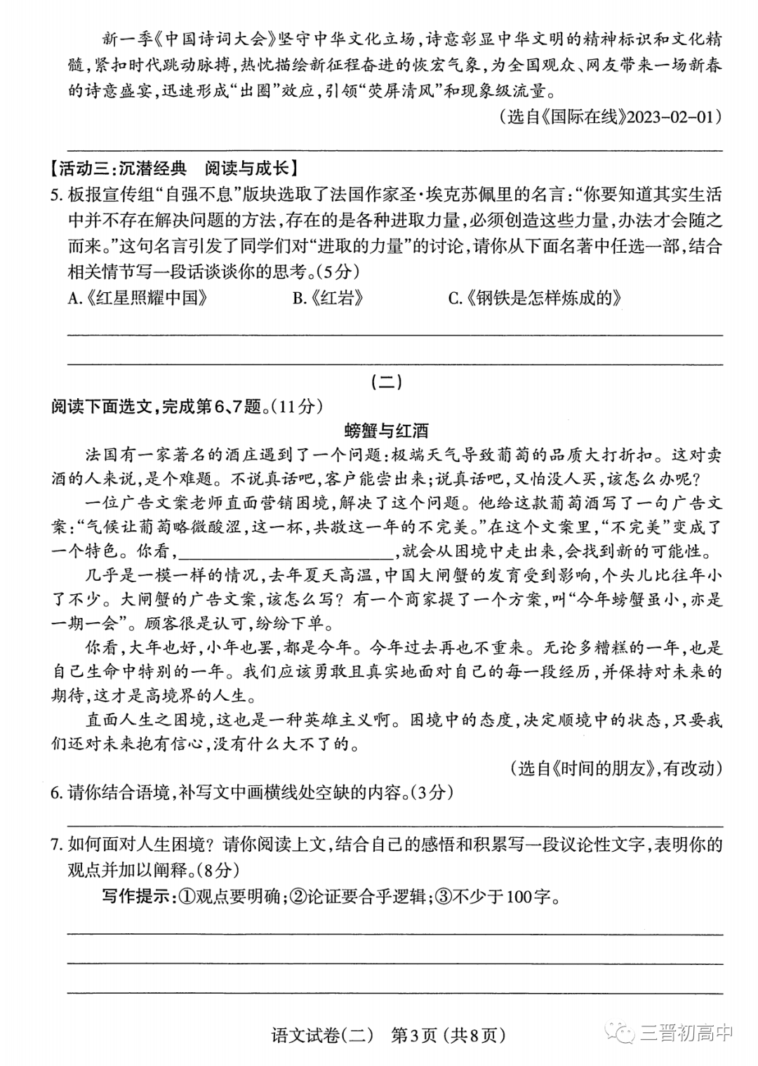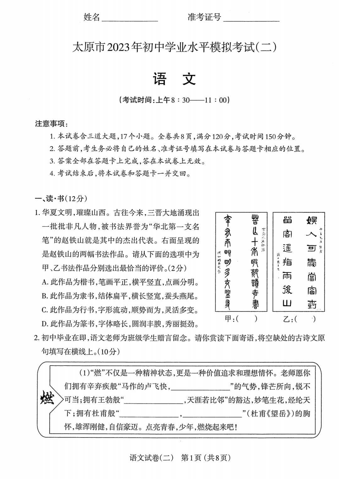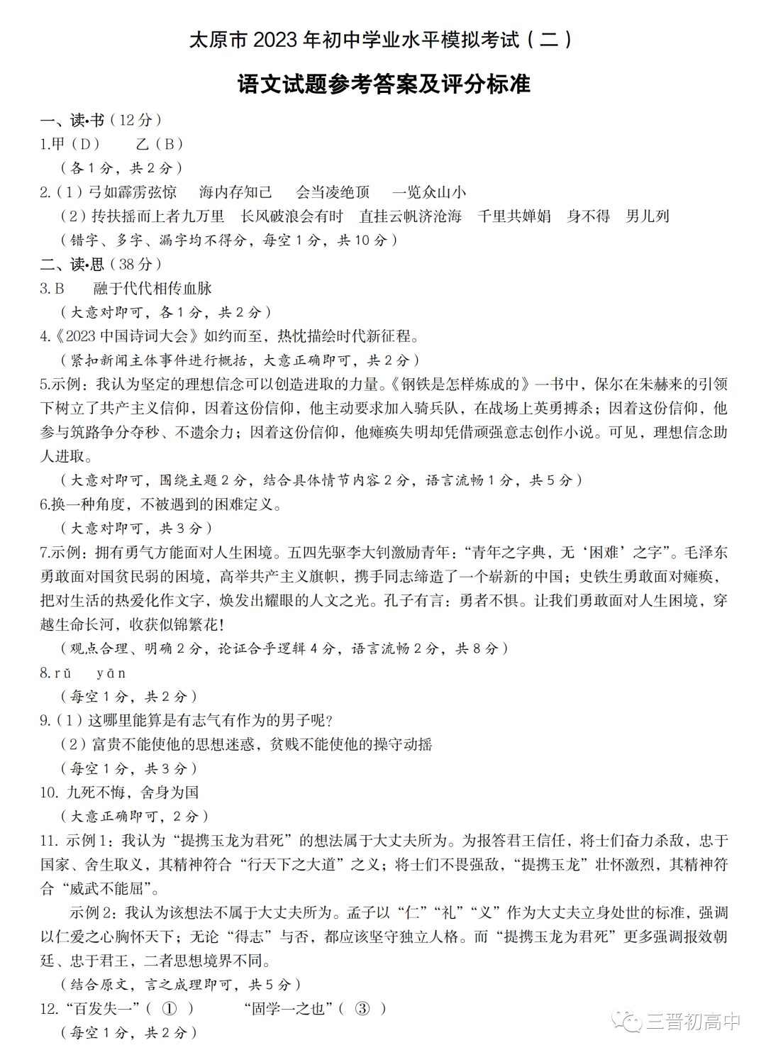 2023年太原中考二模语文试题及答案