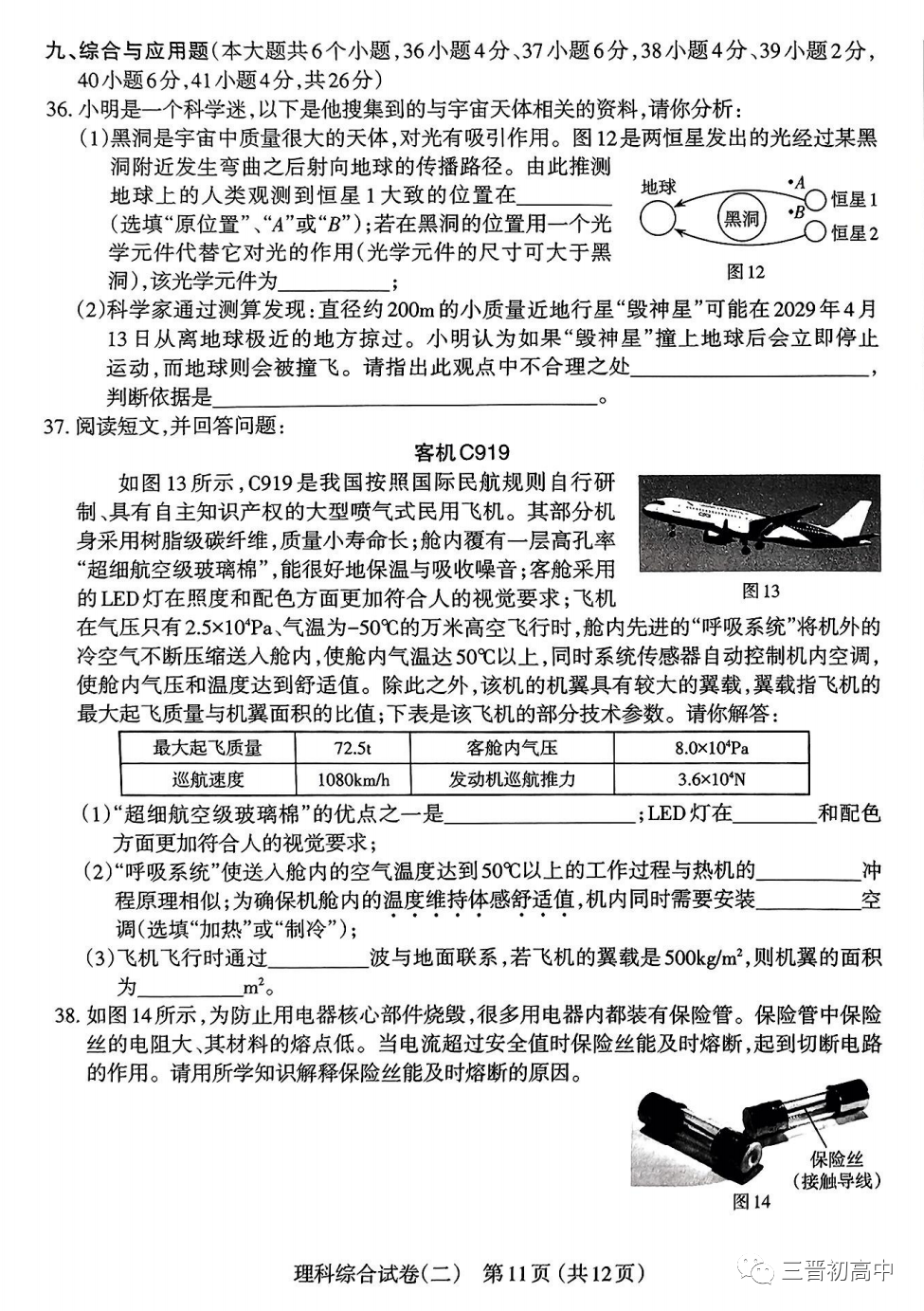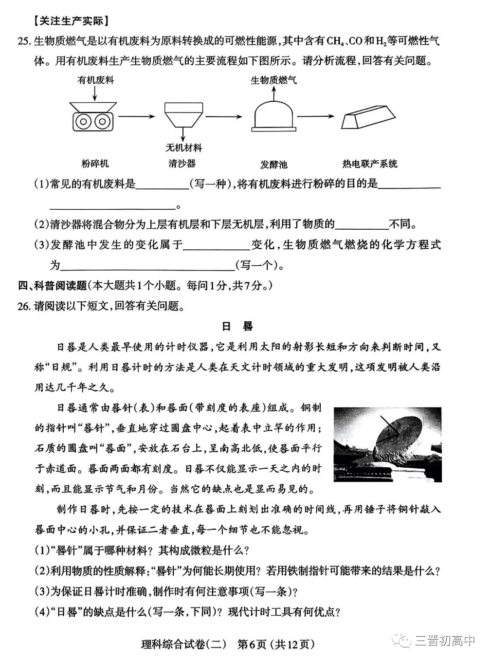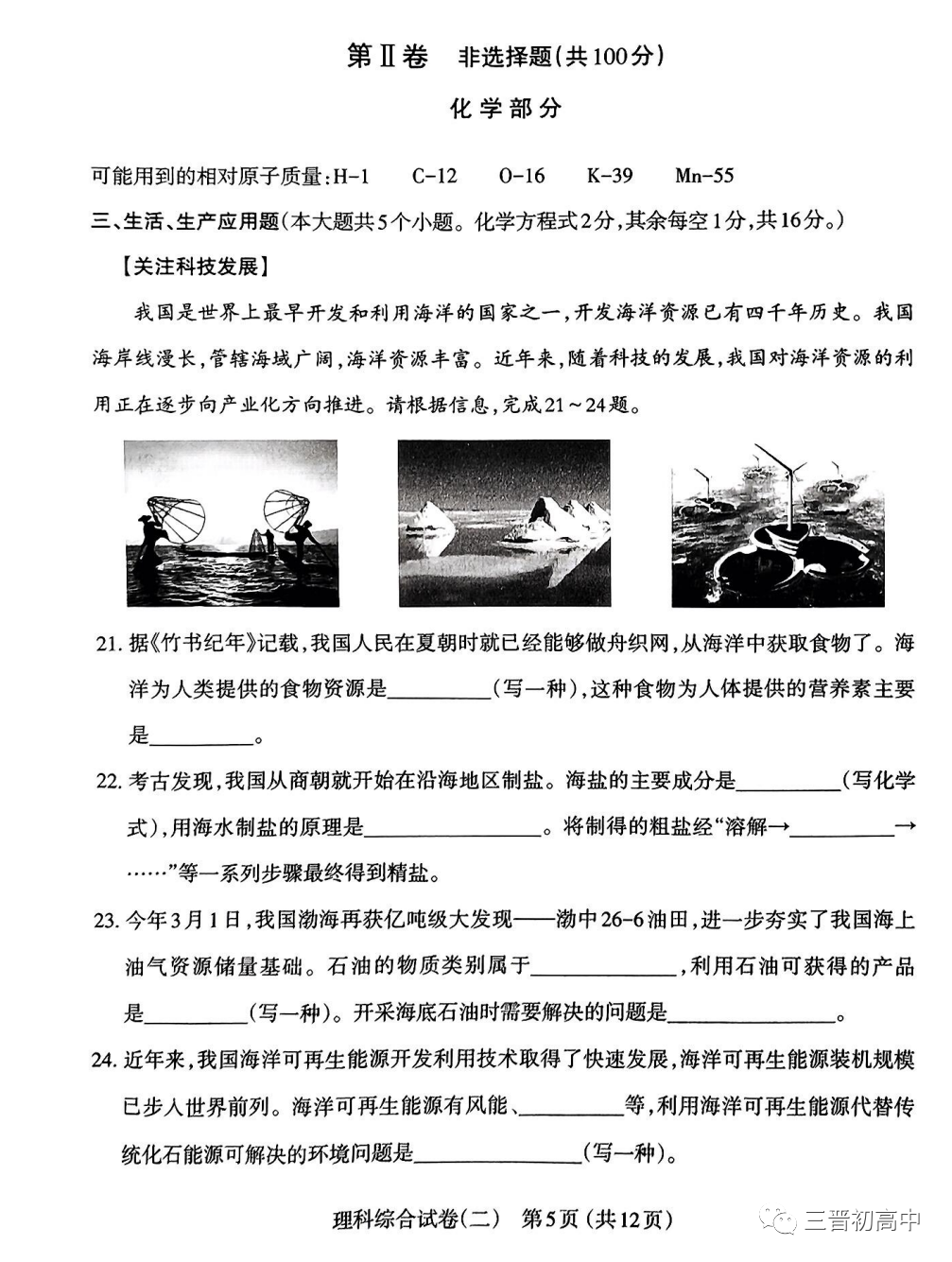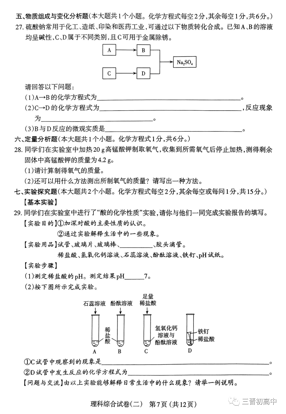平遥2023年九年级五月教学质量检测全科试题及答案