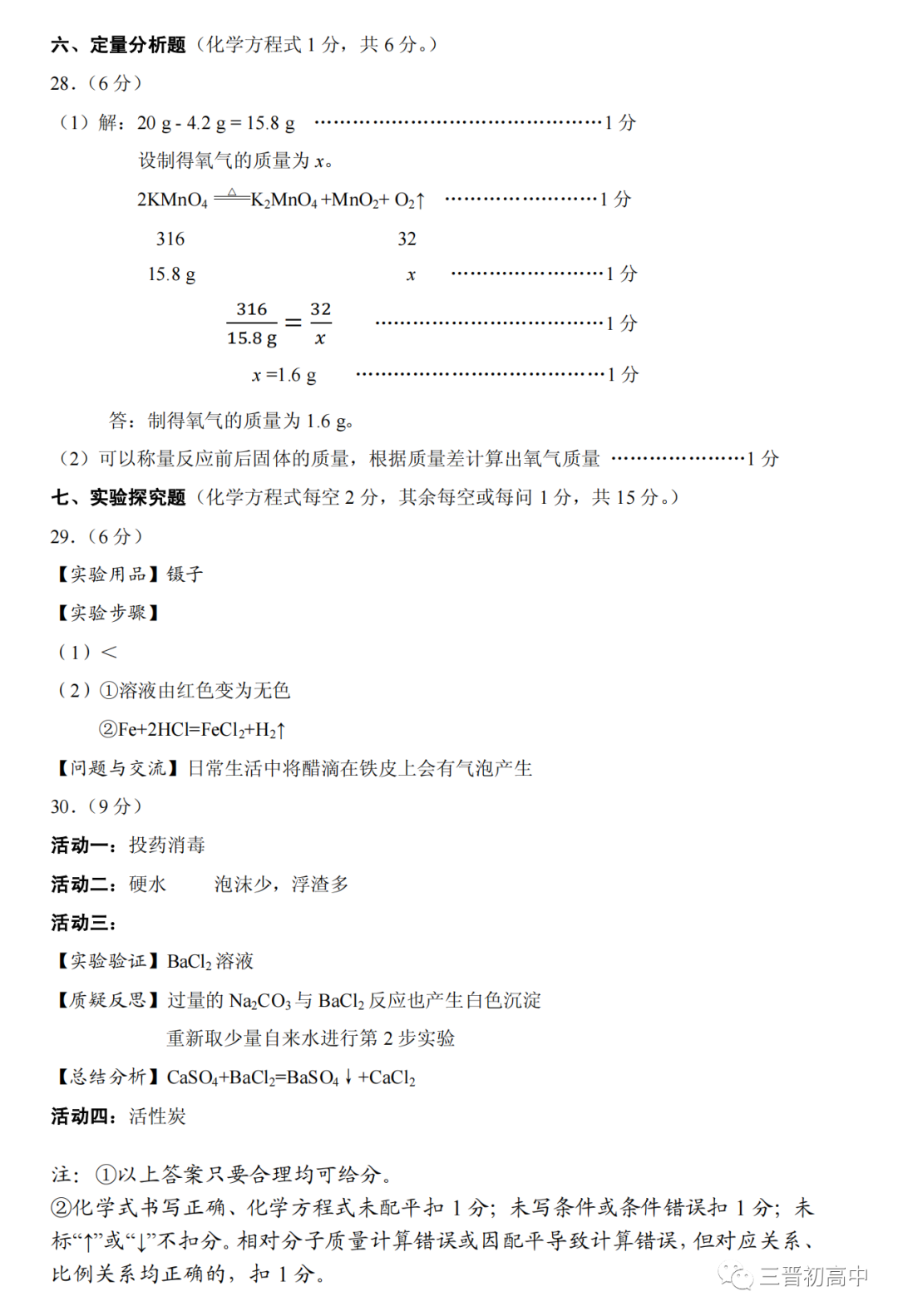 2023年运城、阳泉九年级教学质量监测试题答案汇总