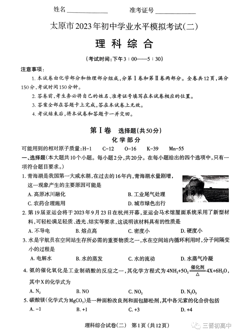 2023年太原市中考一二模考试时间发布 附往年真题下载