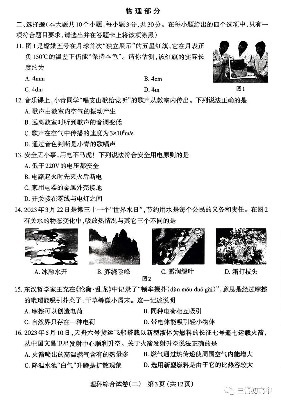 晋一原创卷 山西2023初中学业水平模拟测评三试题答案全