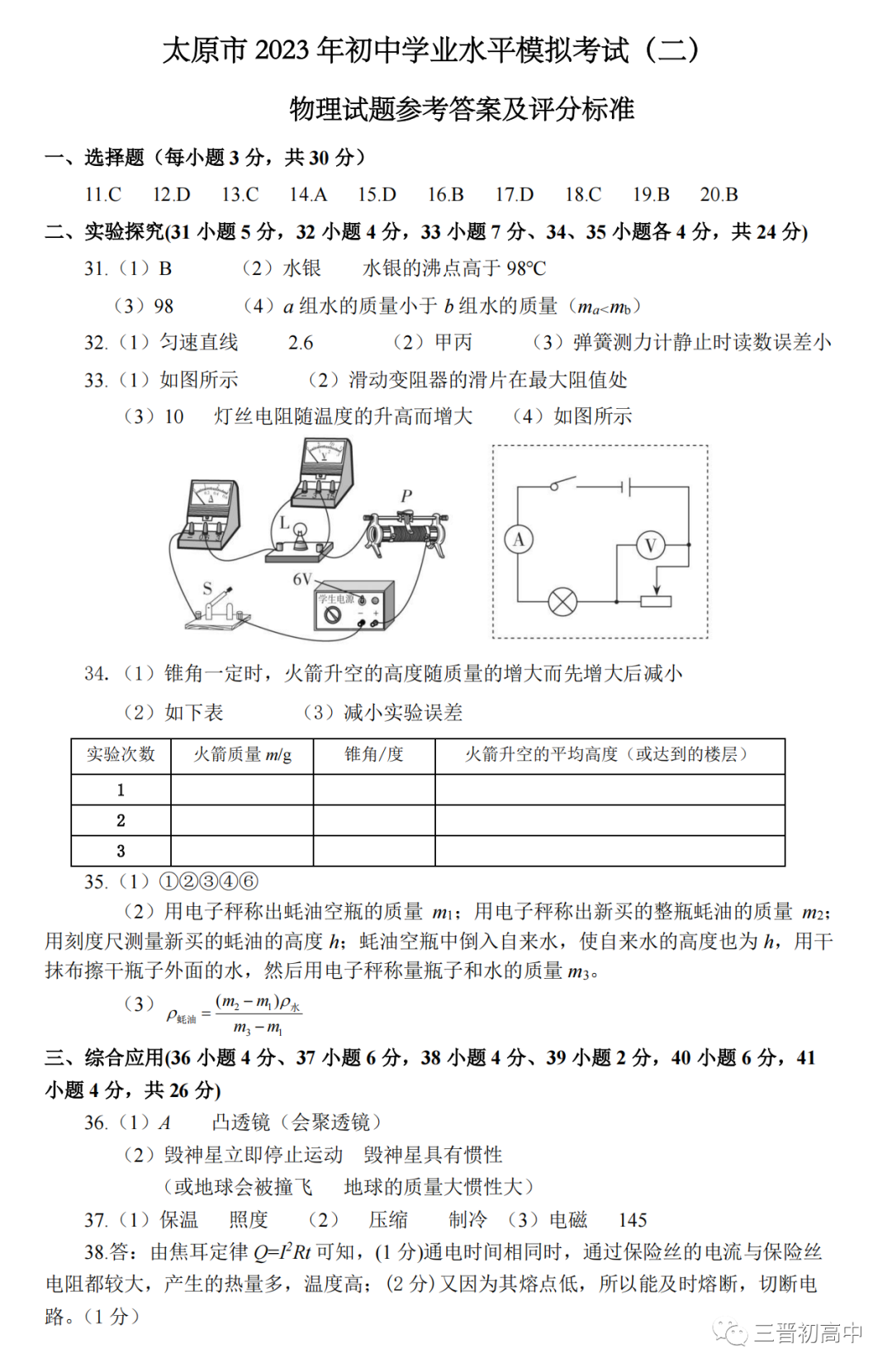 2023年太原中考一模全科试题及答案汇总 含英语听力