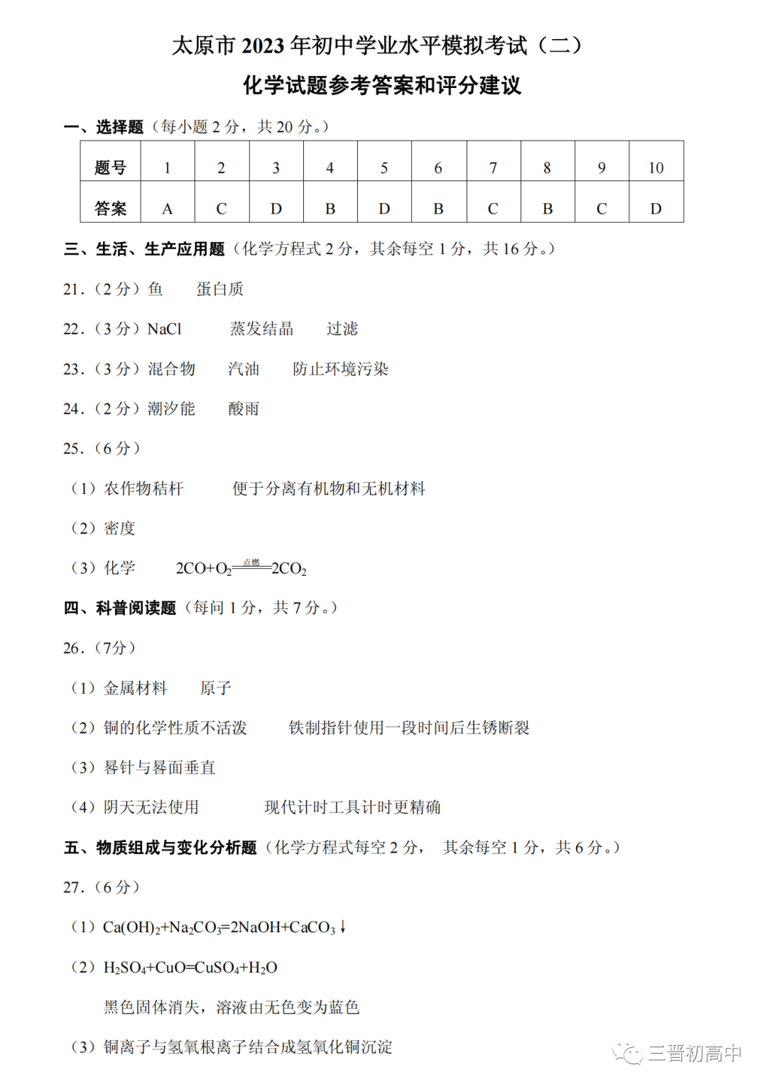2023年山西中考百校联考(二)全科试题及答案 含英语听力