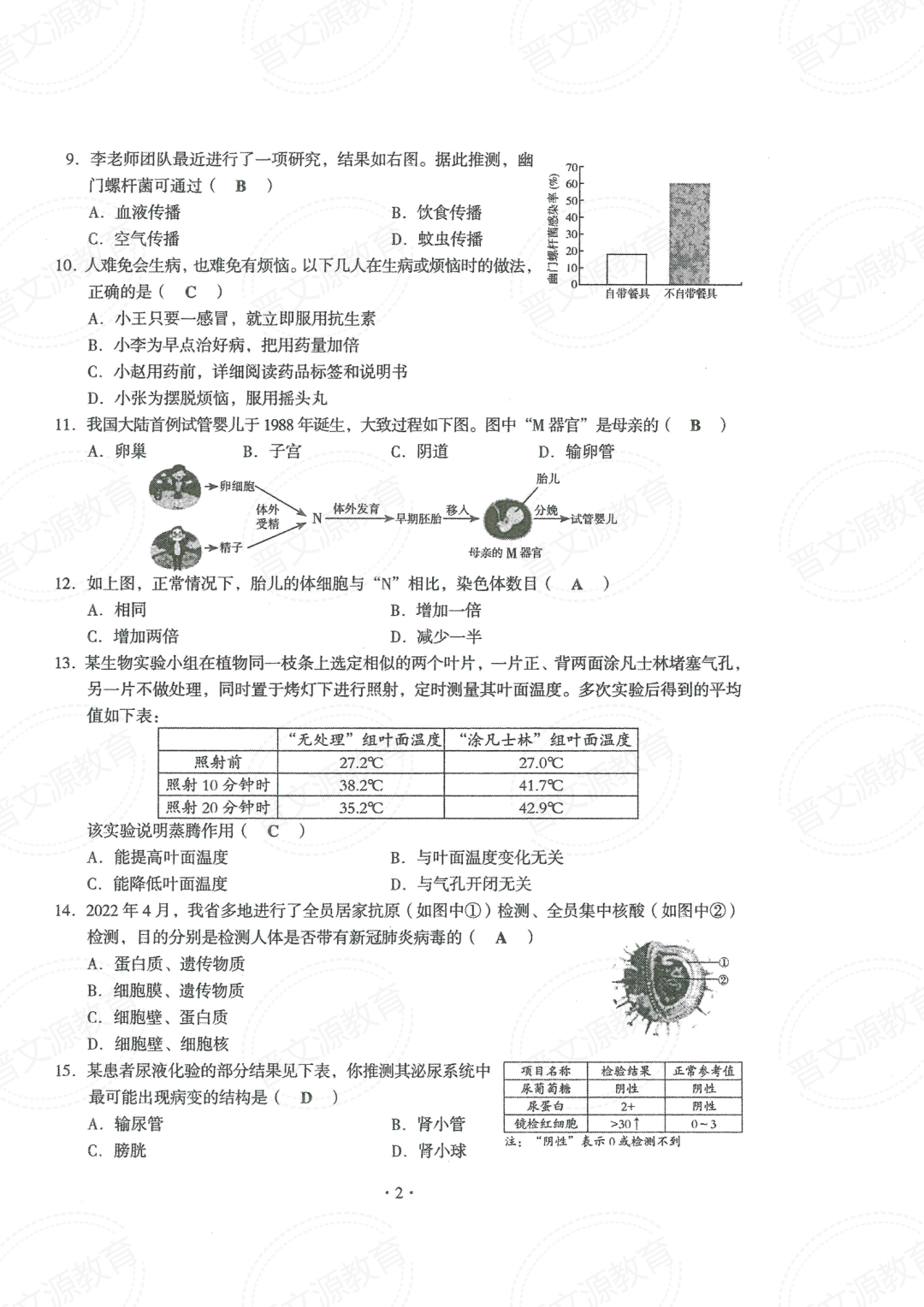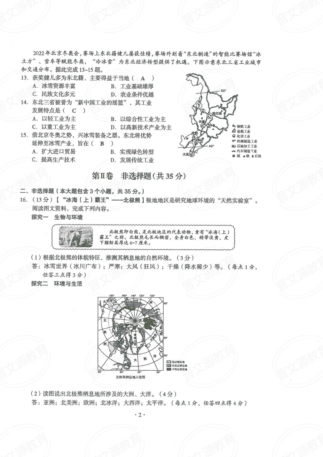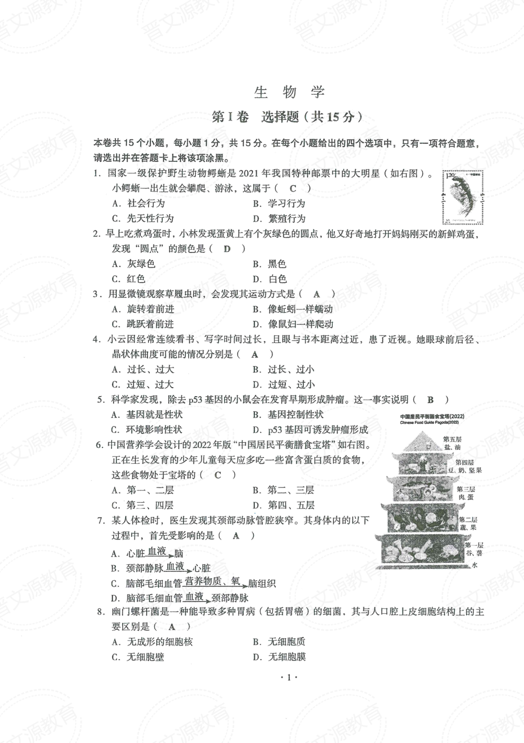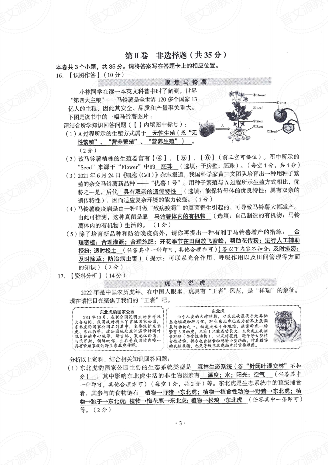 晋中版2022年山西中考真题(理综+文综+地理+生物)