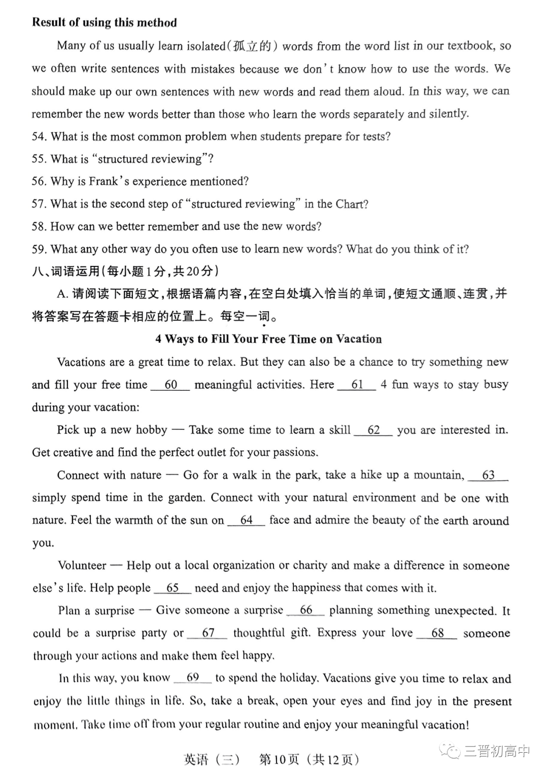 23年吕梁中考模拟全科试题及答案 含英语听力及材料