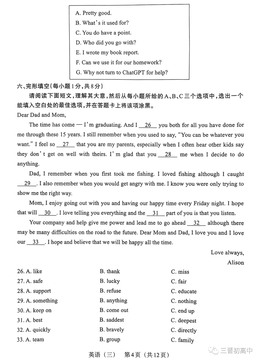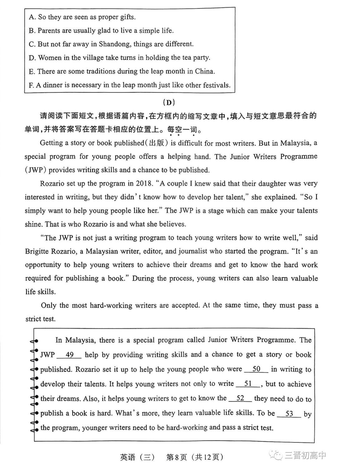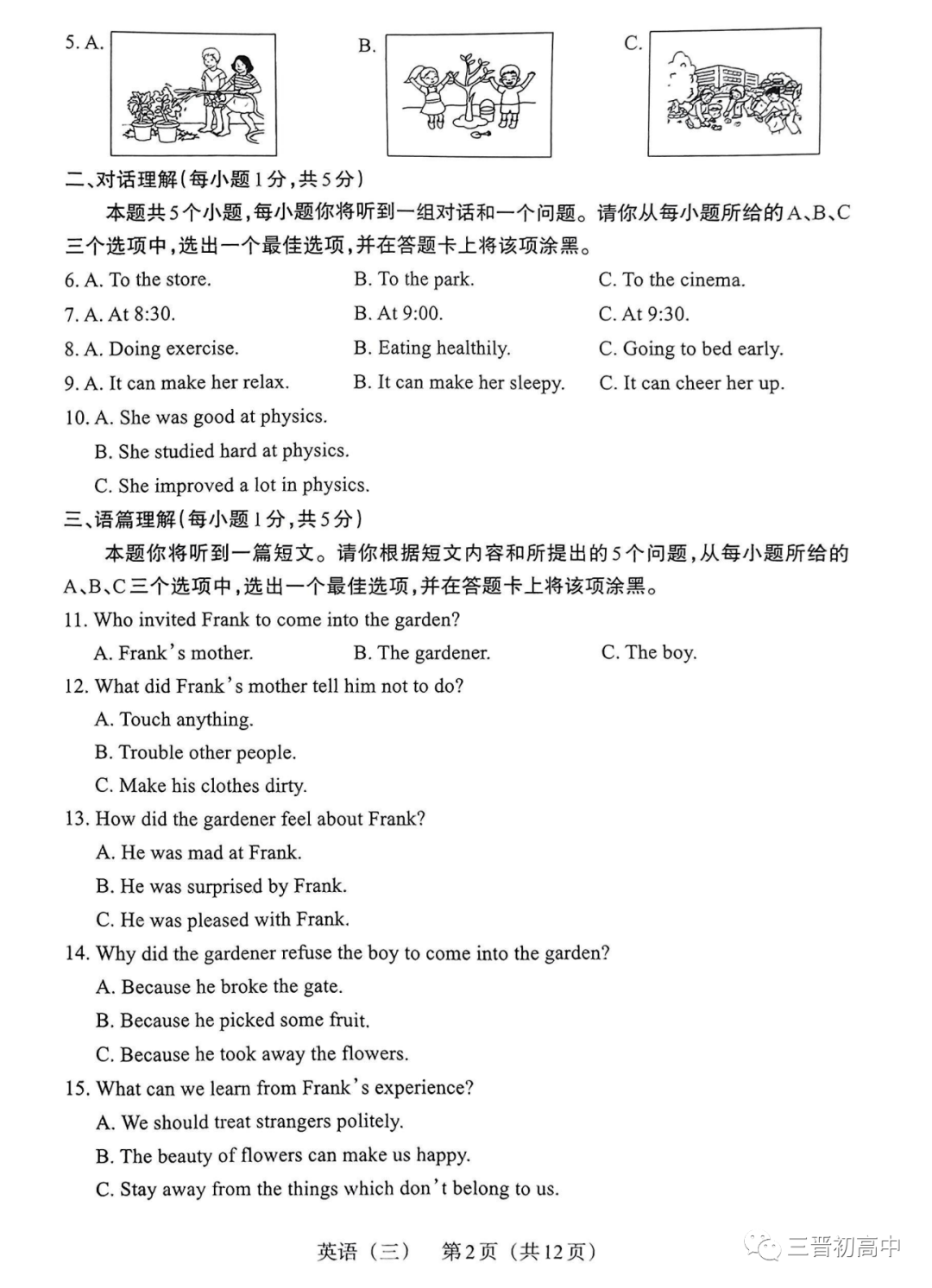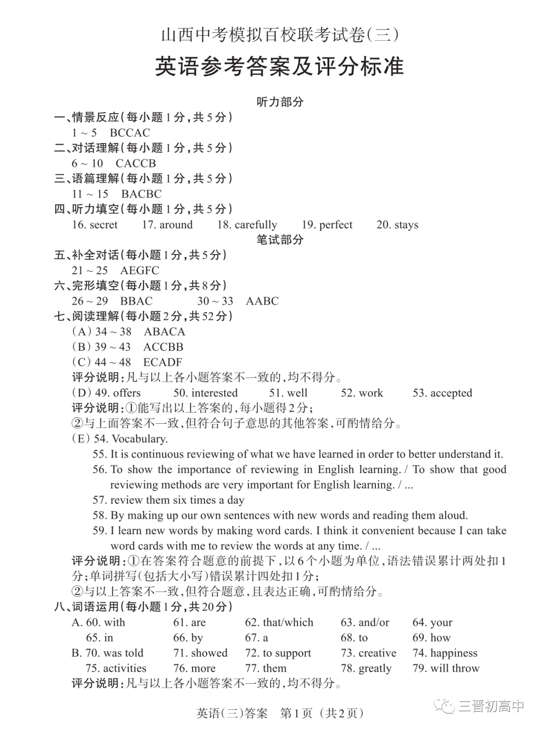 2023年山西中考百校联考(二)全科试题及答案 含英语听力