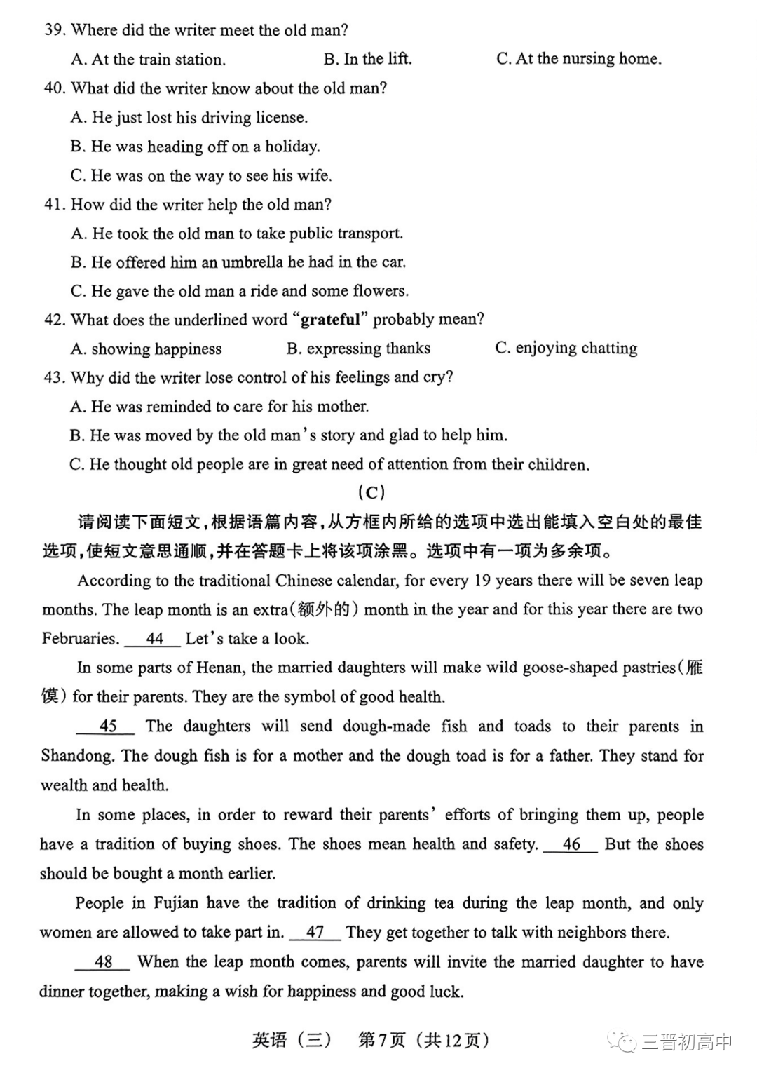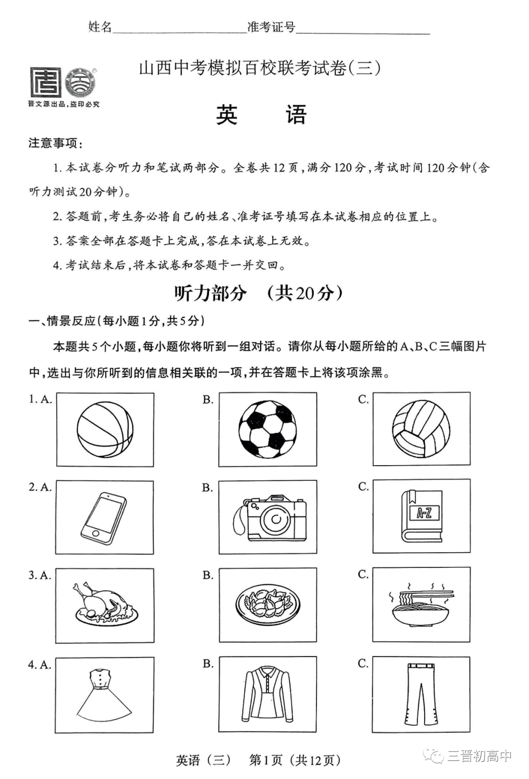 2022山西中考百校联考三全科试题及答案汇总含英语听力