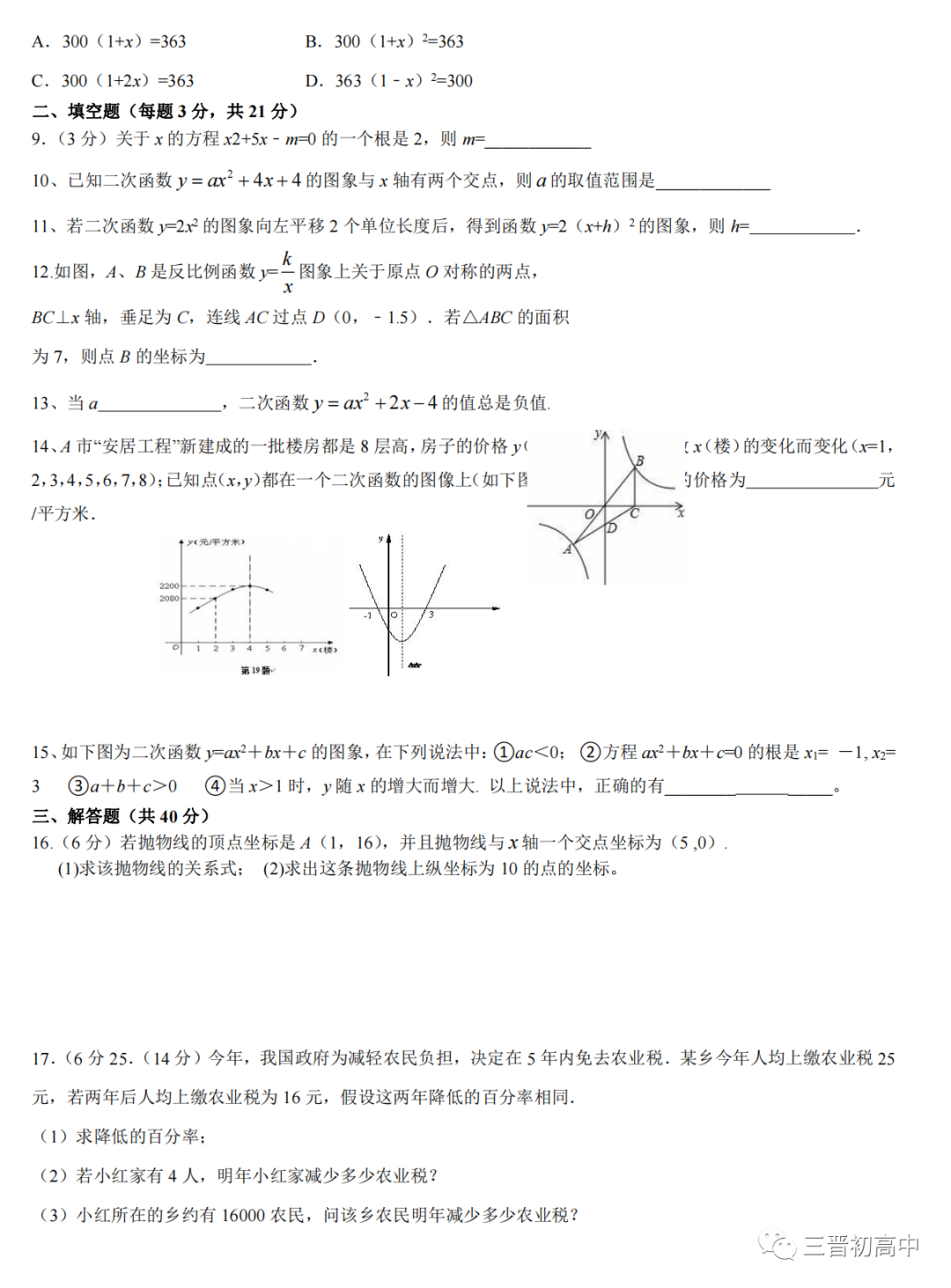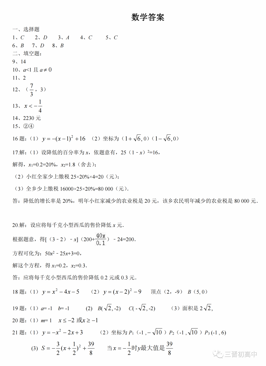 2023年运城、阳泉九年级教学质量监测试题答案汇总