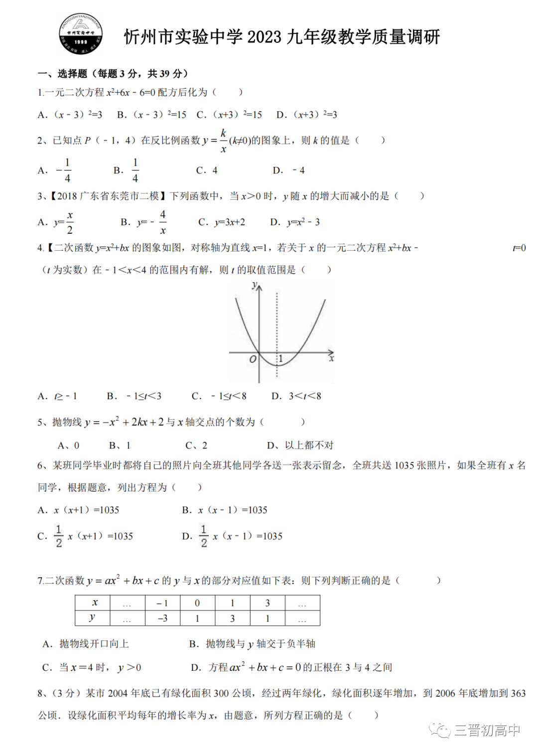 2023年太原中考一模全科试题及答案汇总 含英语听力
