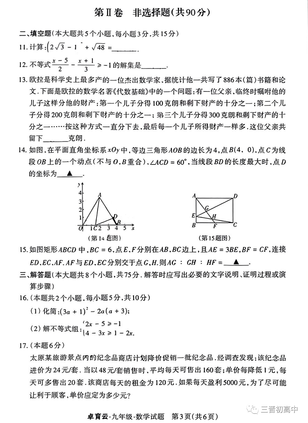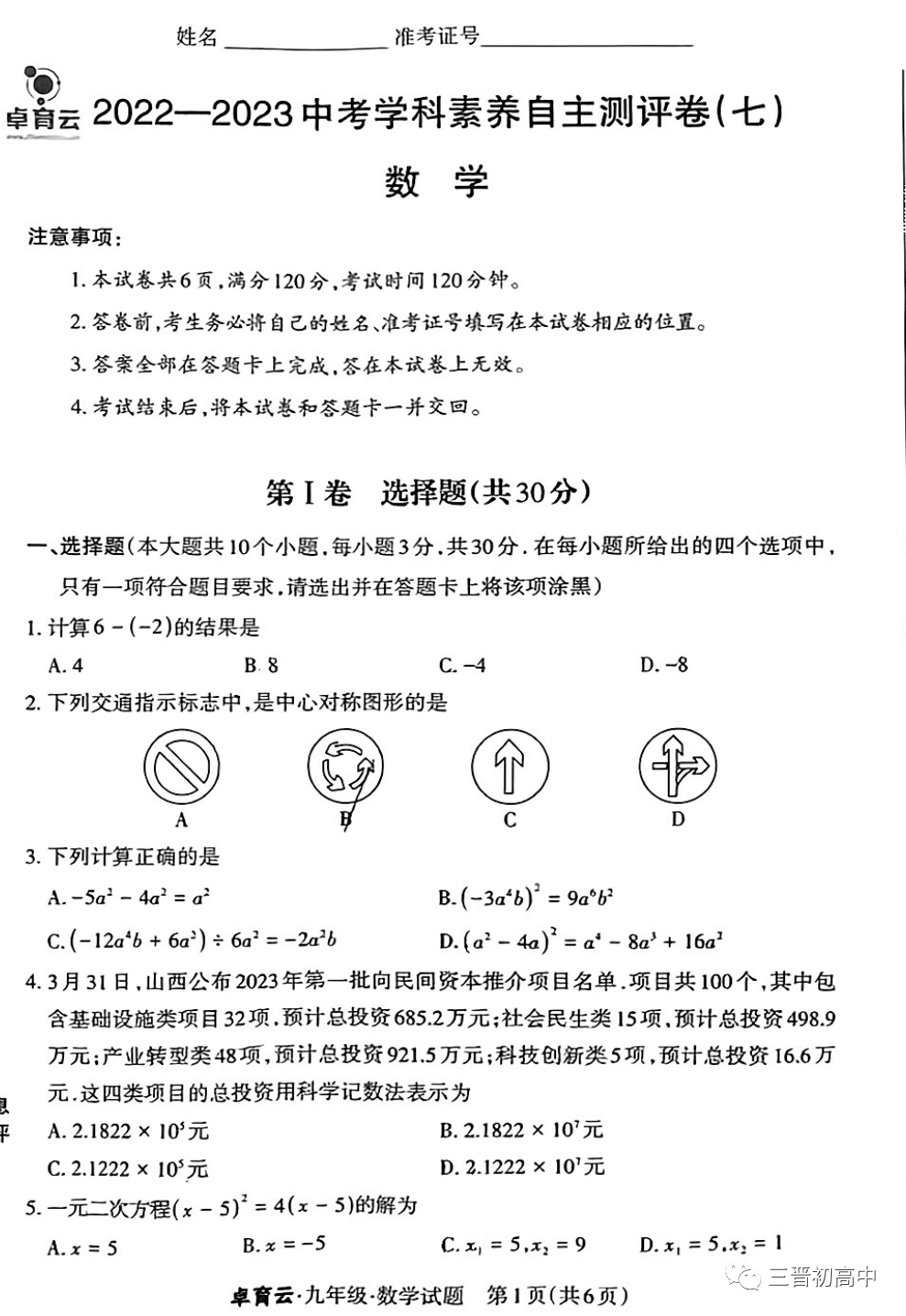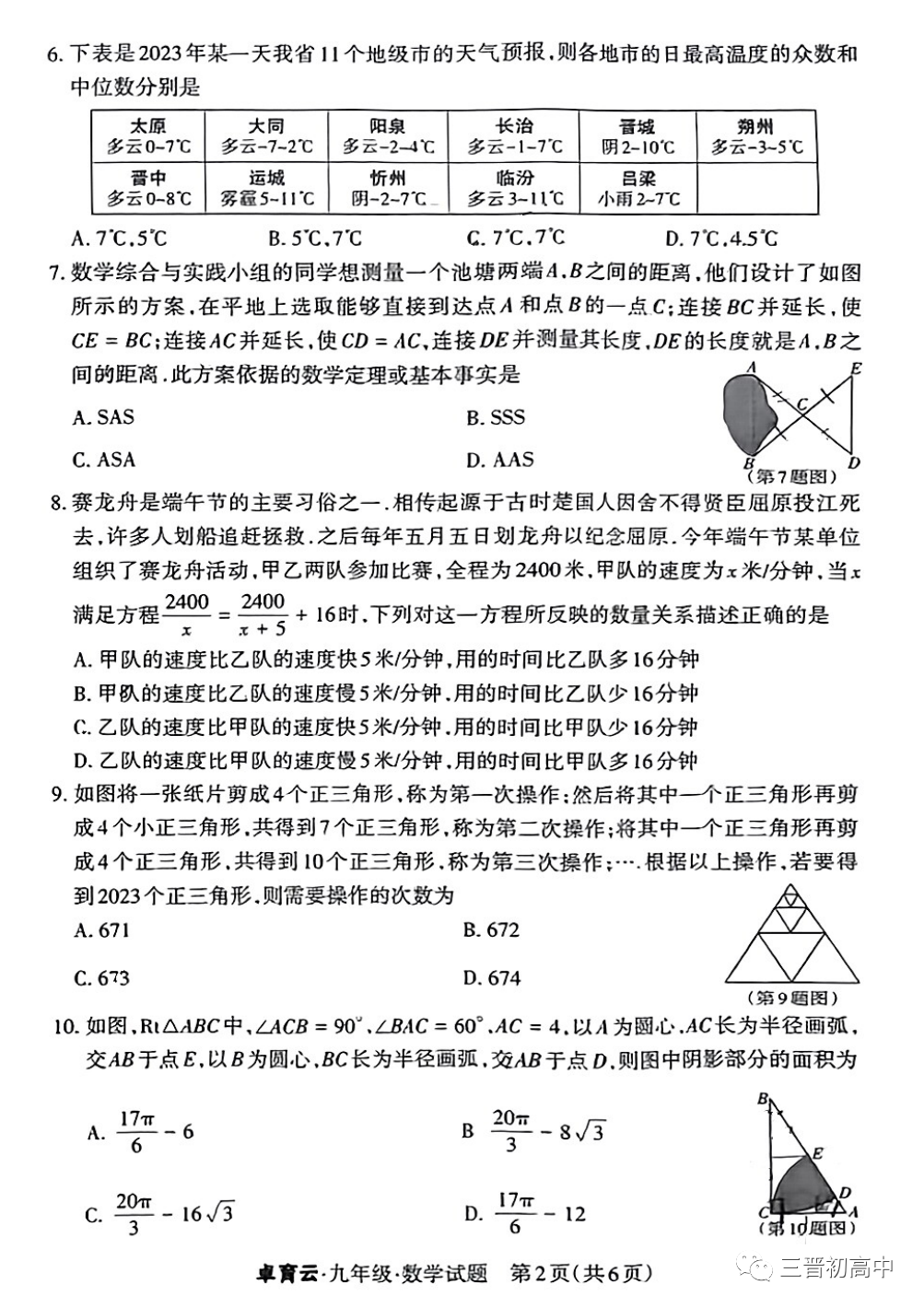 万柏林区2023年初中阶段学业综合检测卷