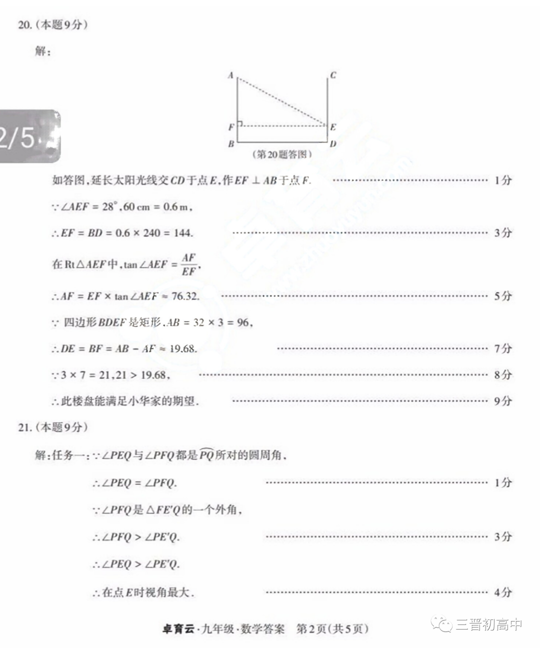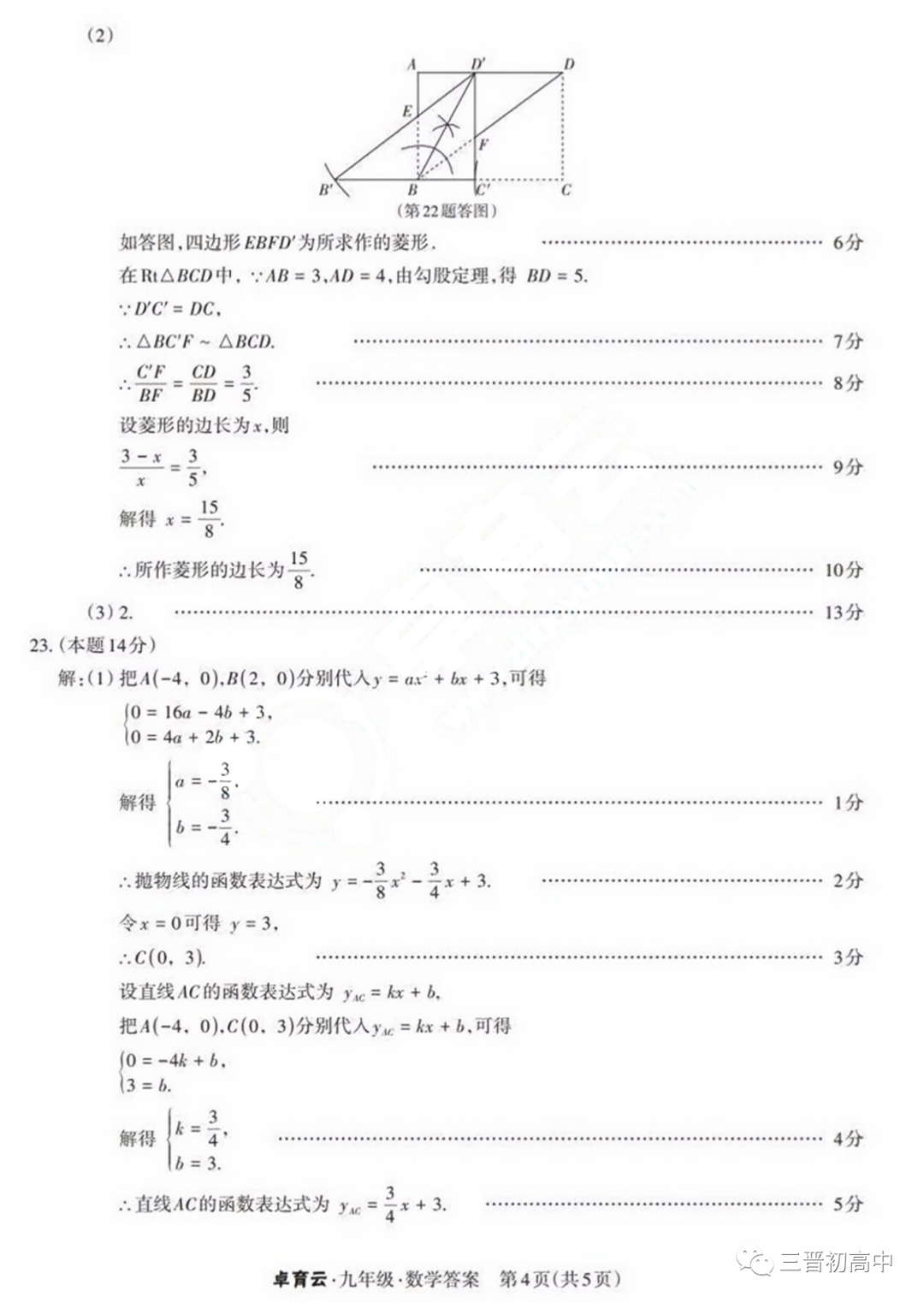 2023年运城、阳泉九年级教学质量监测试题答案汇总