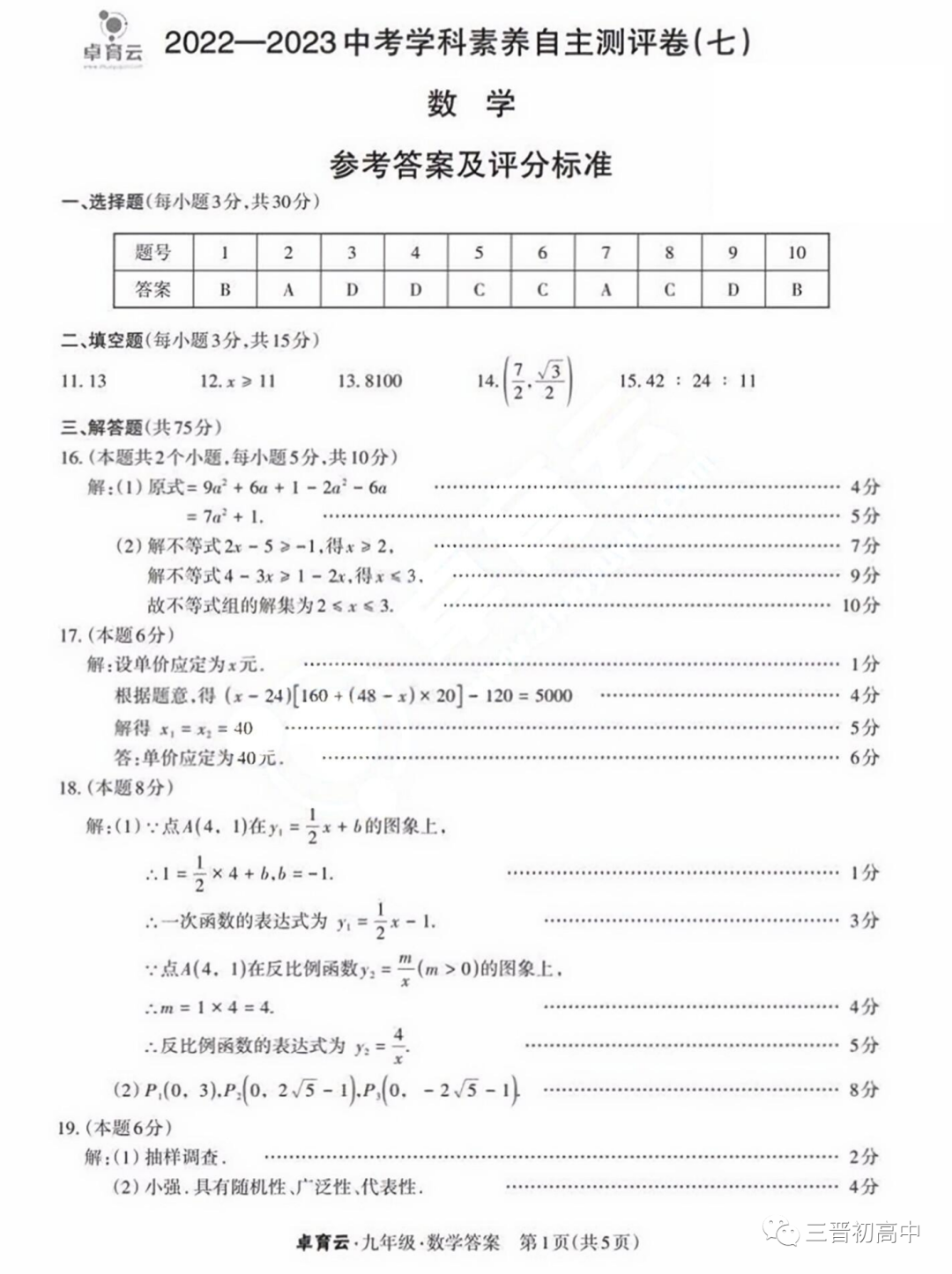 晋一原创卷 山西2023初中学业水平模拟测评一二试题答案全