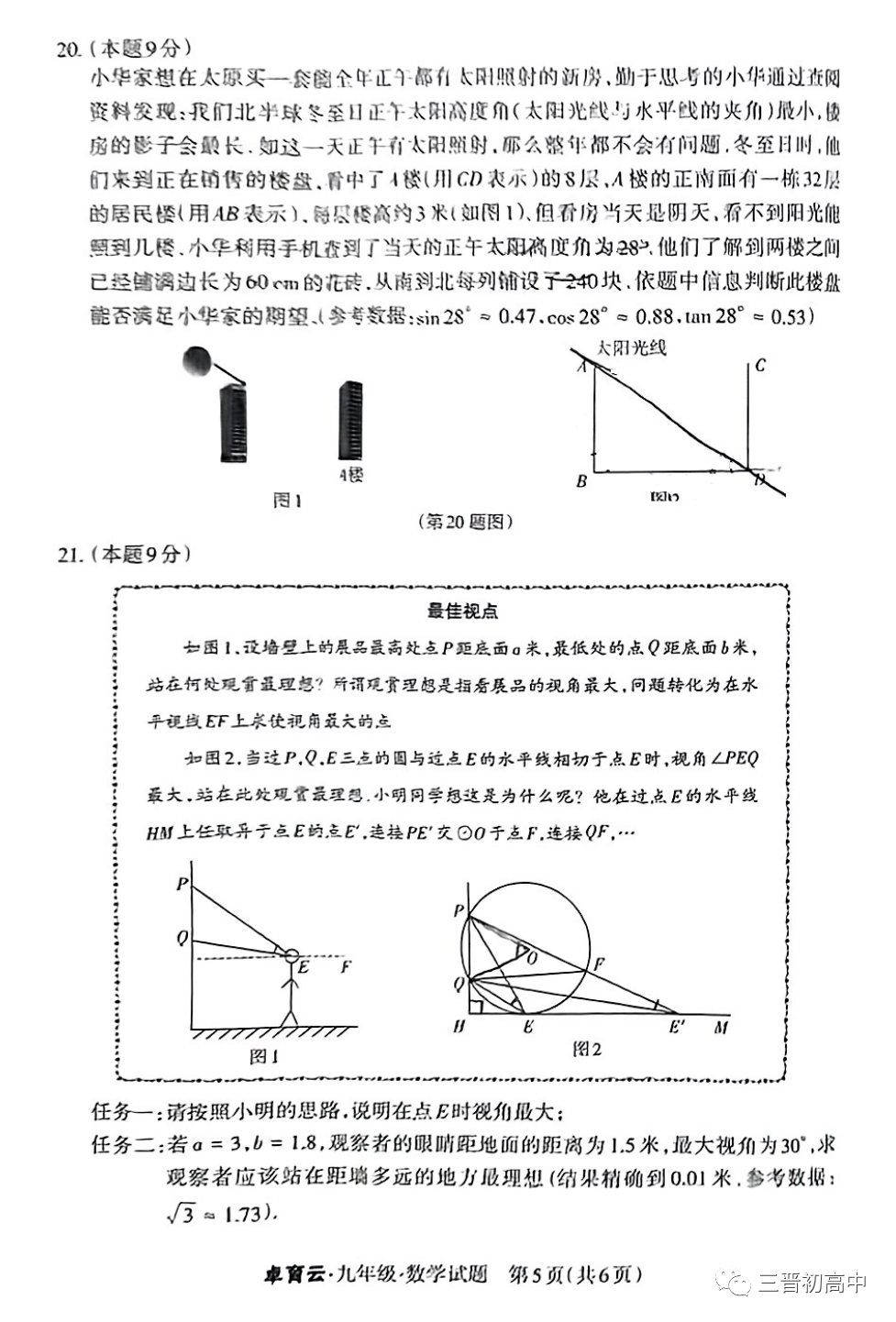 2023年太原中考一模全科试题及答案汇总 含英语听力