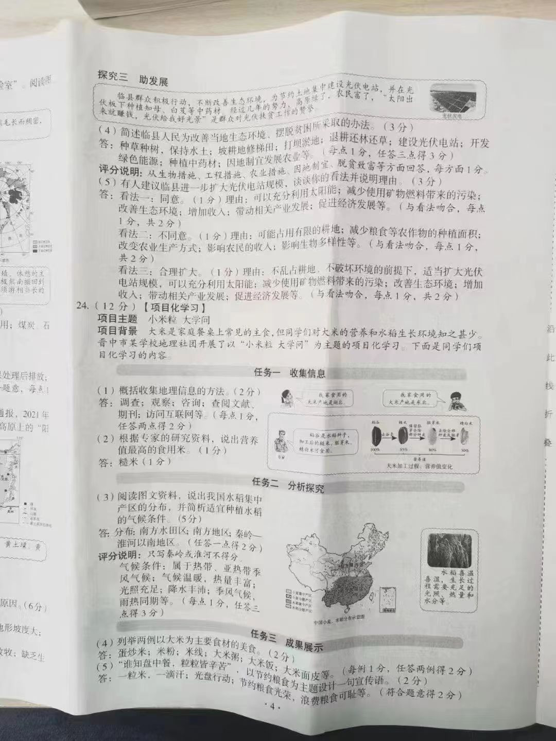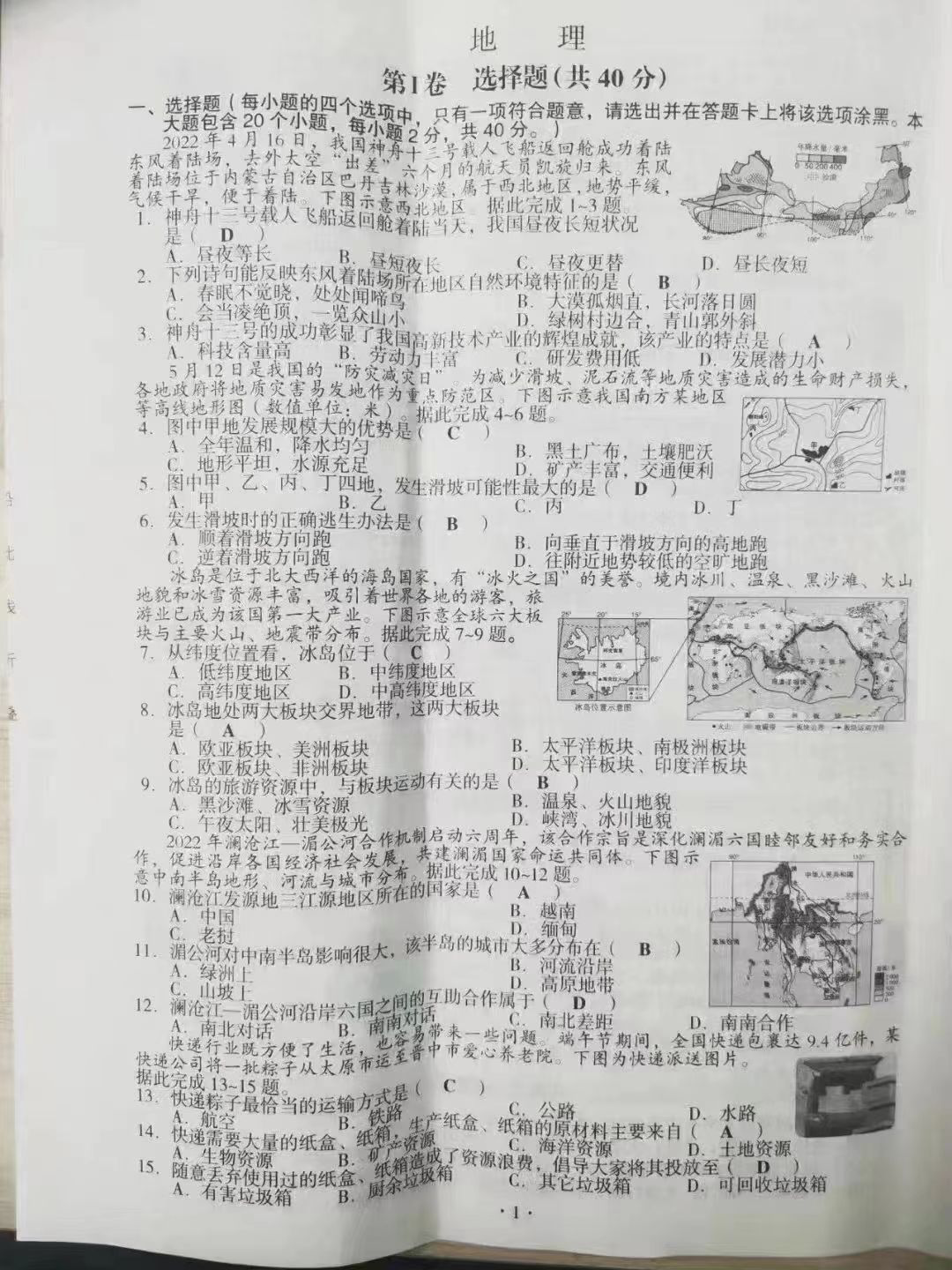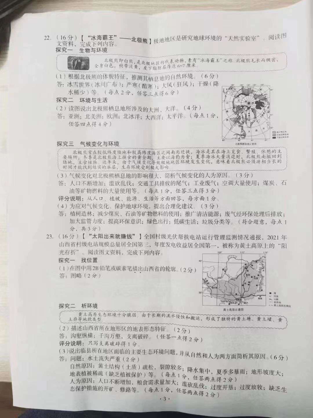 晋中版2022年山西中考真题(理综+文综+地理+生物)