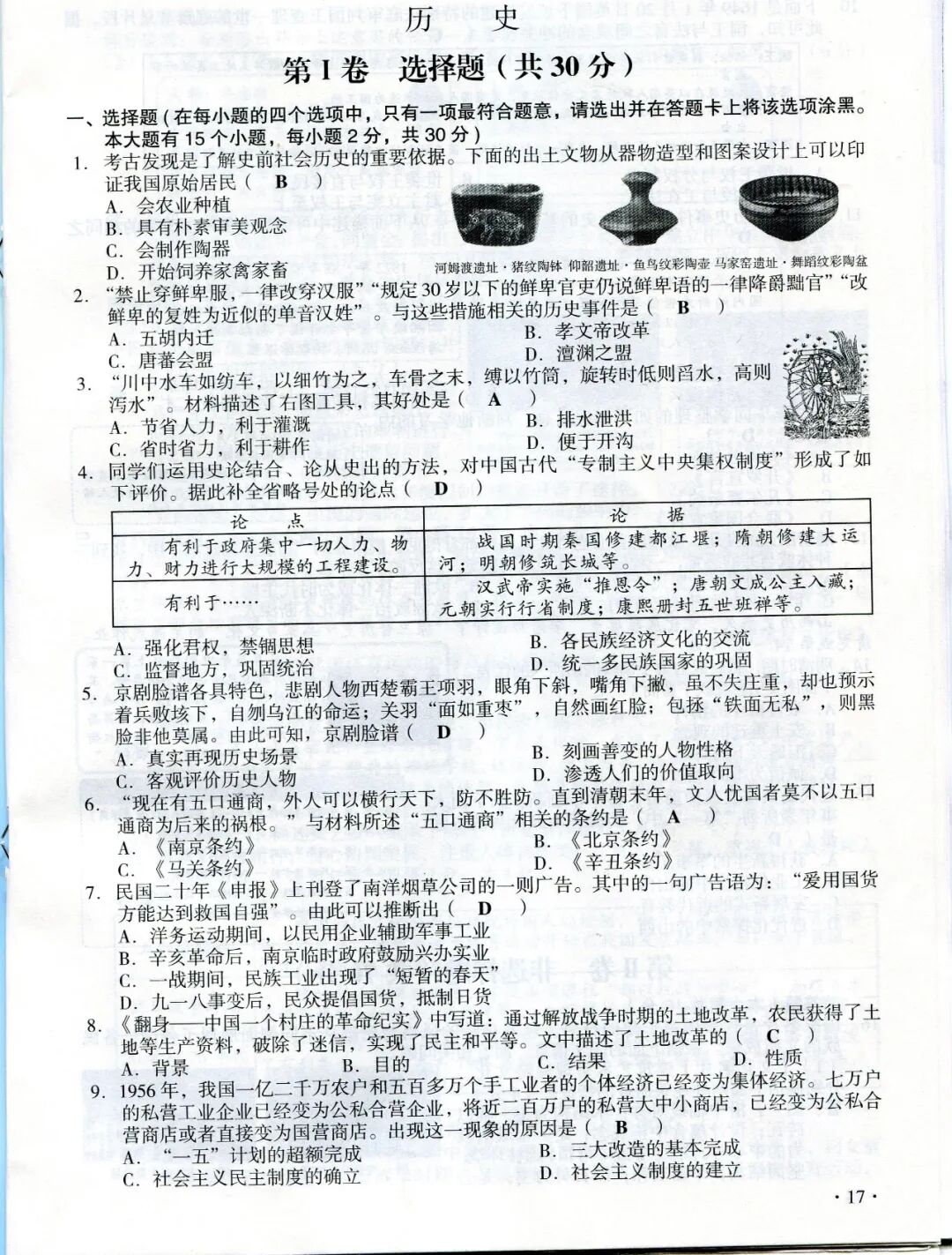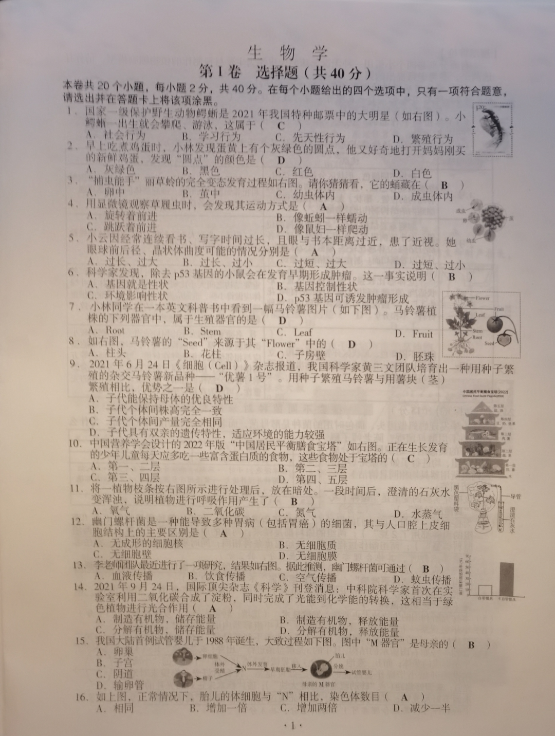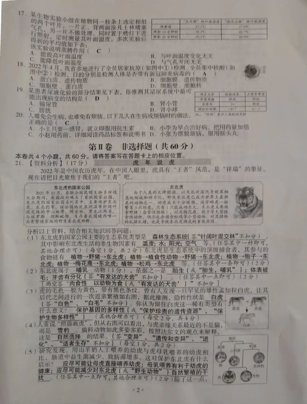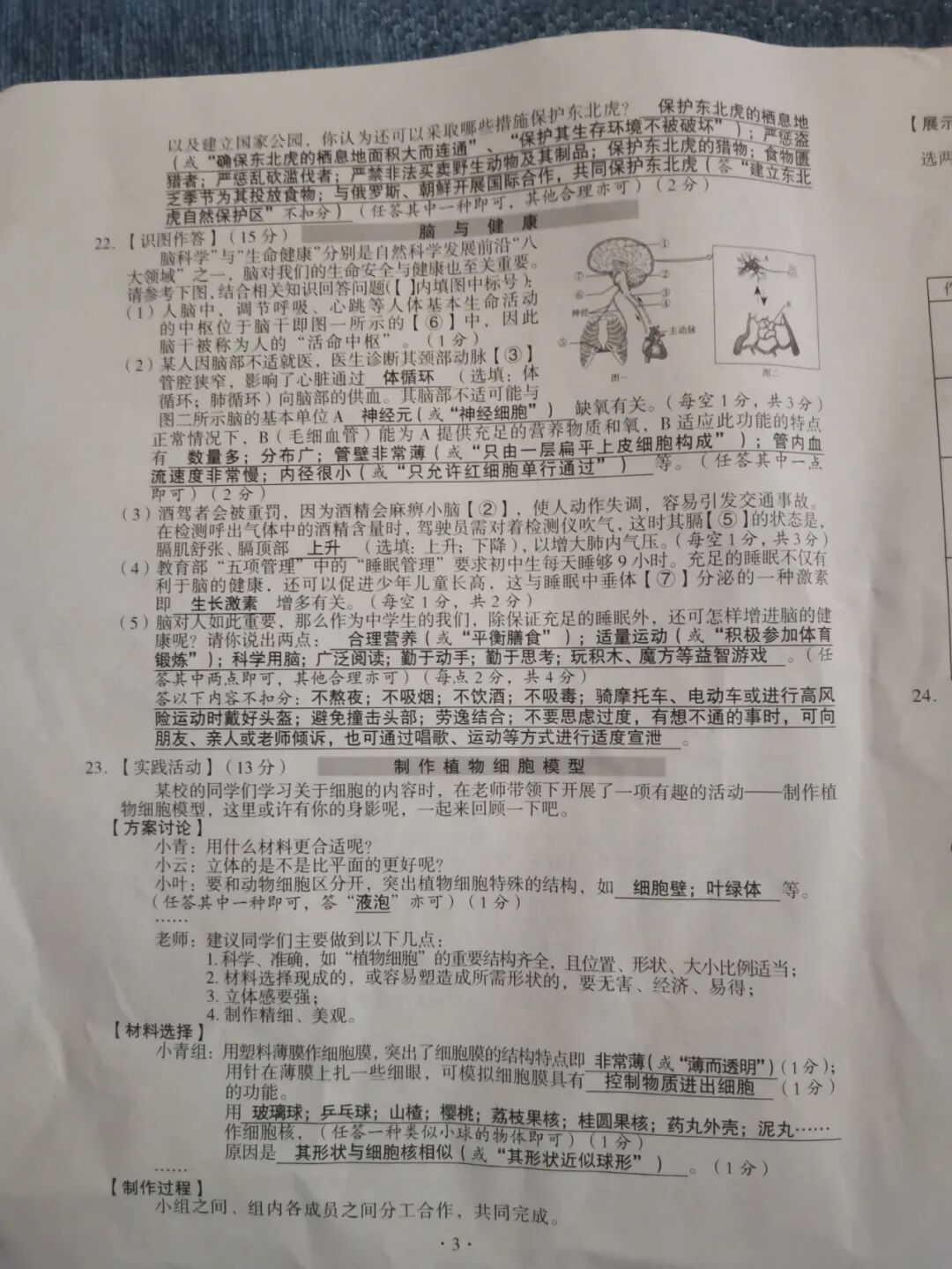 晋中版2022年山西中考真题(理综+文综+地理+生物)