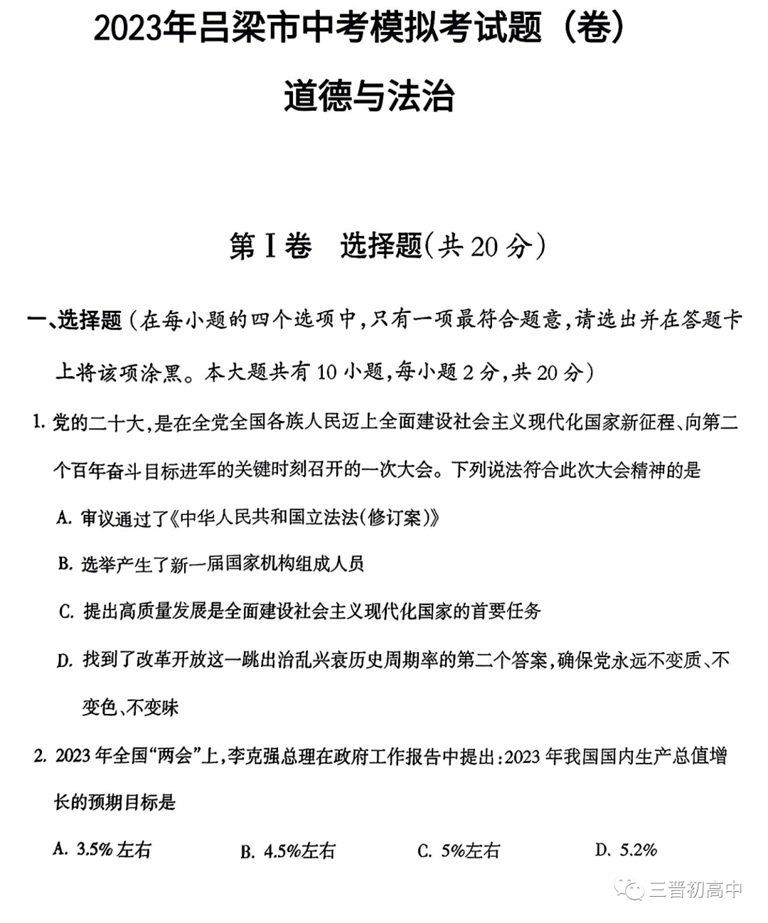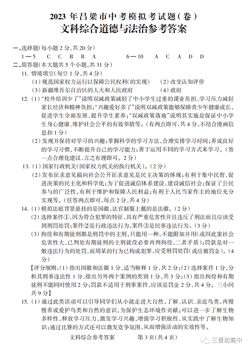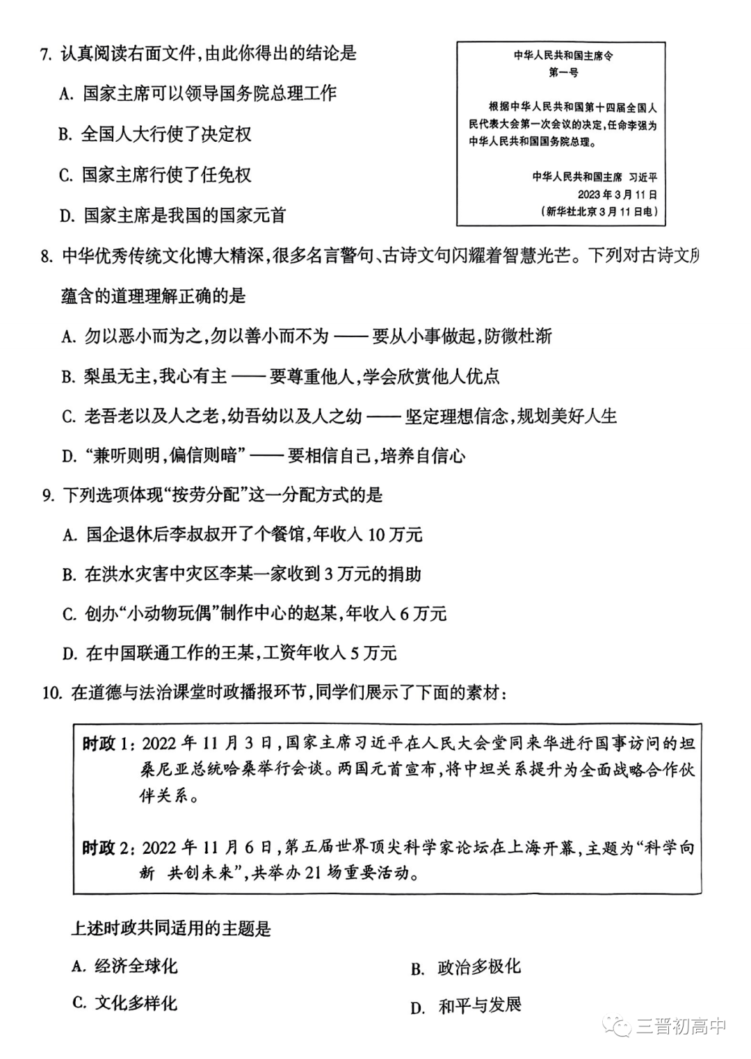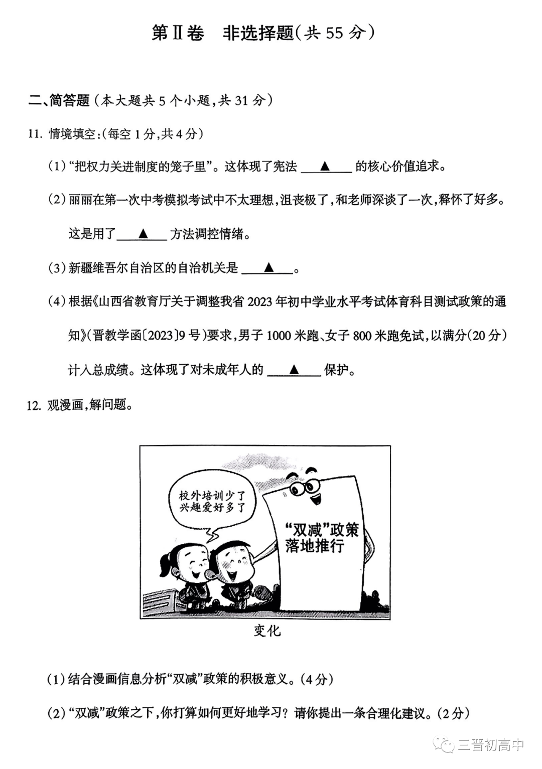 2023年山西中考百校联考(二)全科试题及答案 含英语听力