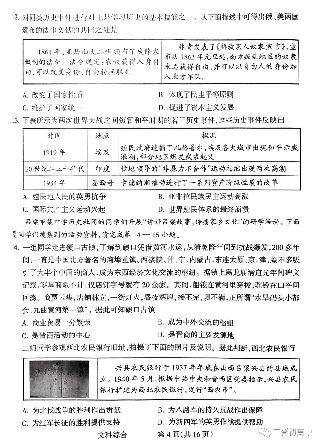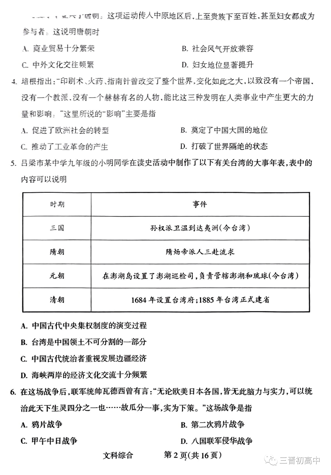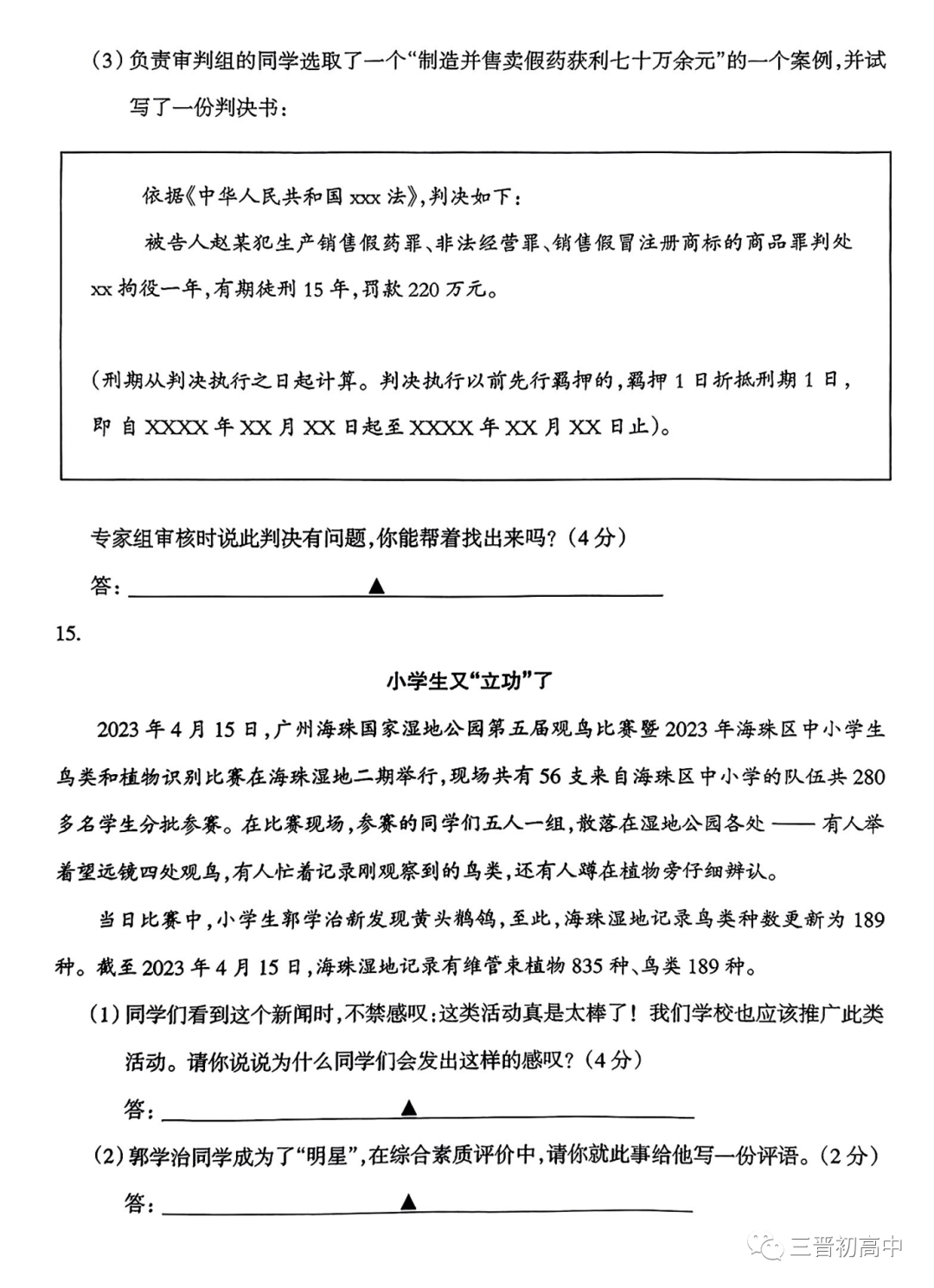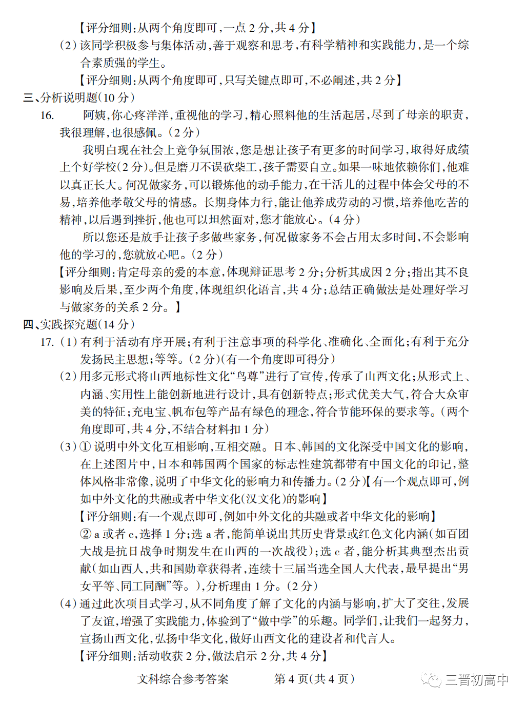 2023年山西中考百校联考(二)全科试题及答案 含英语听力