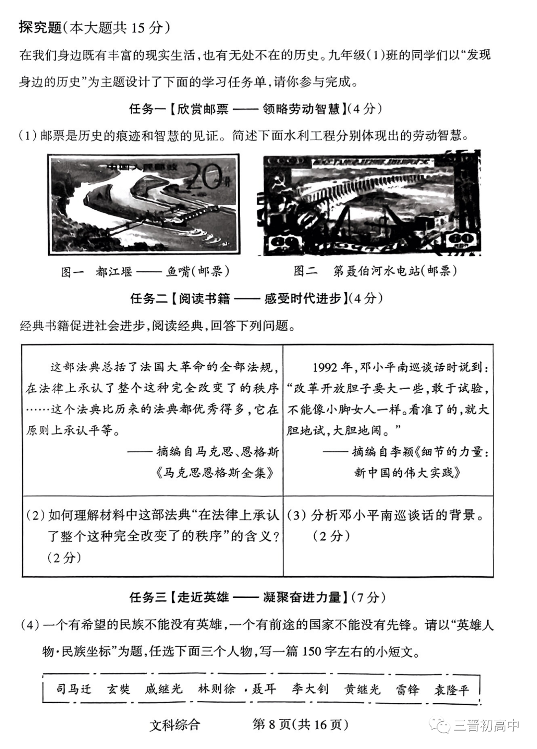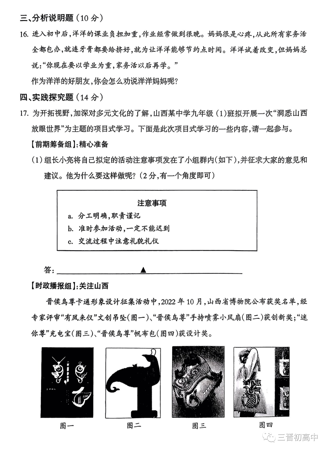 2023年太原中考一模全科试题及答案汇总 含英语听力