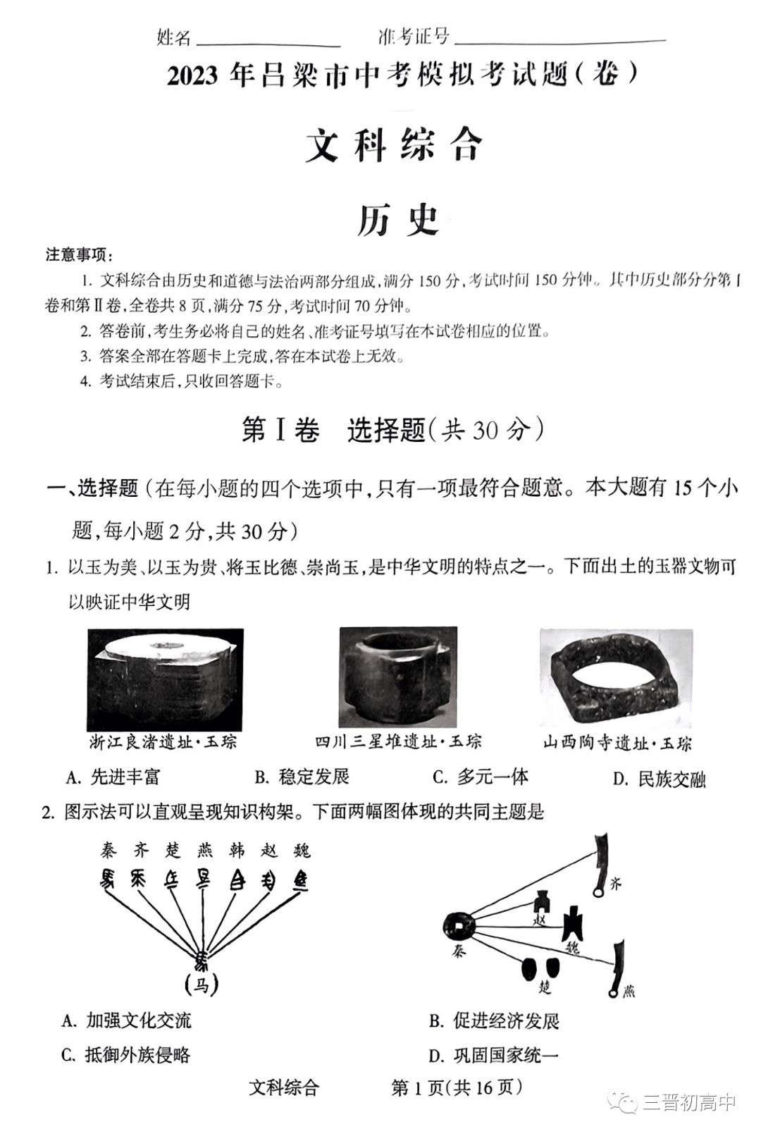 【备战2023山西中考】近六年百校联考(一)试题+答案领取