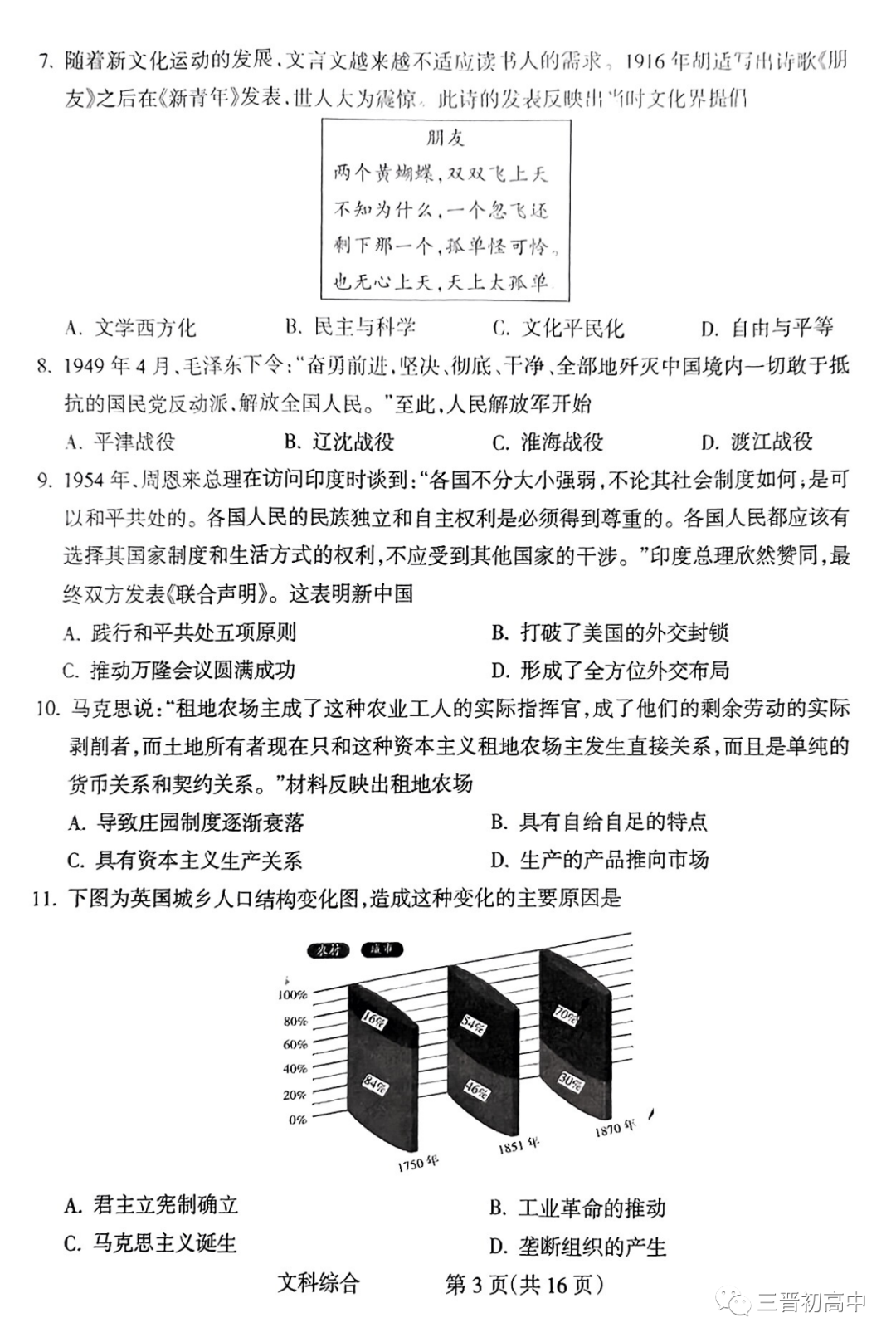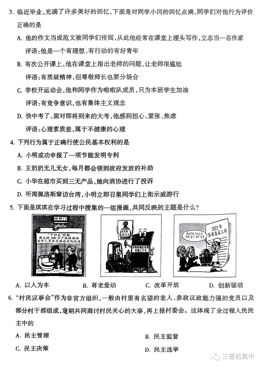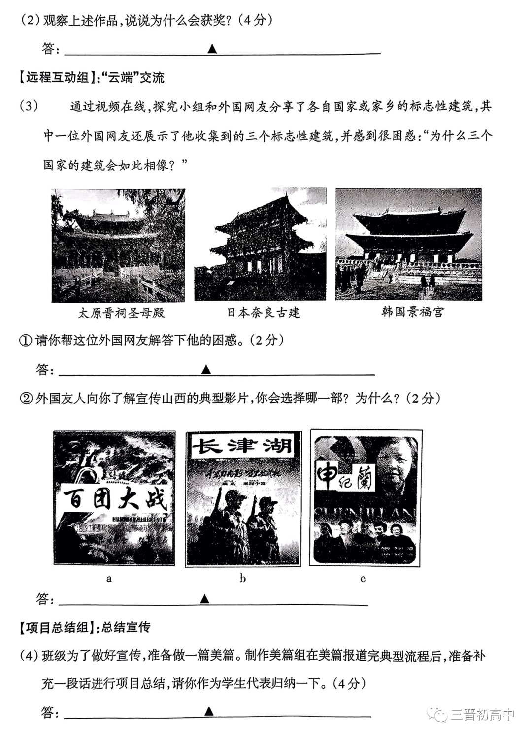 2022山西中考百校联考三全科试题及答案汇总含英语听力