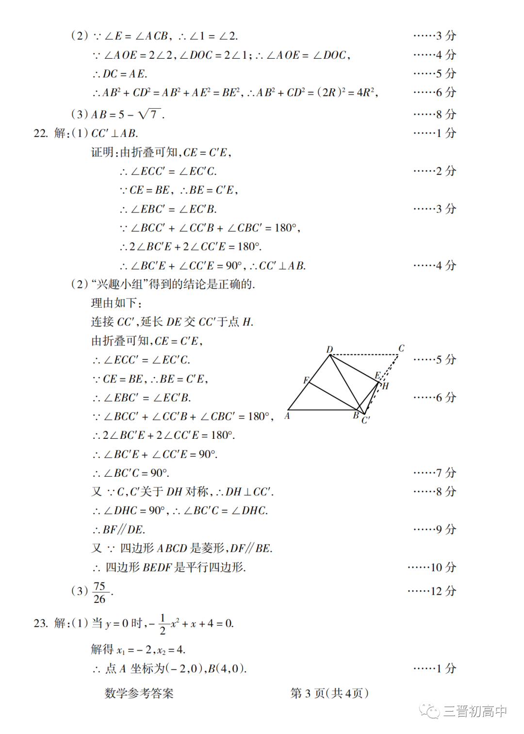 2022山西中考百校联考三全科试题及答案汇总含英语听力