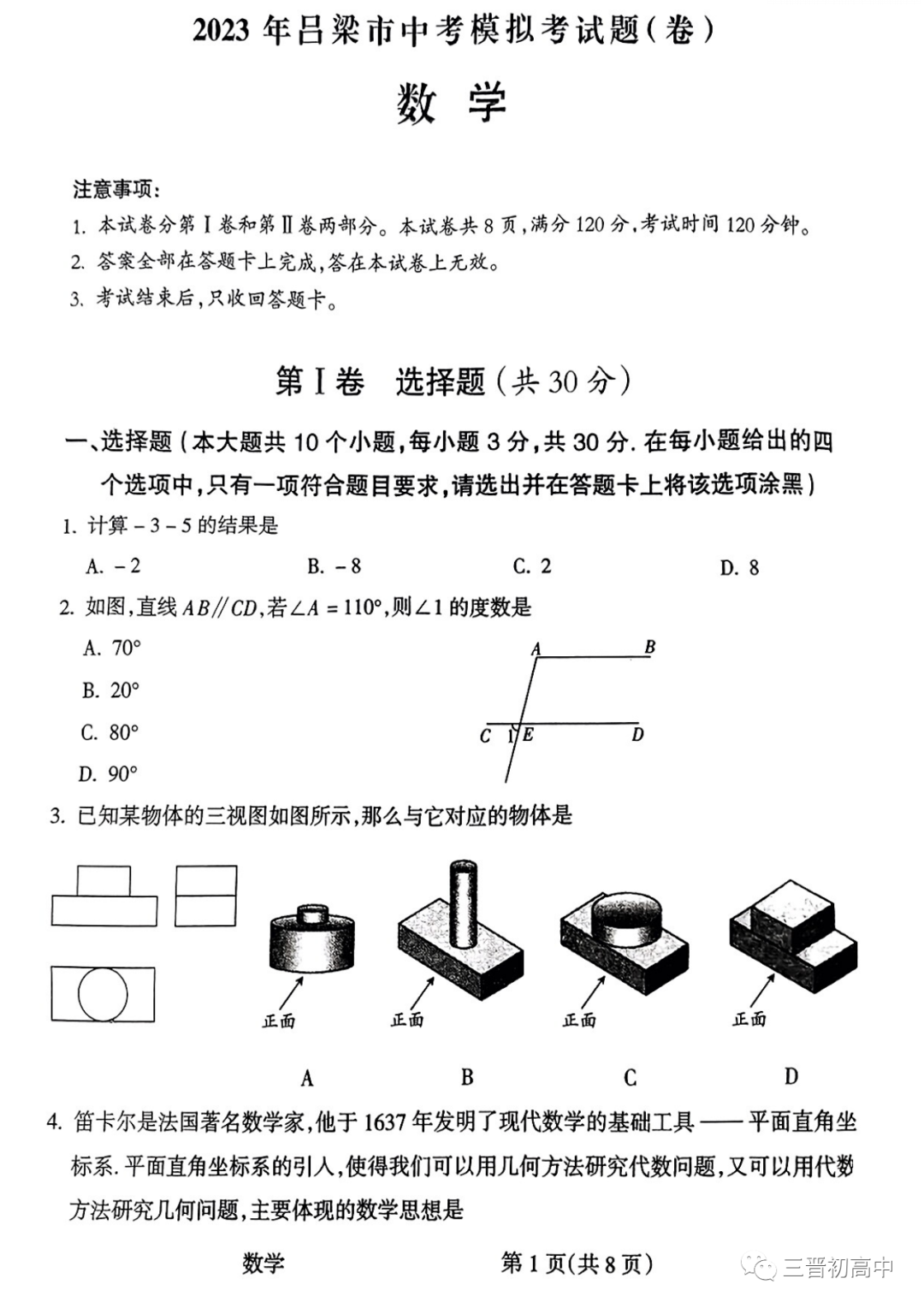 2023年太原中考一模全科试题及答案汇总 含英语听力