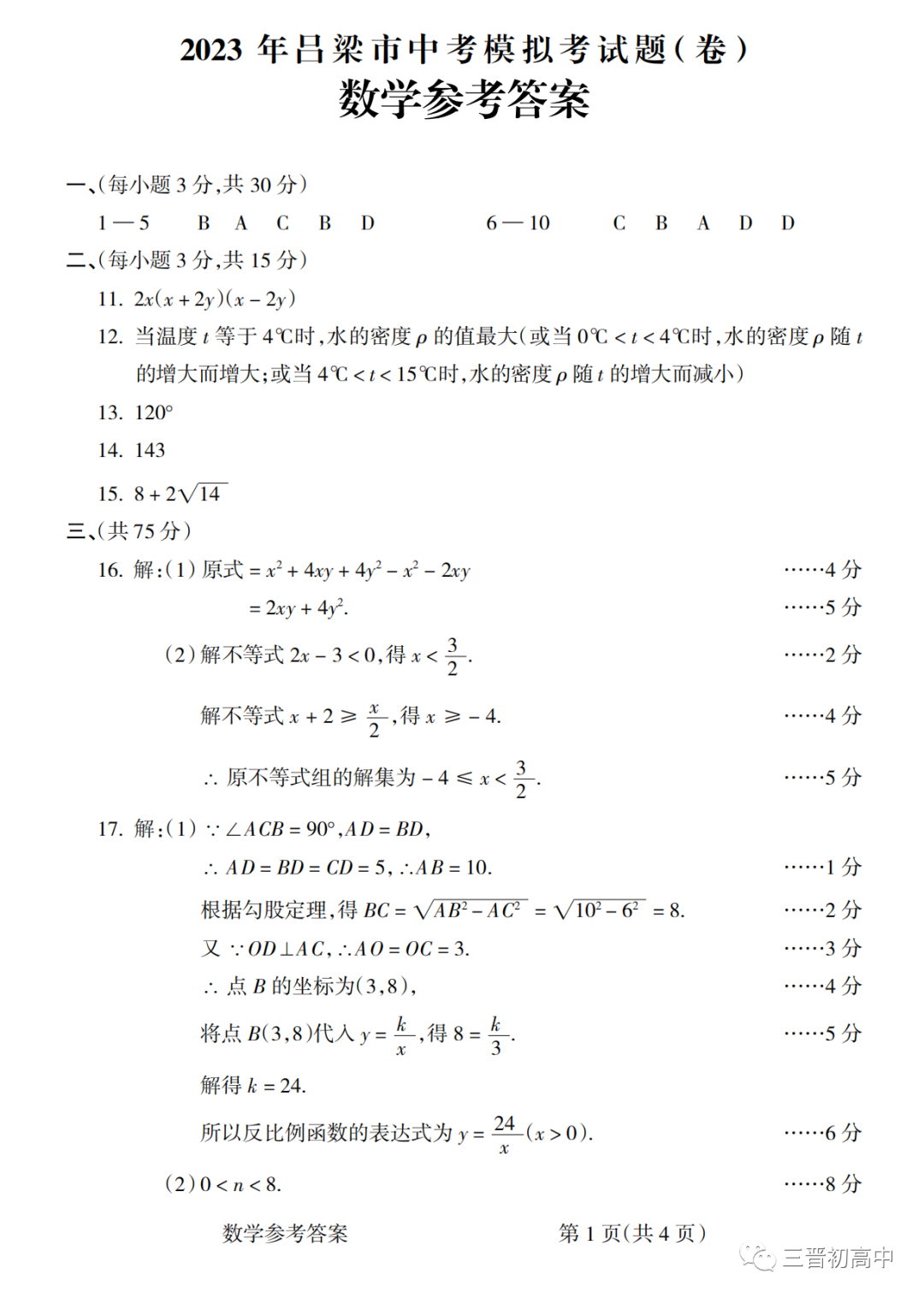 2023年山西中考百校联考(二)全科试题及答案 含英语听力