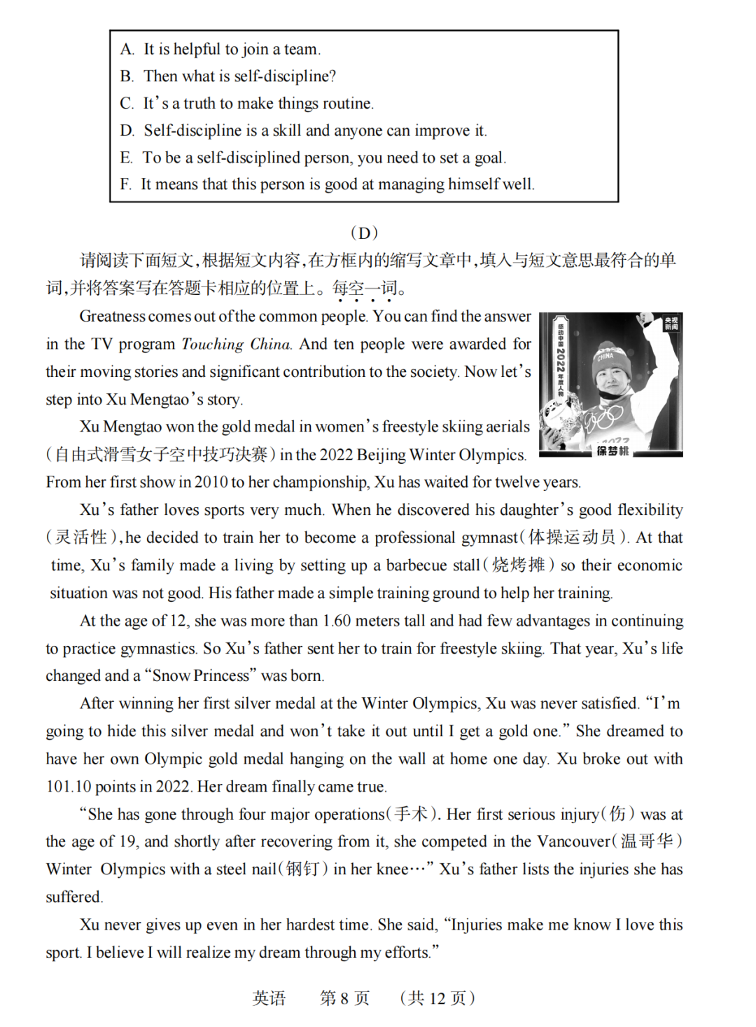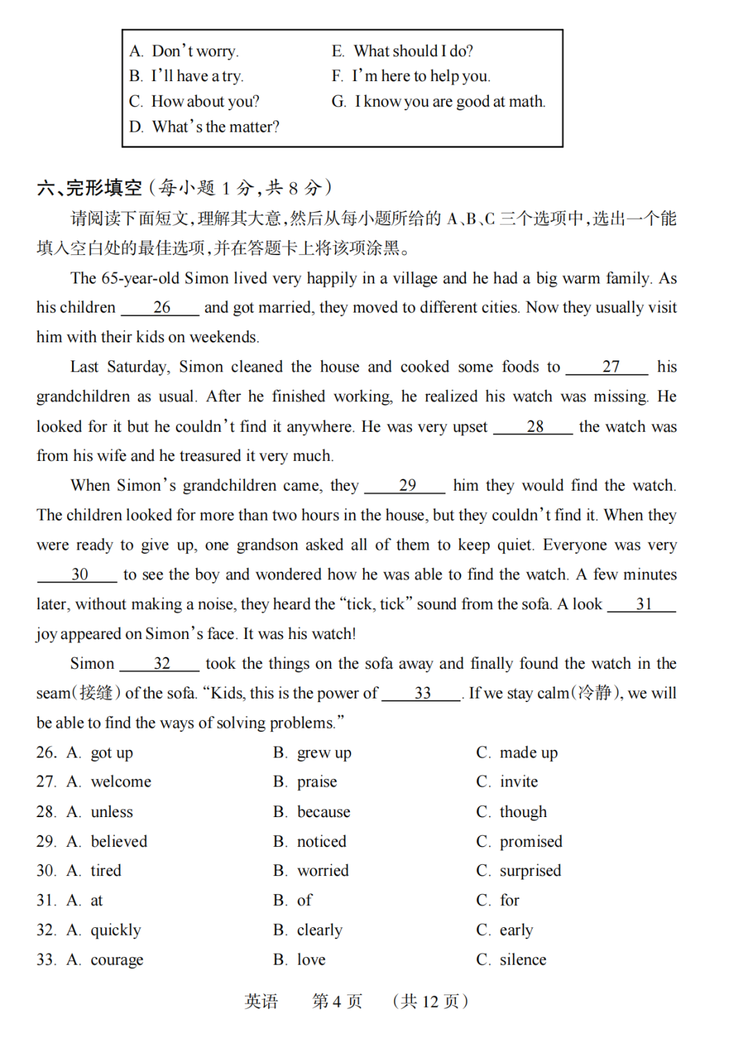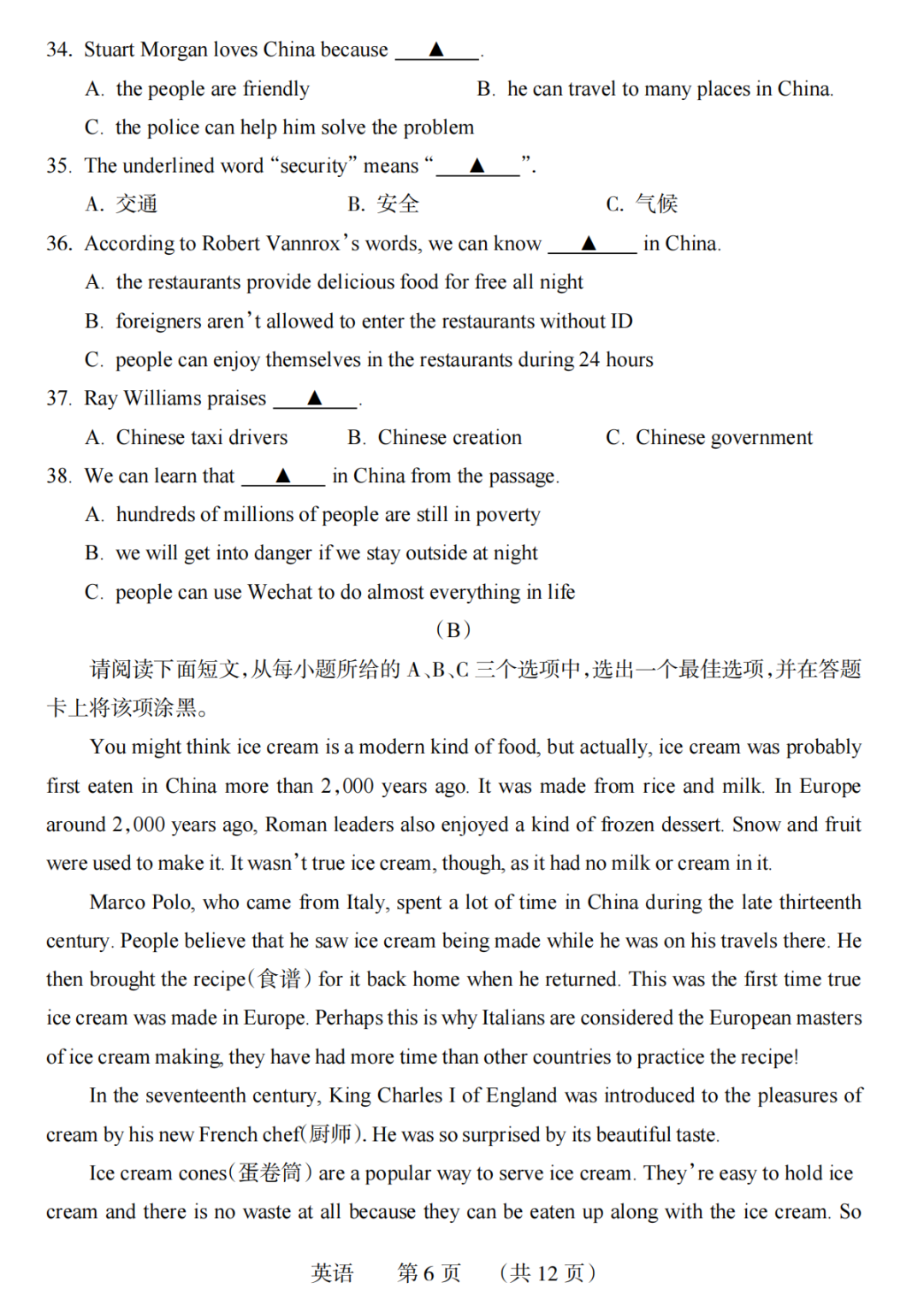 22-23学年中考学科素养自主测评卷六 试题及答案全 含听力