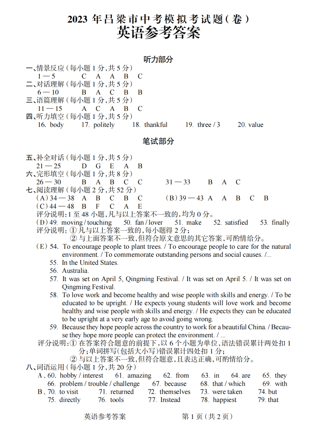 2023年山西中考百校联考(二)全科试题及答案 含英语听力