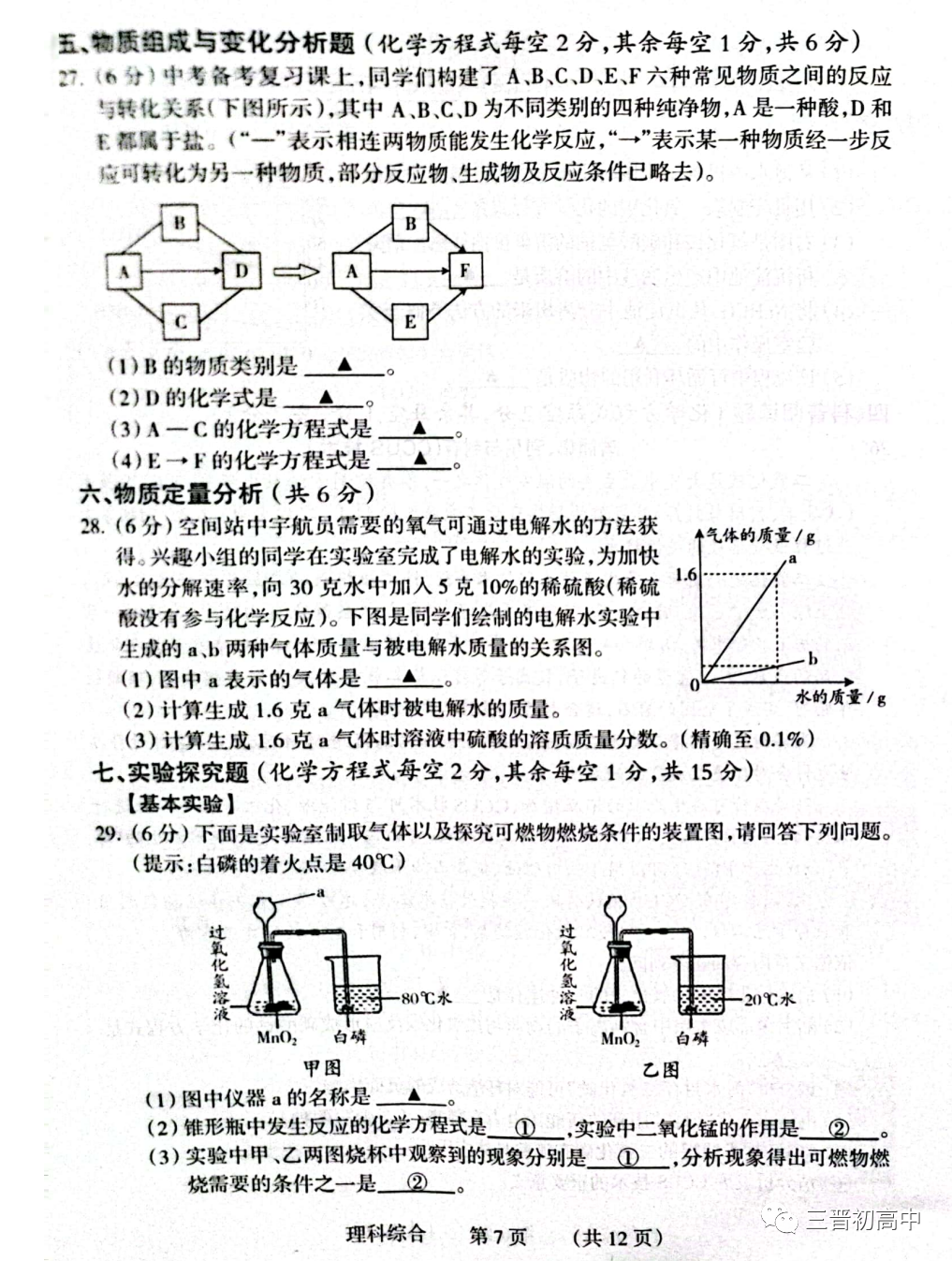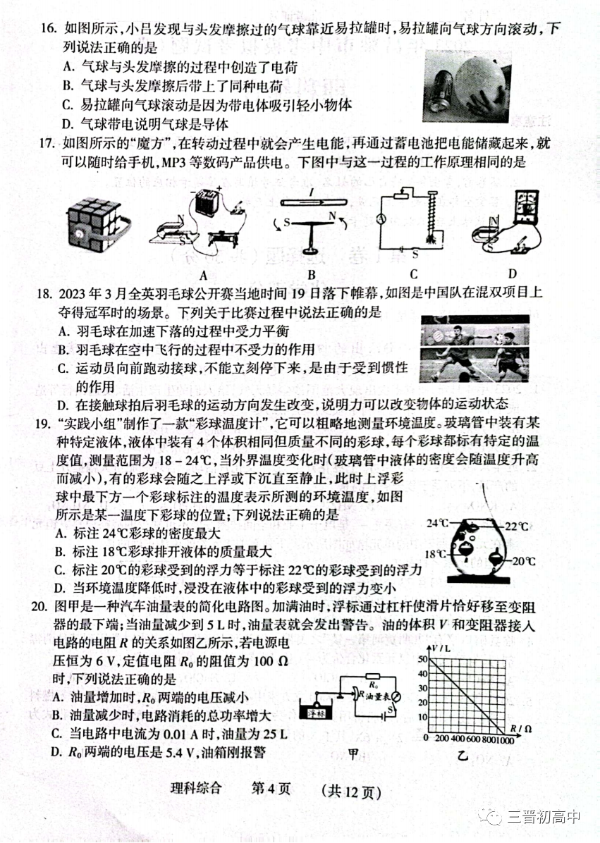 理综试题及答案