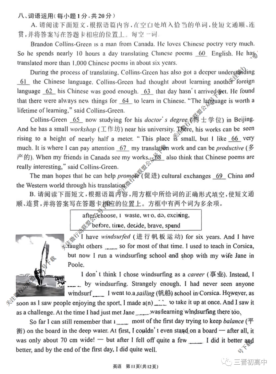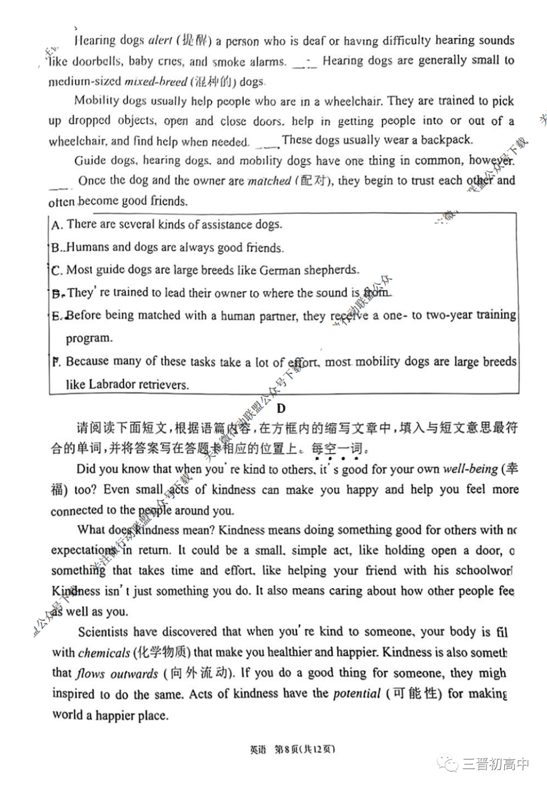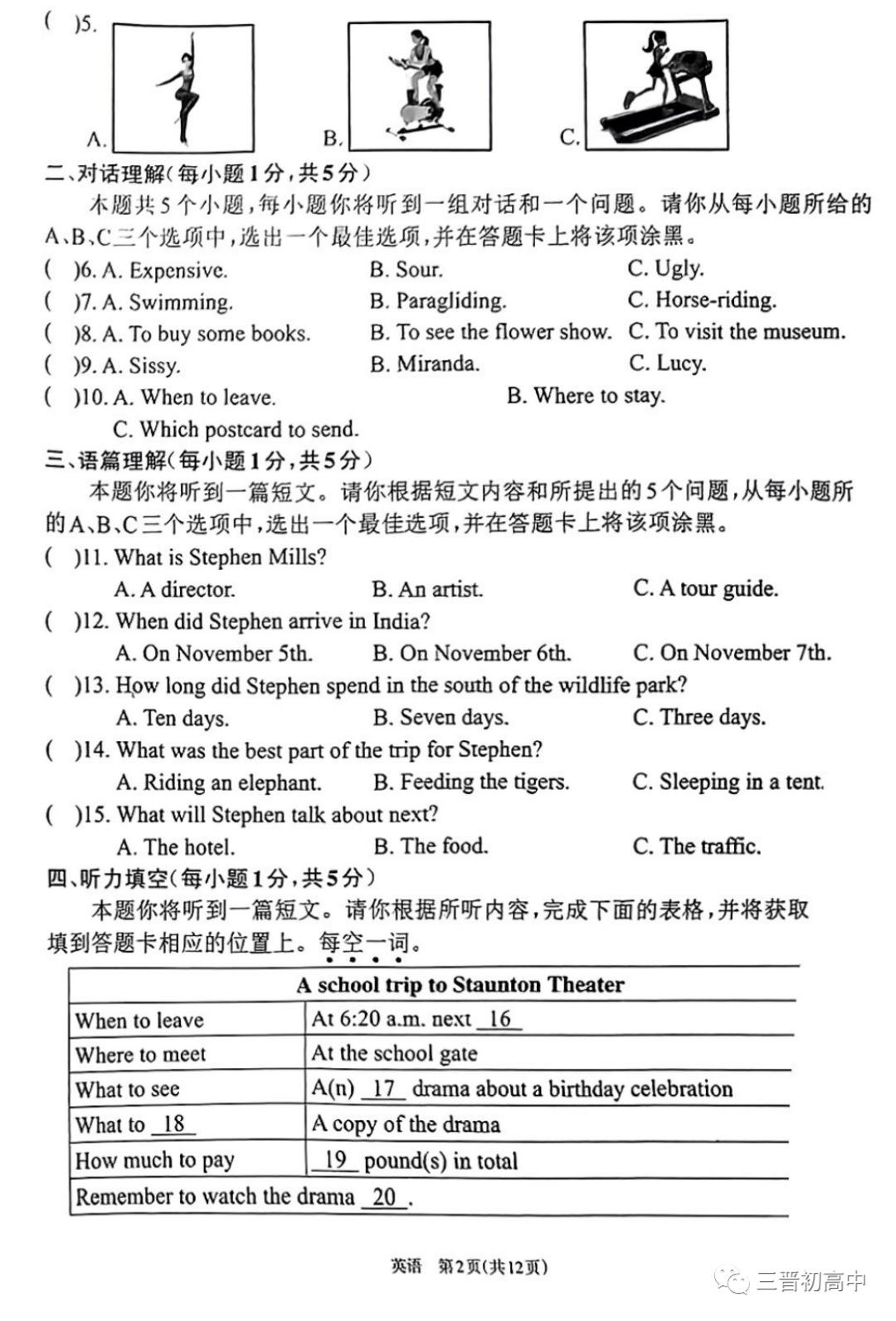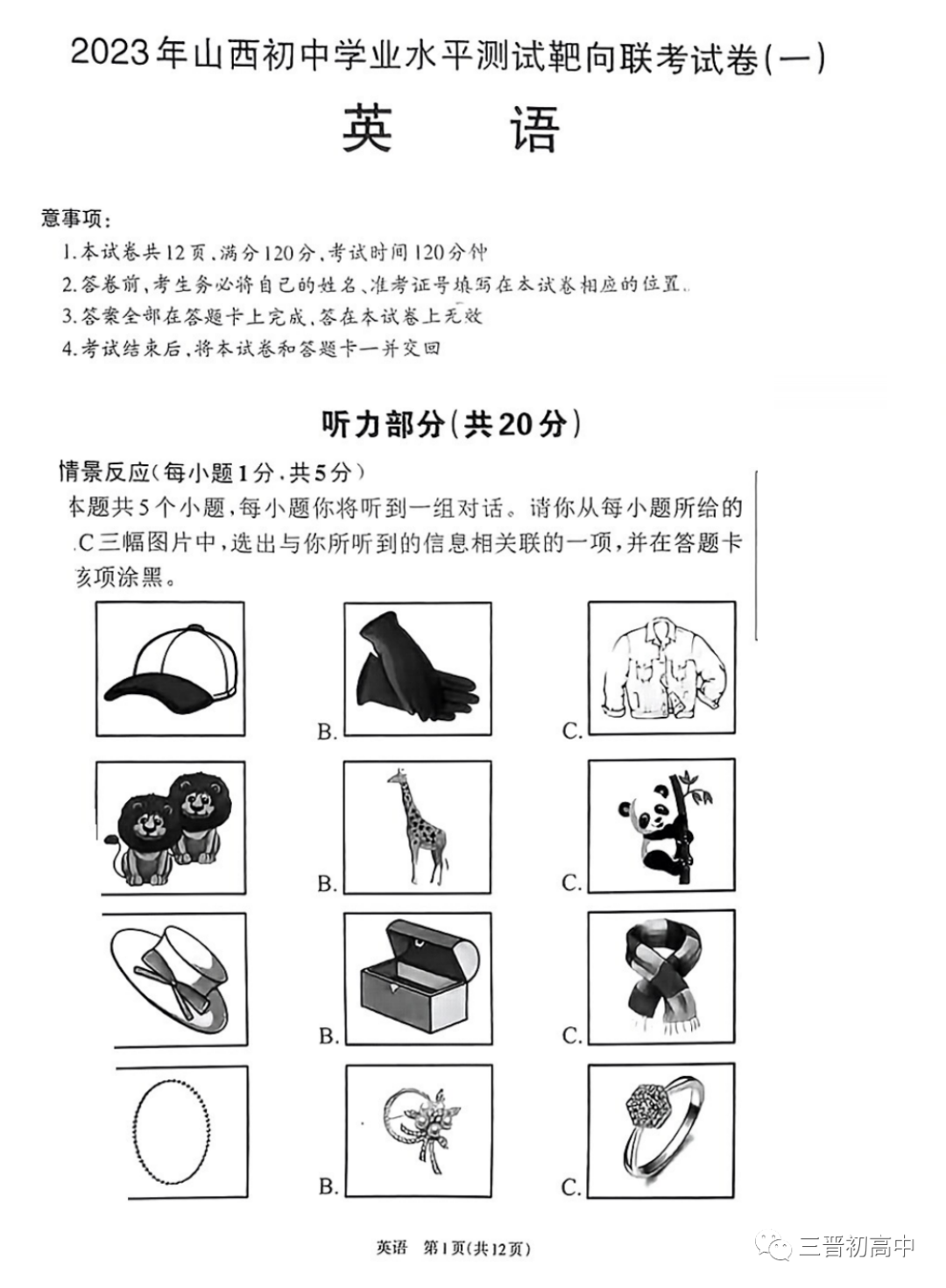 2023年山西省初中学业水平测试信息卷试题答案(含听力)