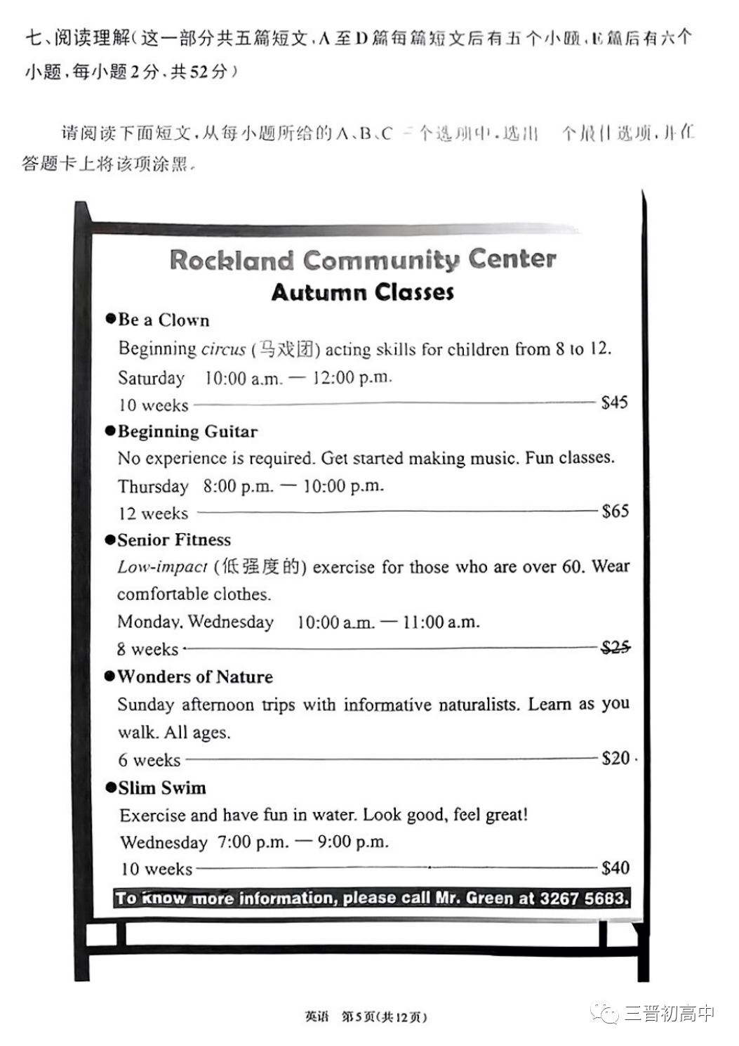 2023太原五中九年级摸底试题及答案全 含英语听力
