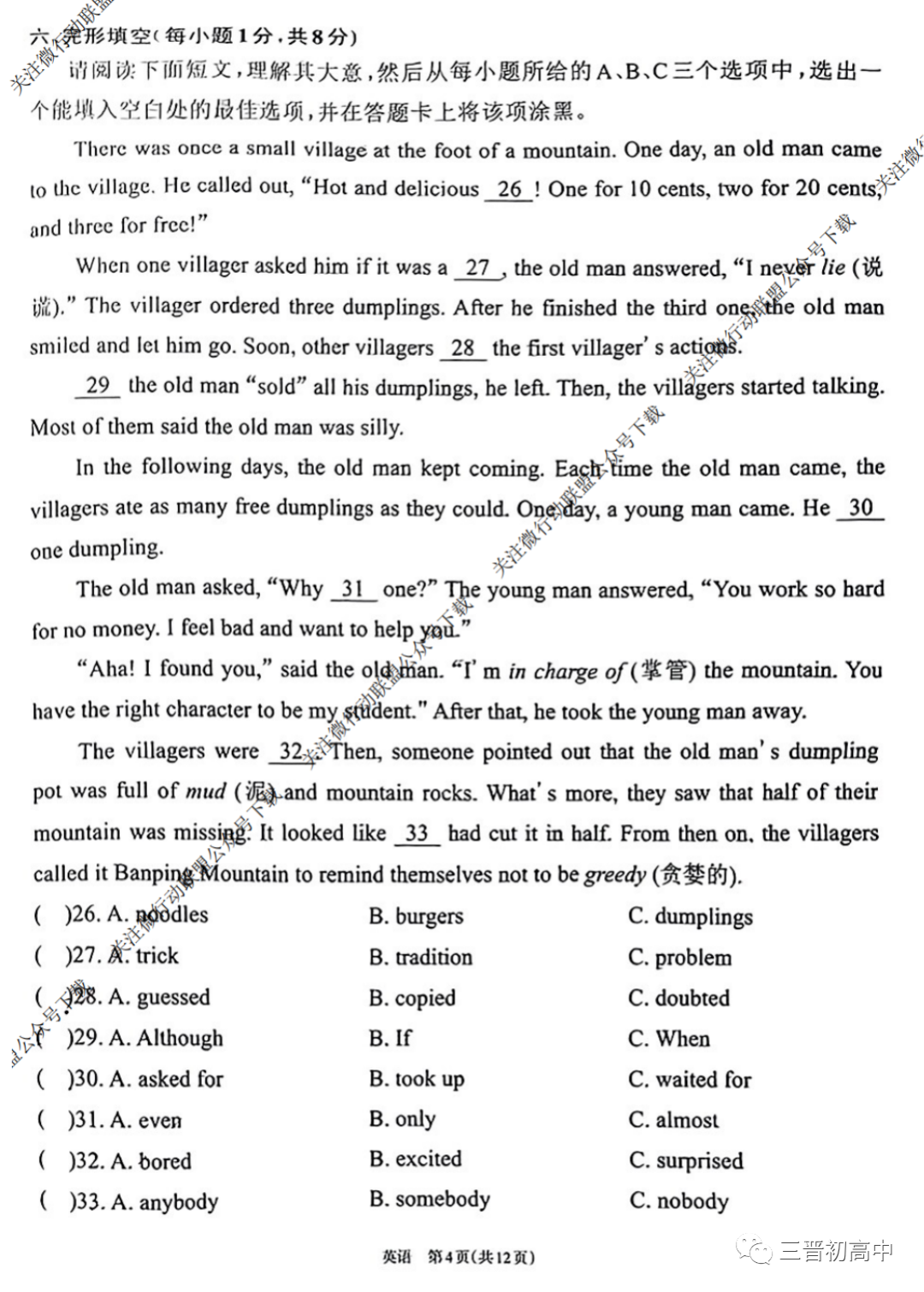 回复【中考听力】获近年山西中考英语听力试题及音频