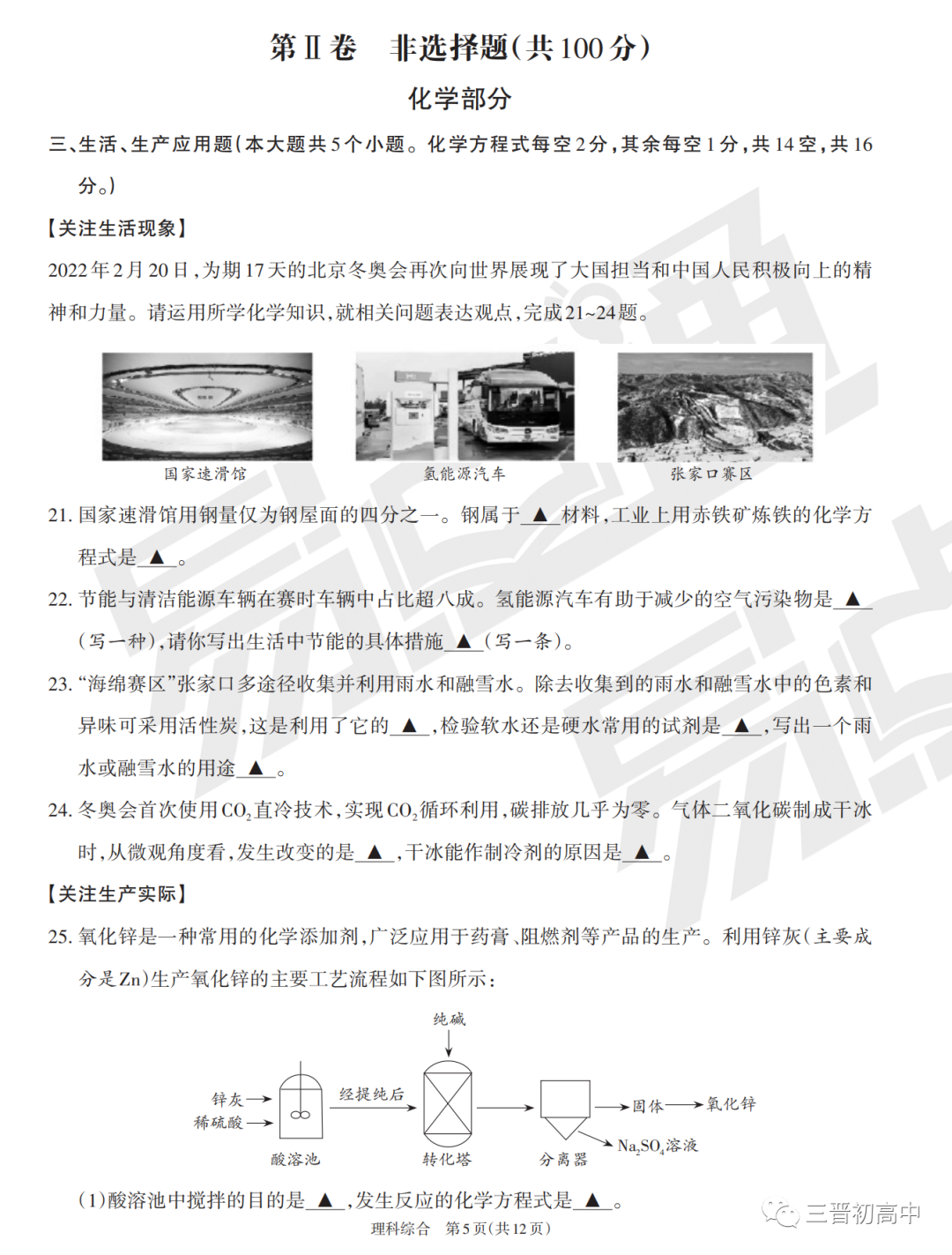 2022山西中考模拟百校联考(二)全科试题及答案已更新