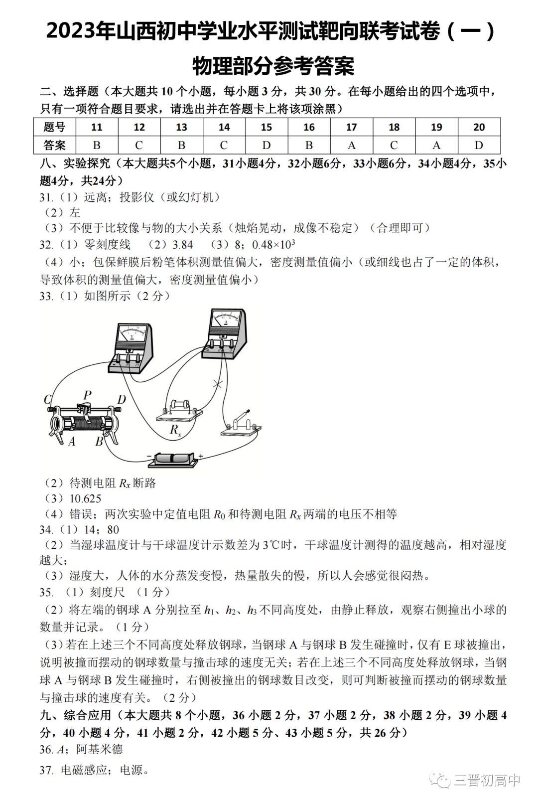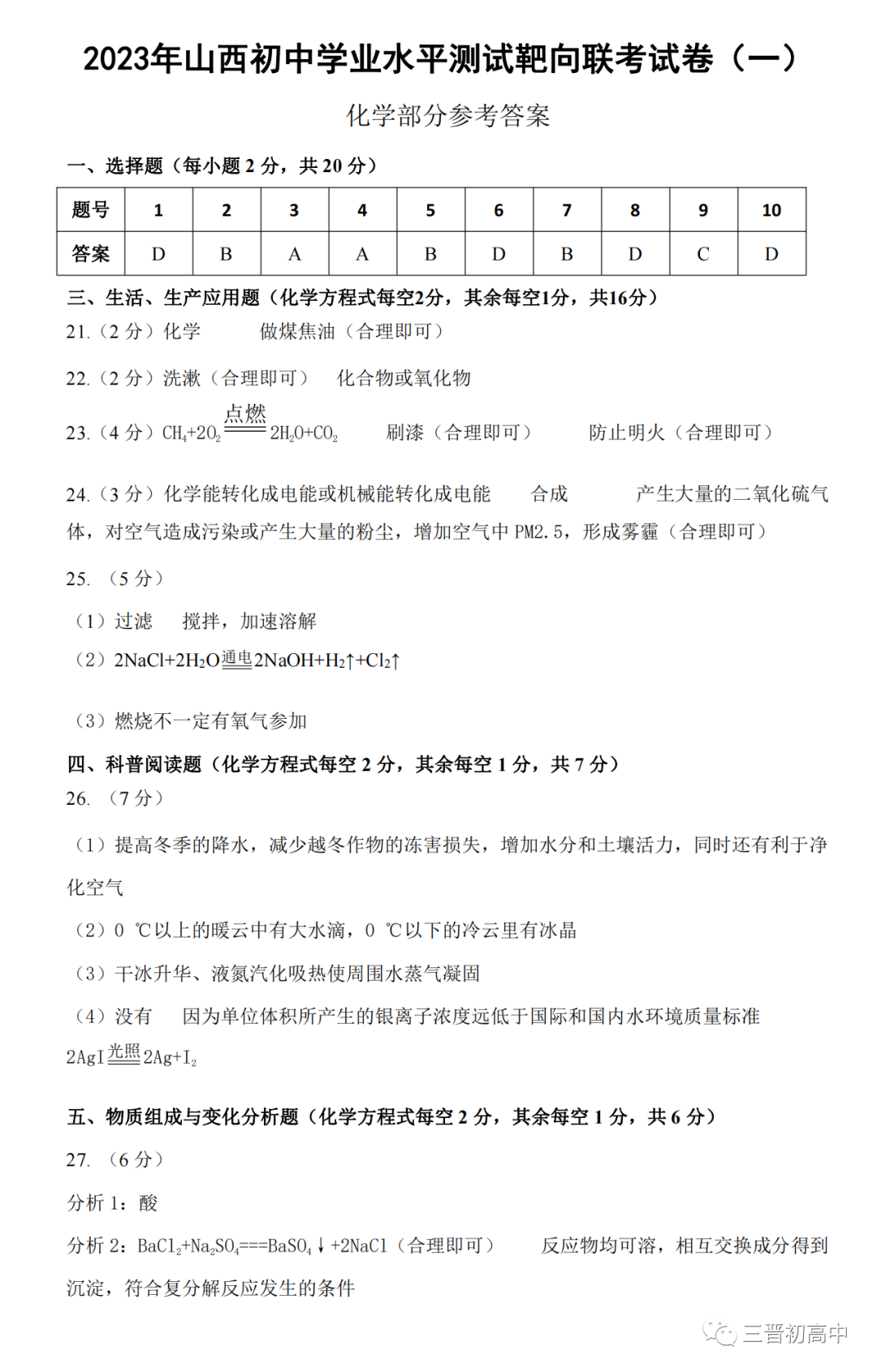 2023年山西省初中学业水平测试信息卷试题答案(含听力)