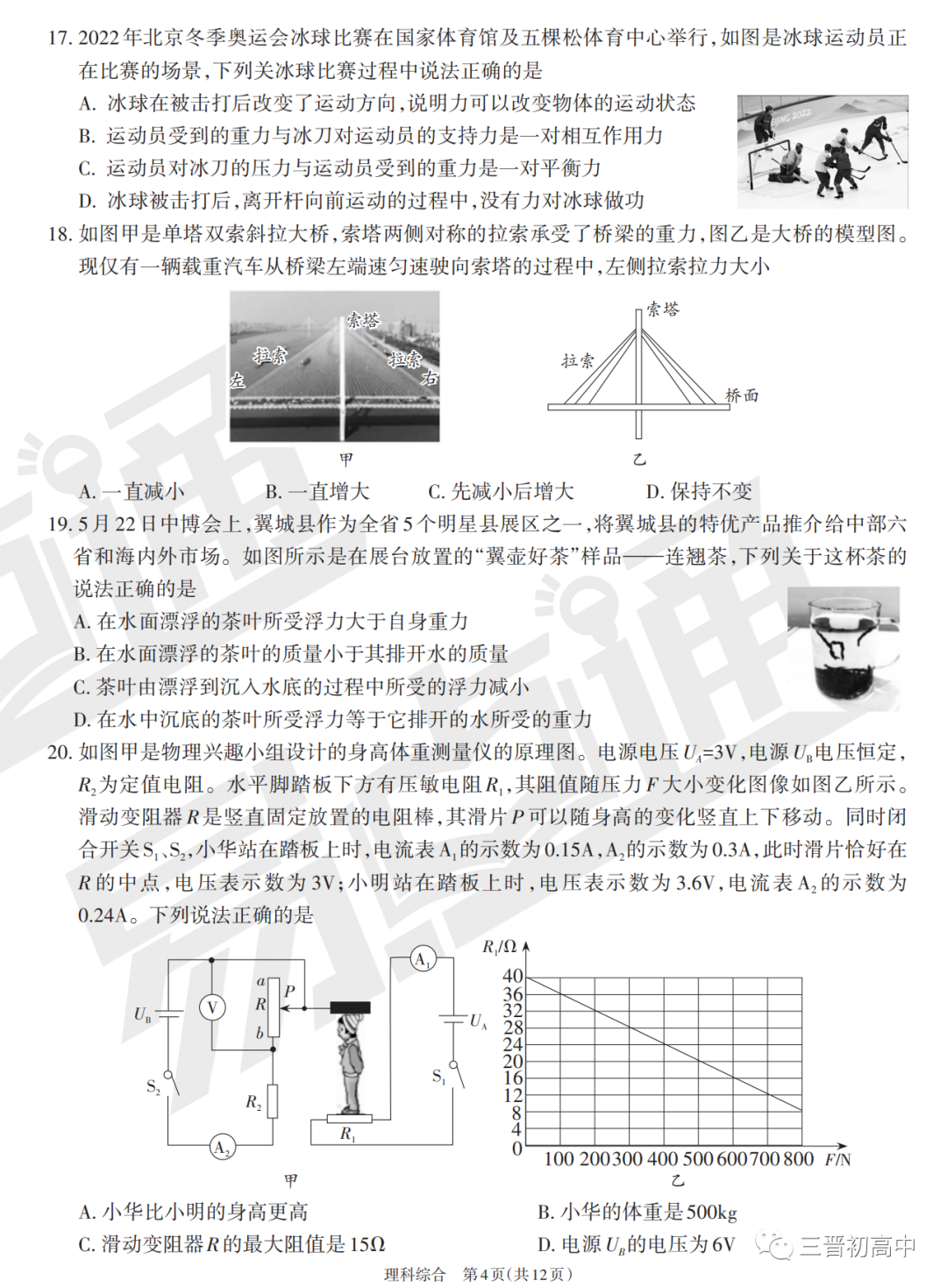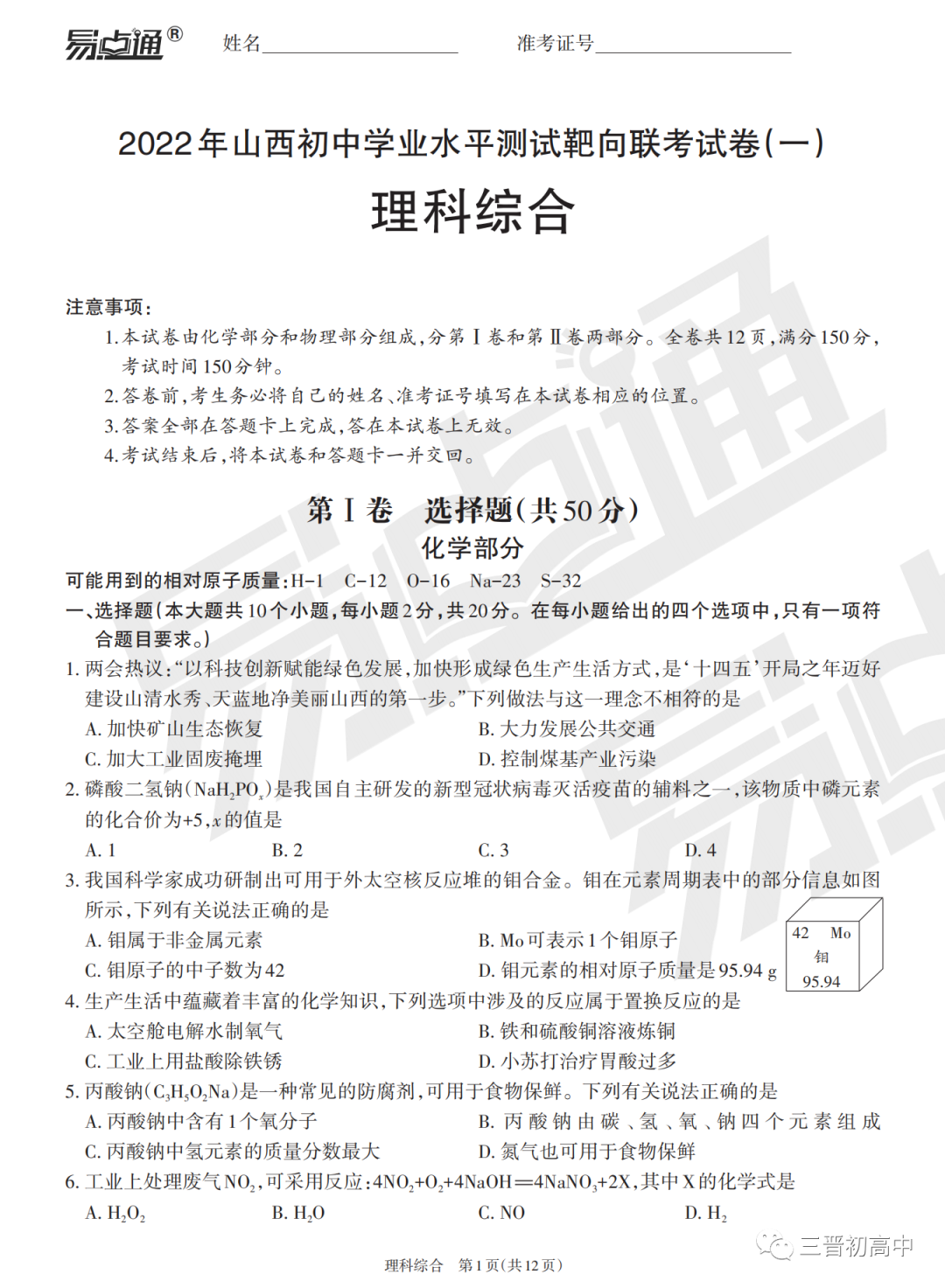 2022山西中考百校联考三全科试题及答案汇总含英语听力
