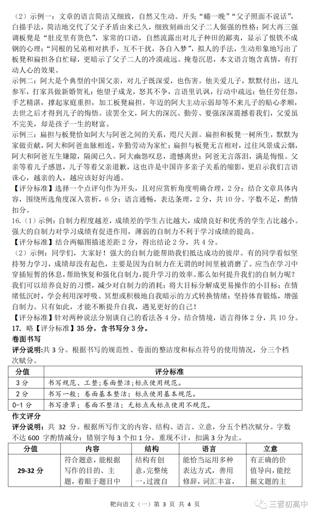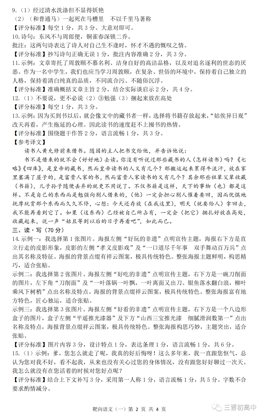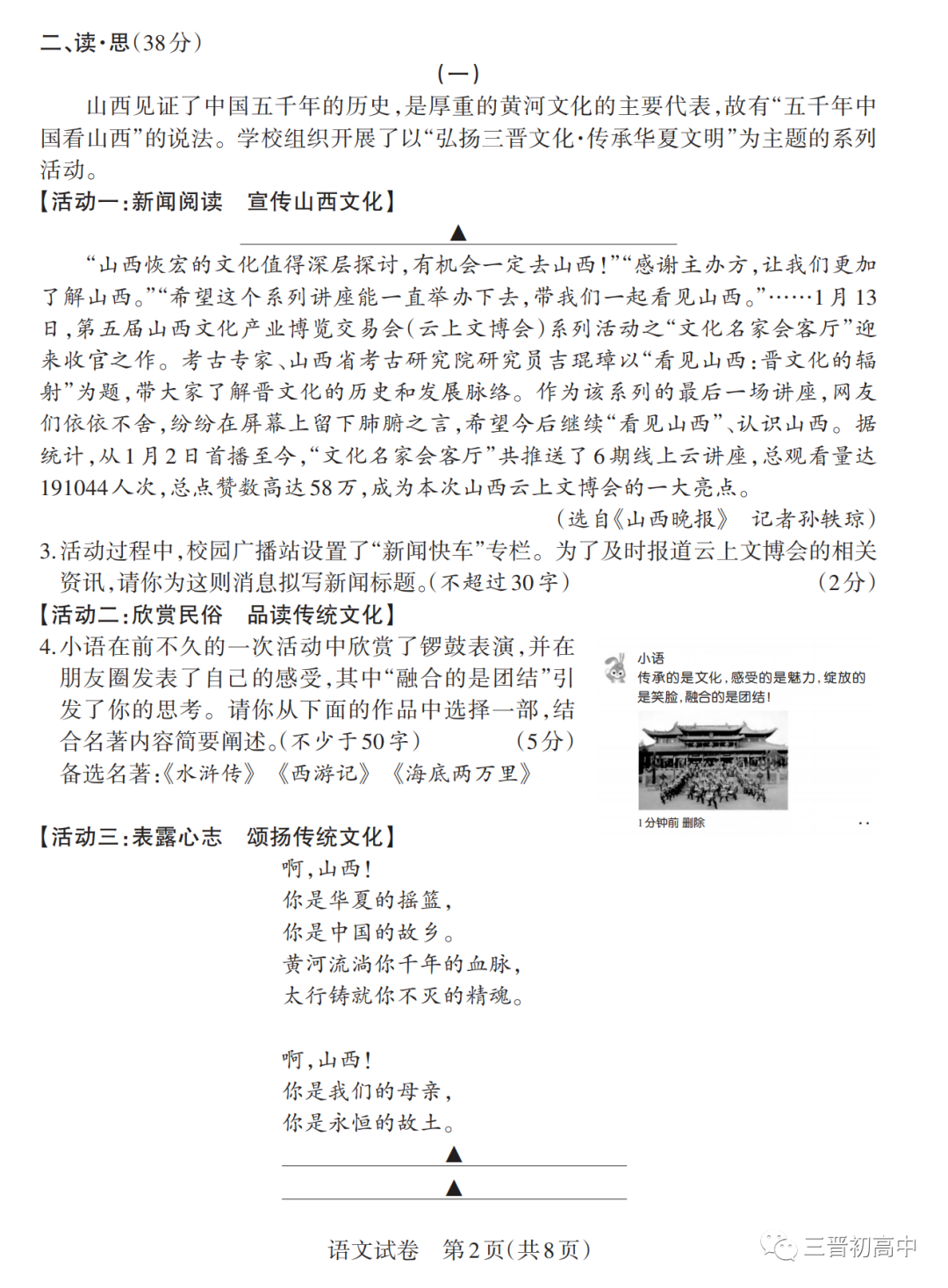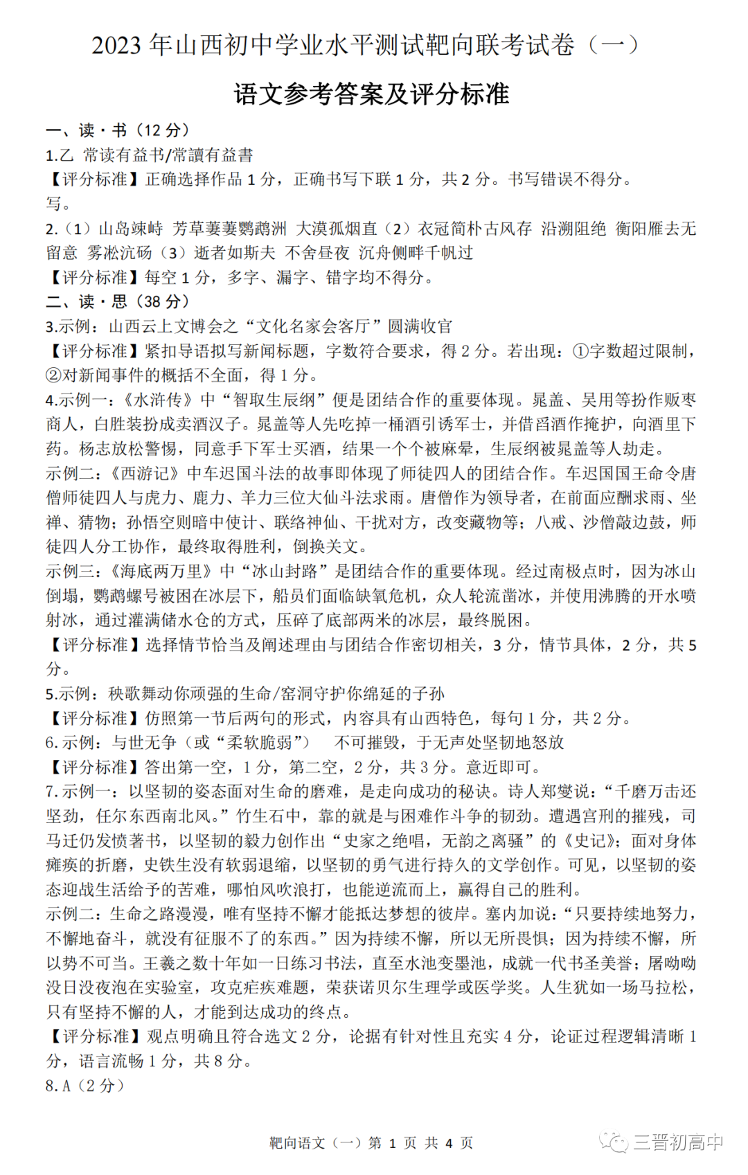 2023年山西省初中学业水平测试信息卷试题答案(含听力)