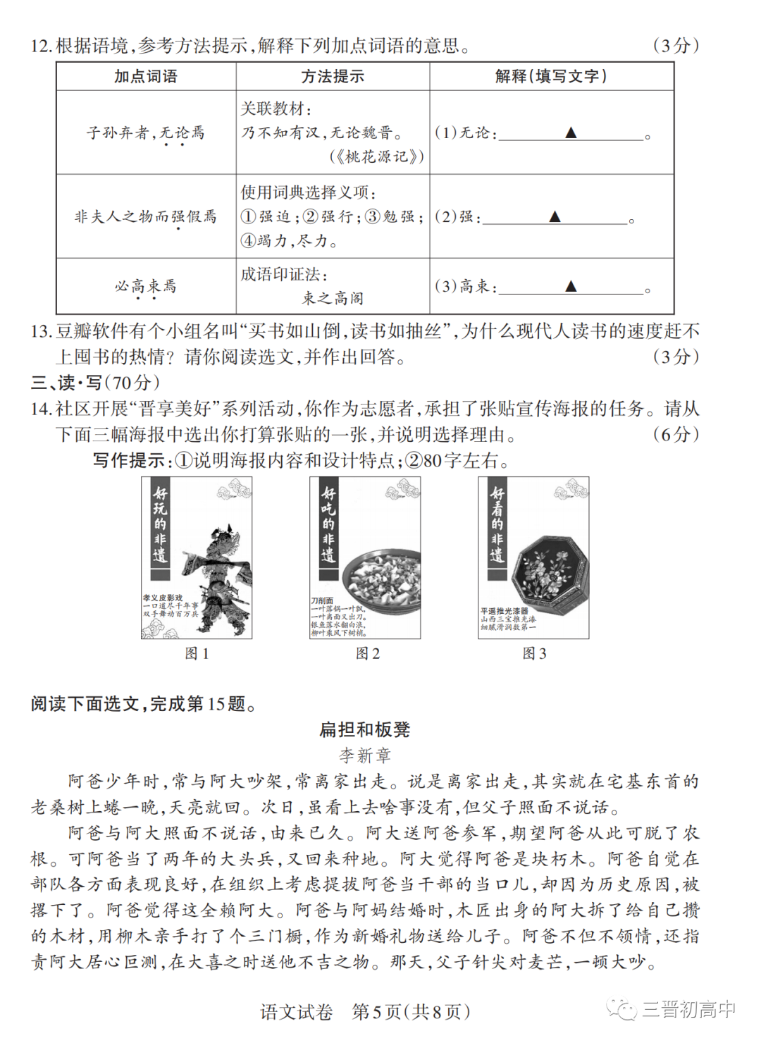 2023太原五中九年级摸底试题及答案全 含英语听力