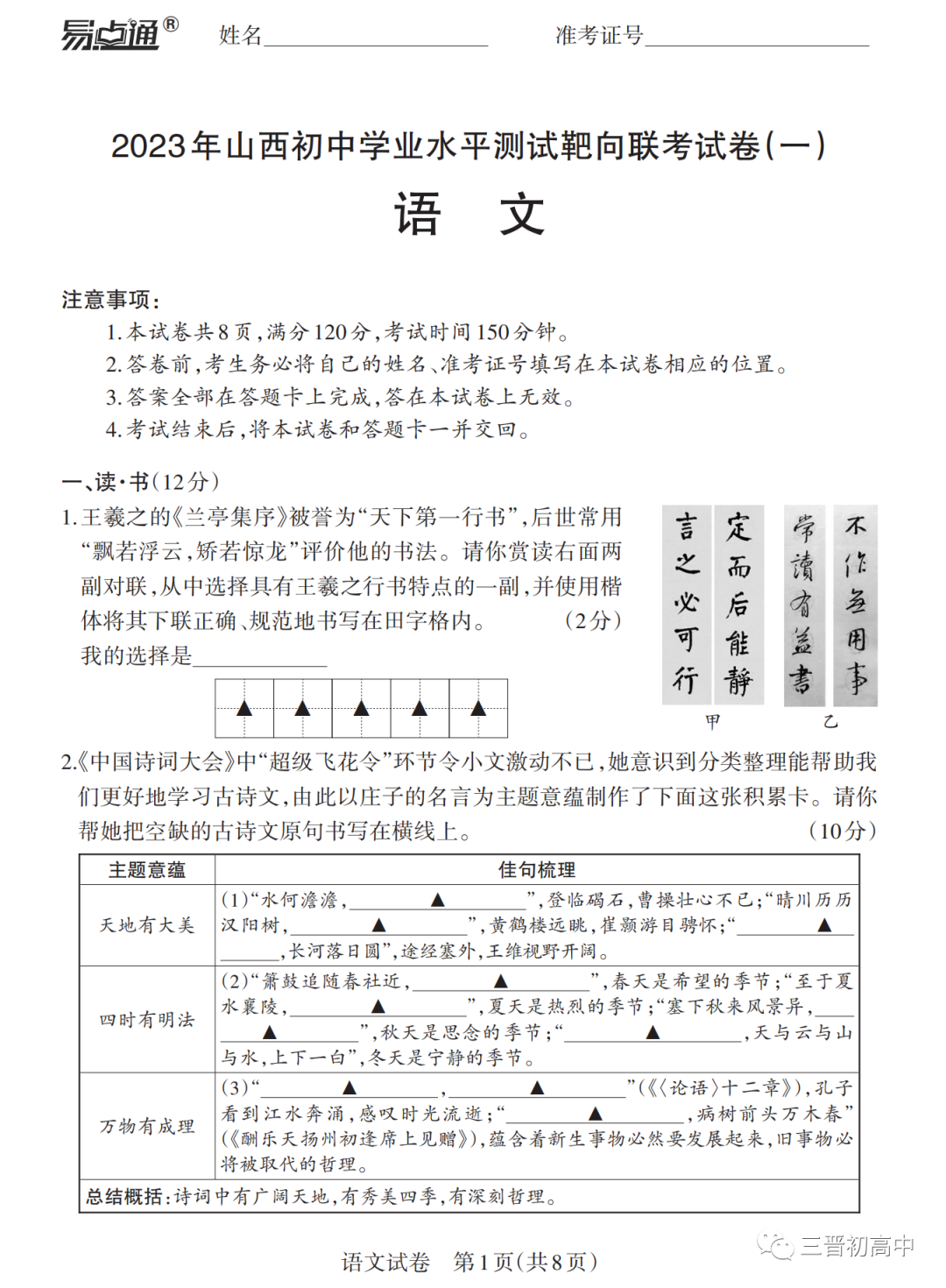 2023年太原市中考一二模考试时间发布 附往年真题下载