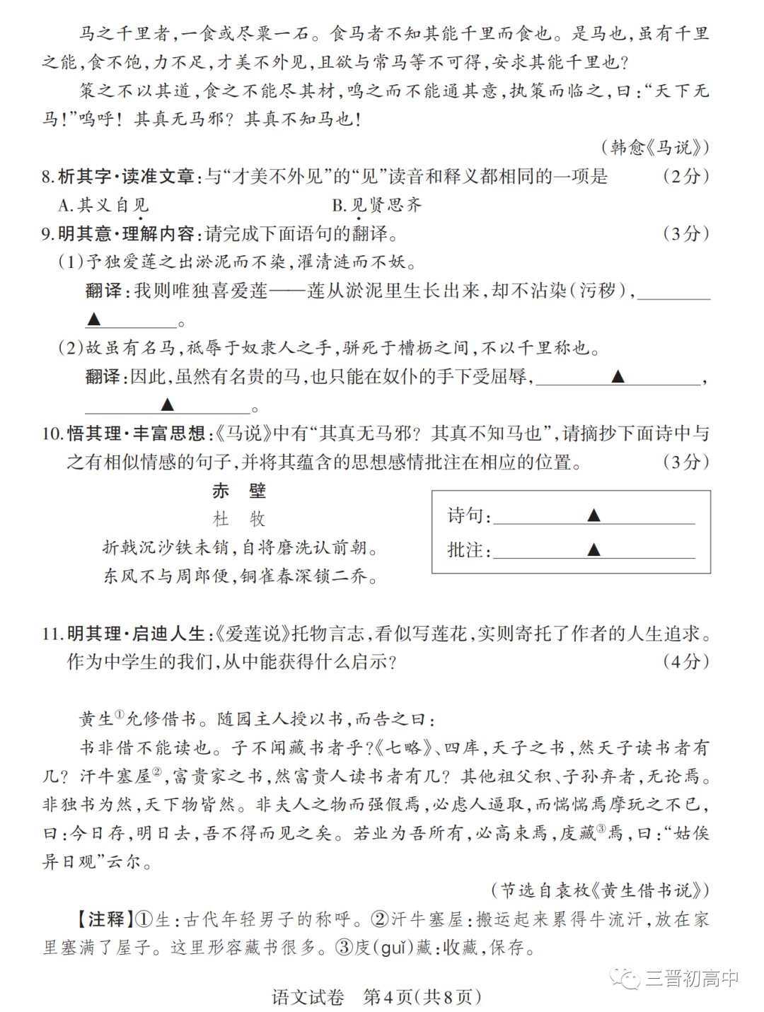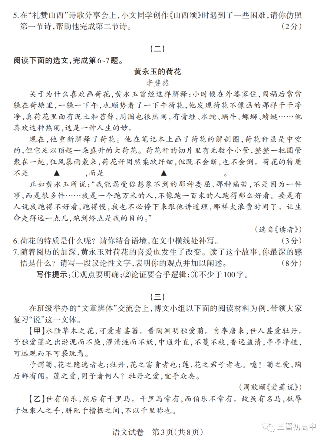 2022山西中考百校联考三全科试题及答案汇总含英语听力