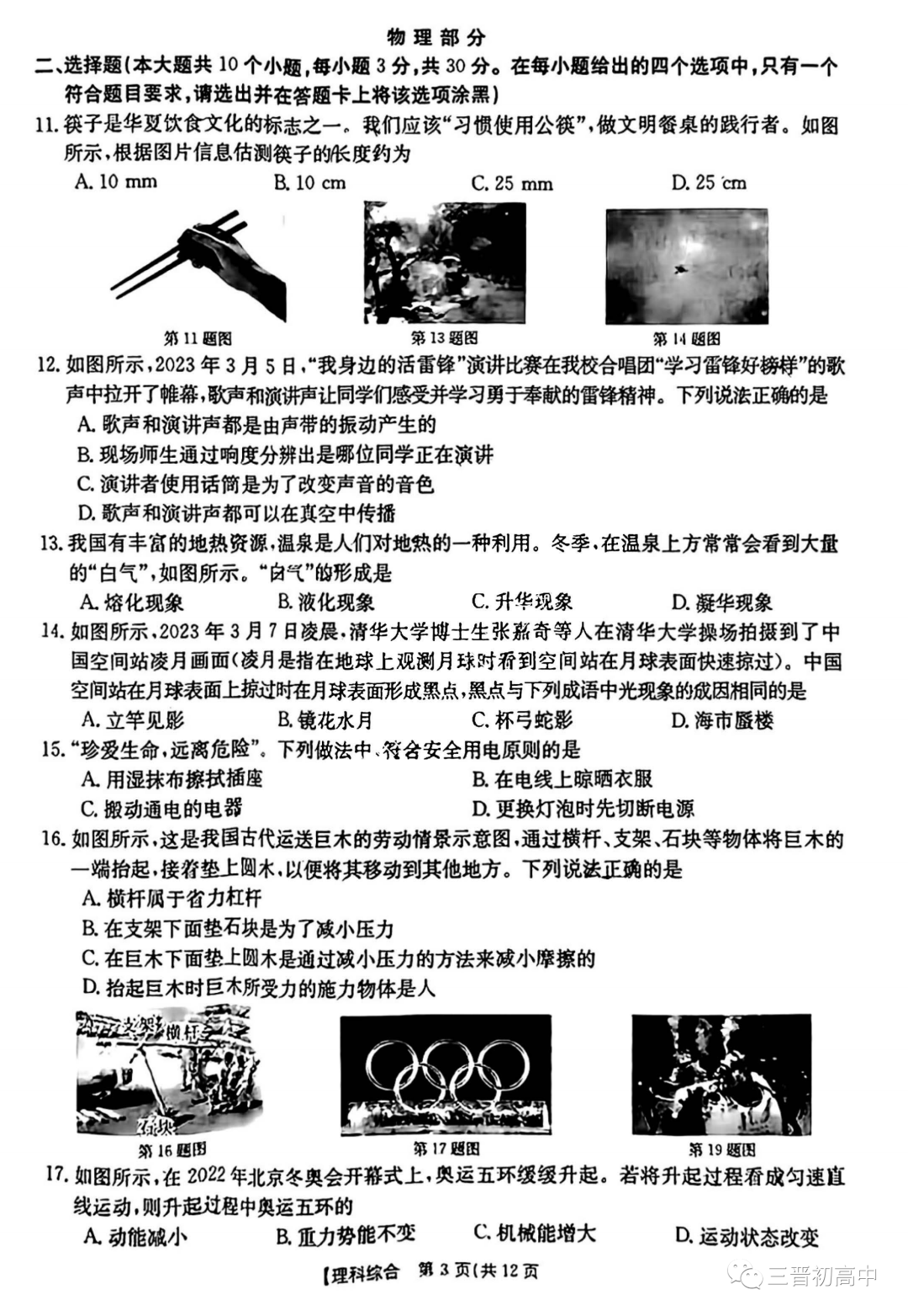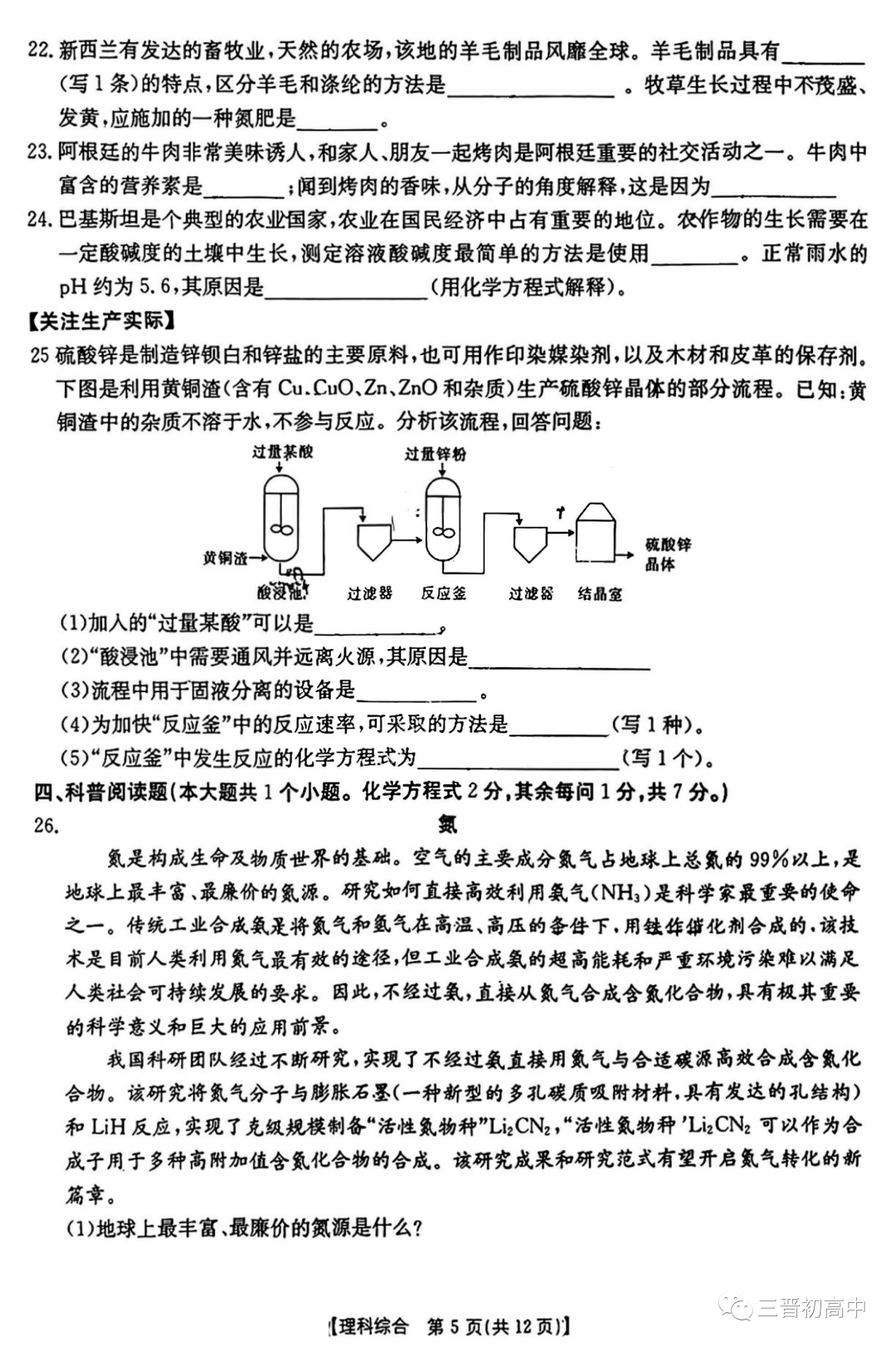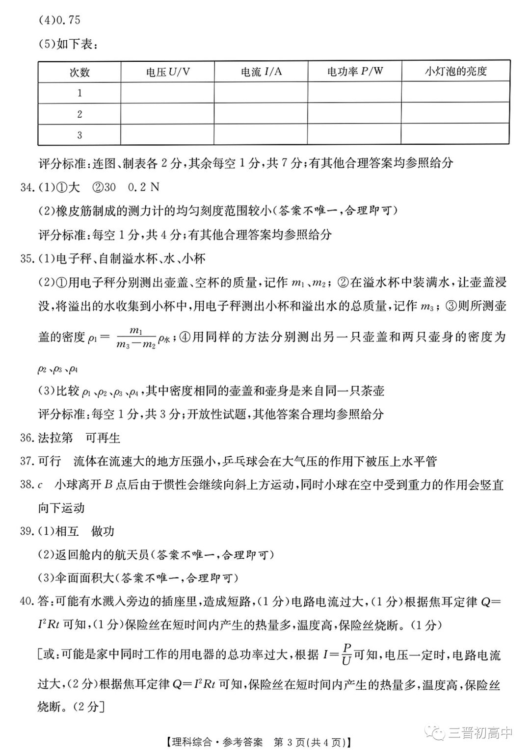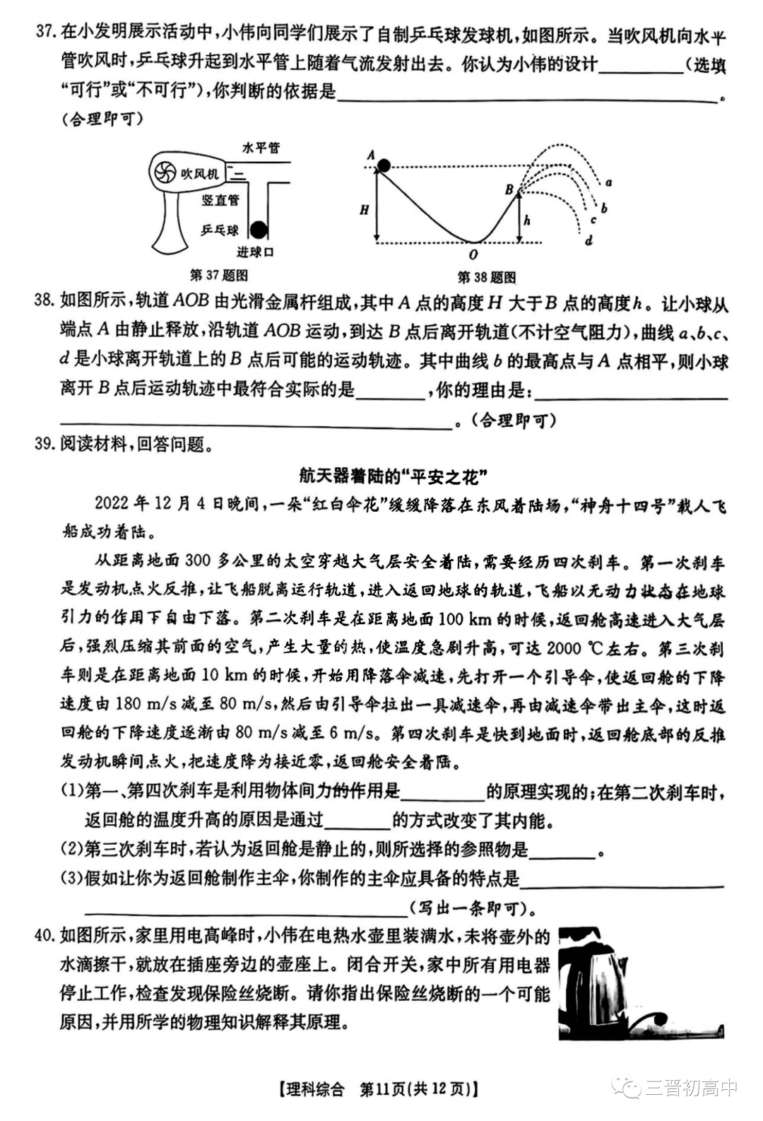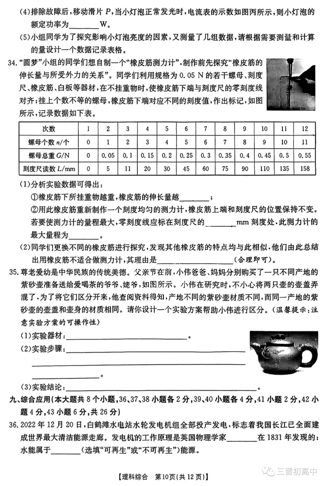 2023年阳泉市九年教学质量监测理综试题及答案​