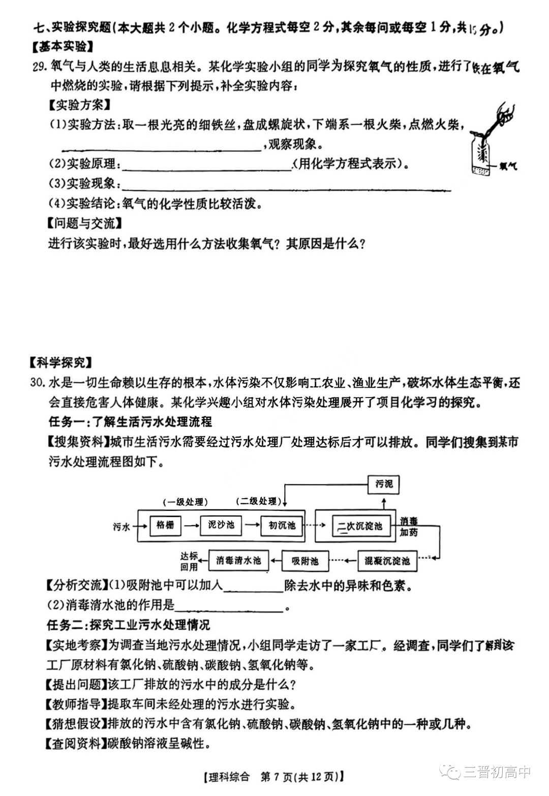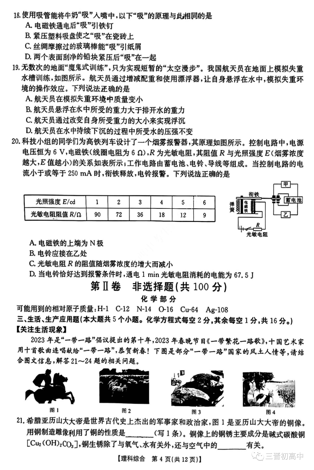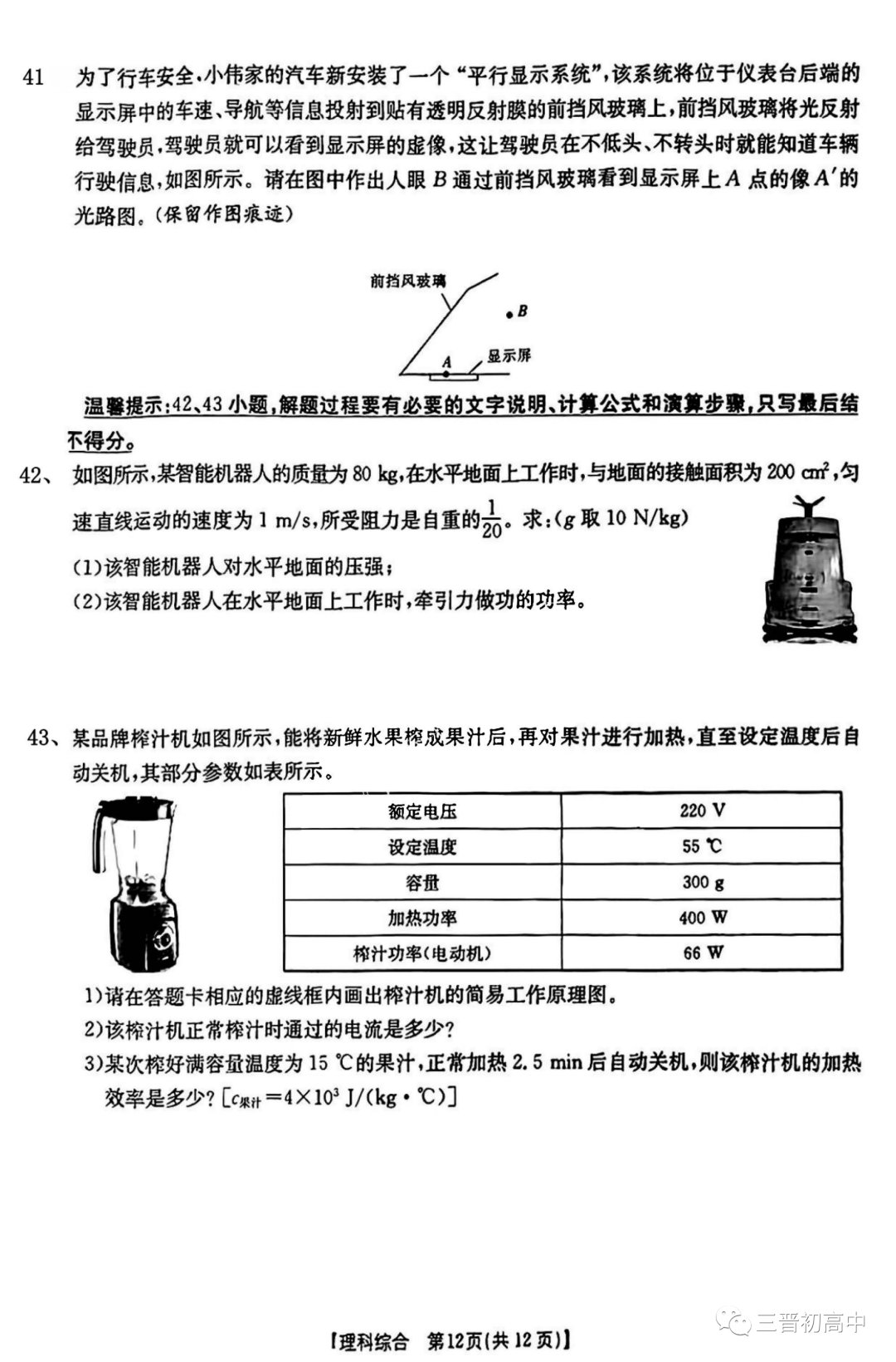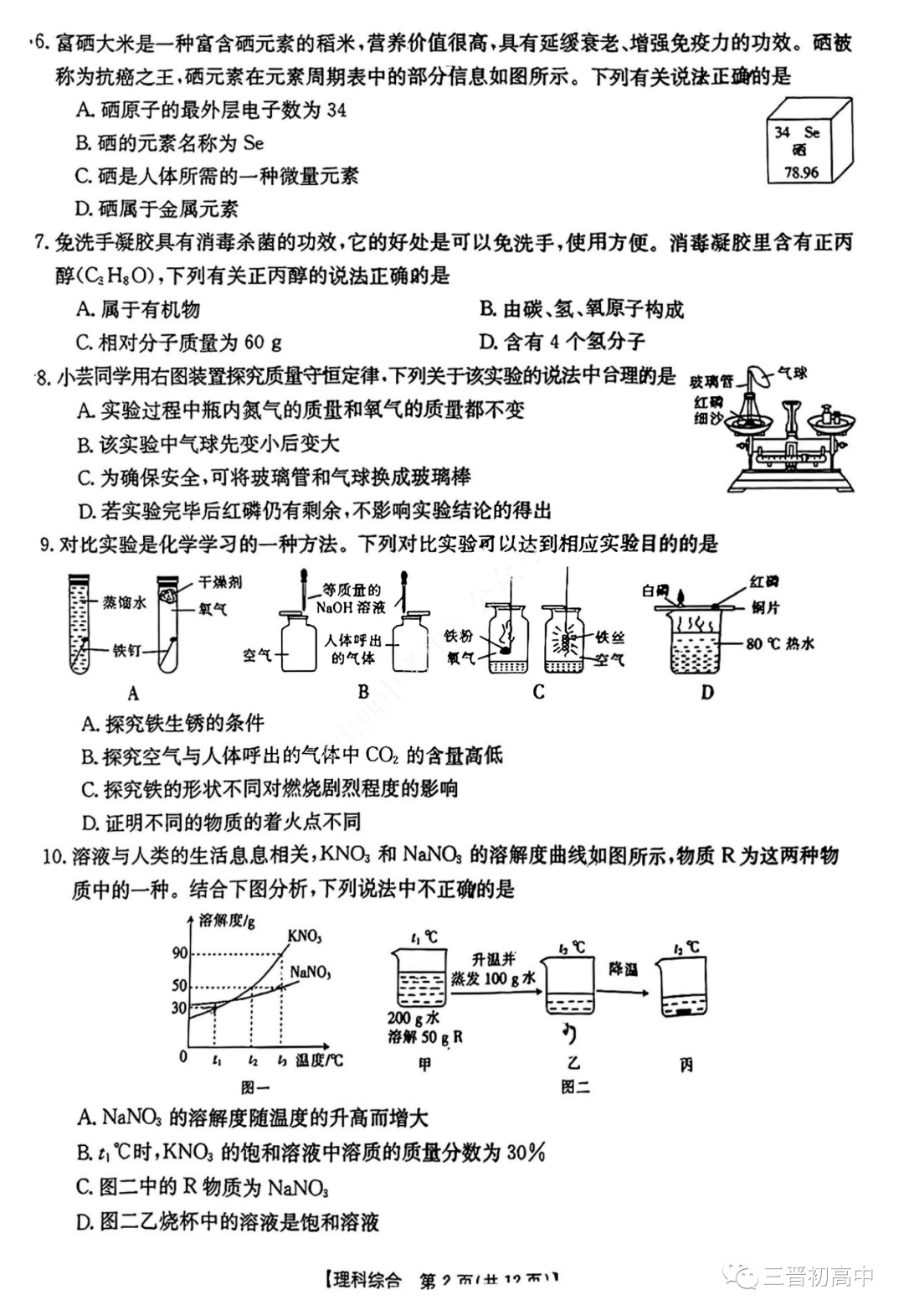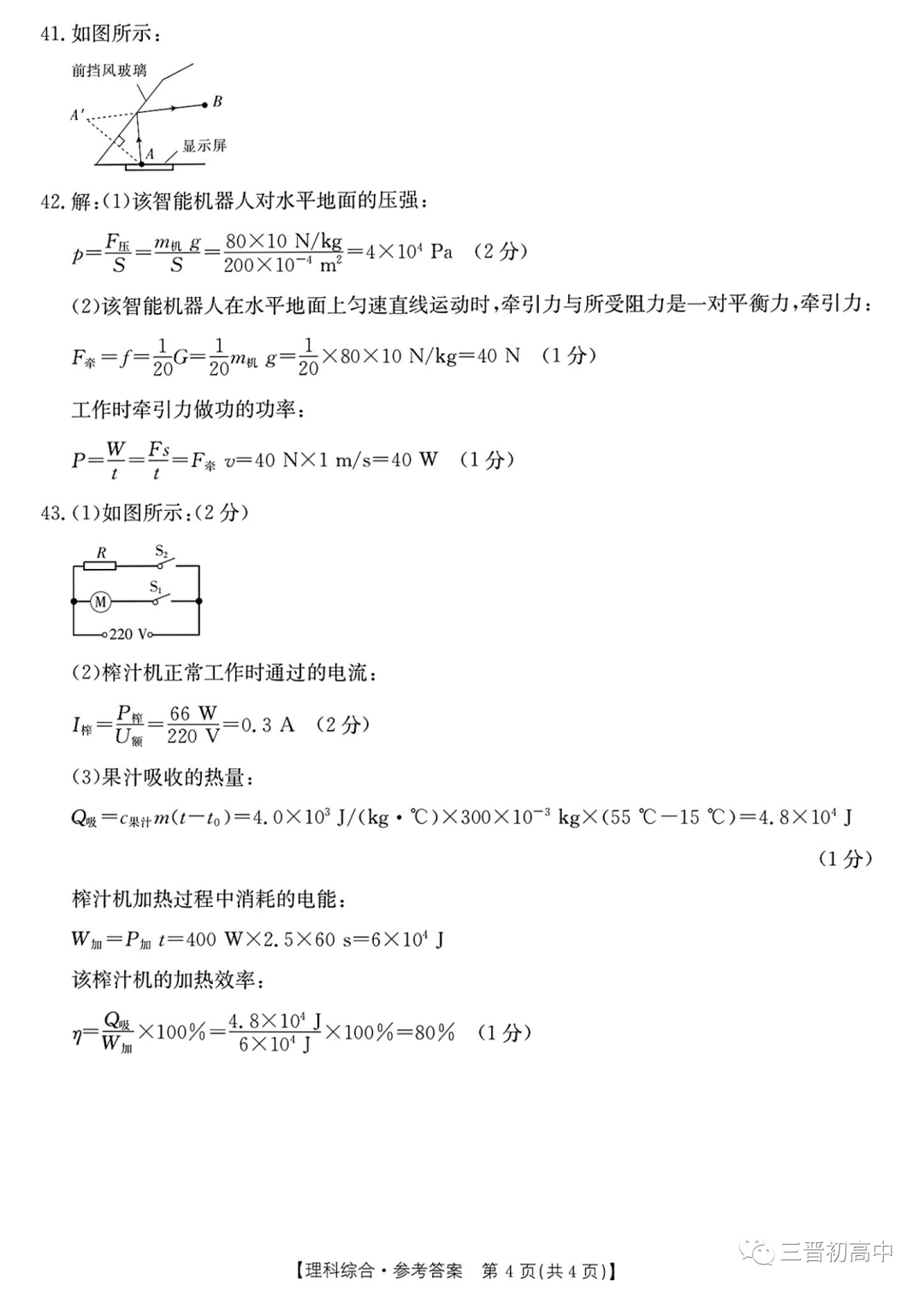 2023年阳泉市九年教学质量监测理综试题及答案​